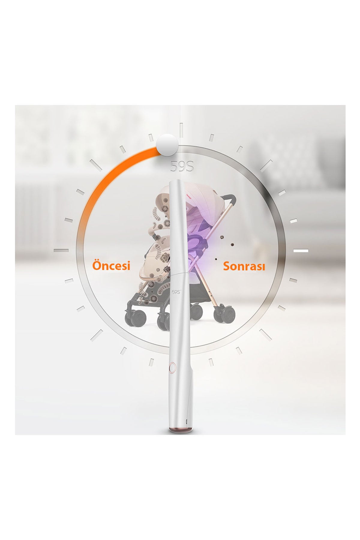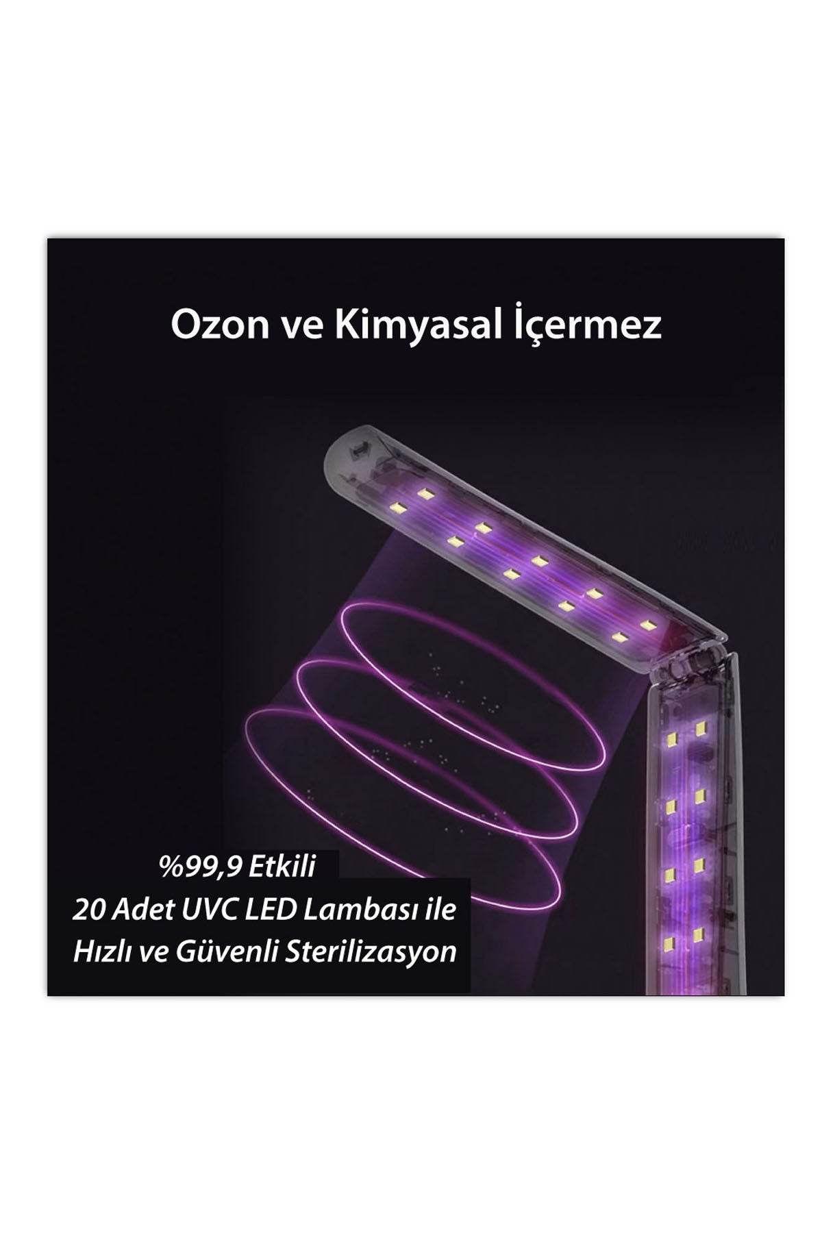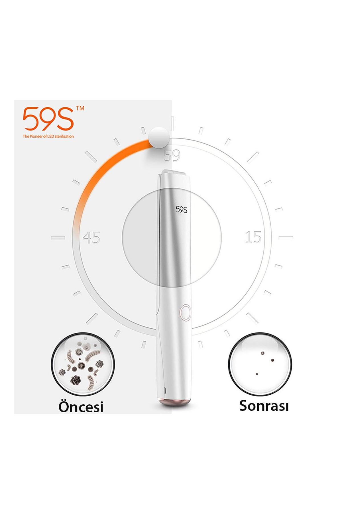 Ultraviyole-C LED Teknolojisi ile geliştirilmiş Ultraviyole-C LED Sterilizasyon Çubuğu, su ya da mikrodalga olmadan bakteri ve virüslerin %99,9’unu öldürür. Ozon ve Kimyasal İçermez: 20 adet UVC LED lambası ile donatılmış X5 Sterilizasyon Çubuğu; su veya kimyasal maddeye gerek kalmadan bakteri, mikrop ve virüslerin %99,9’unu öldürür. 59S X5 Ultraviyole (UVC) Sterilizasyon Çubuğu, Evde, Ofiste ve Yolculukta: X5 Sterilizasyon Çubuğu kolay kullanımı ve tasarımı ile hayatınızı kolaylaştırır. Masa, koltuk, yastık, yorgan, halı, klavye, klozet, lavabo, laptop gibi hemen hemen her yüzeye uygulayarak bakteri, mikrop ve virüslerden arındırılmış sterilize ortamın tadını çıkarın.