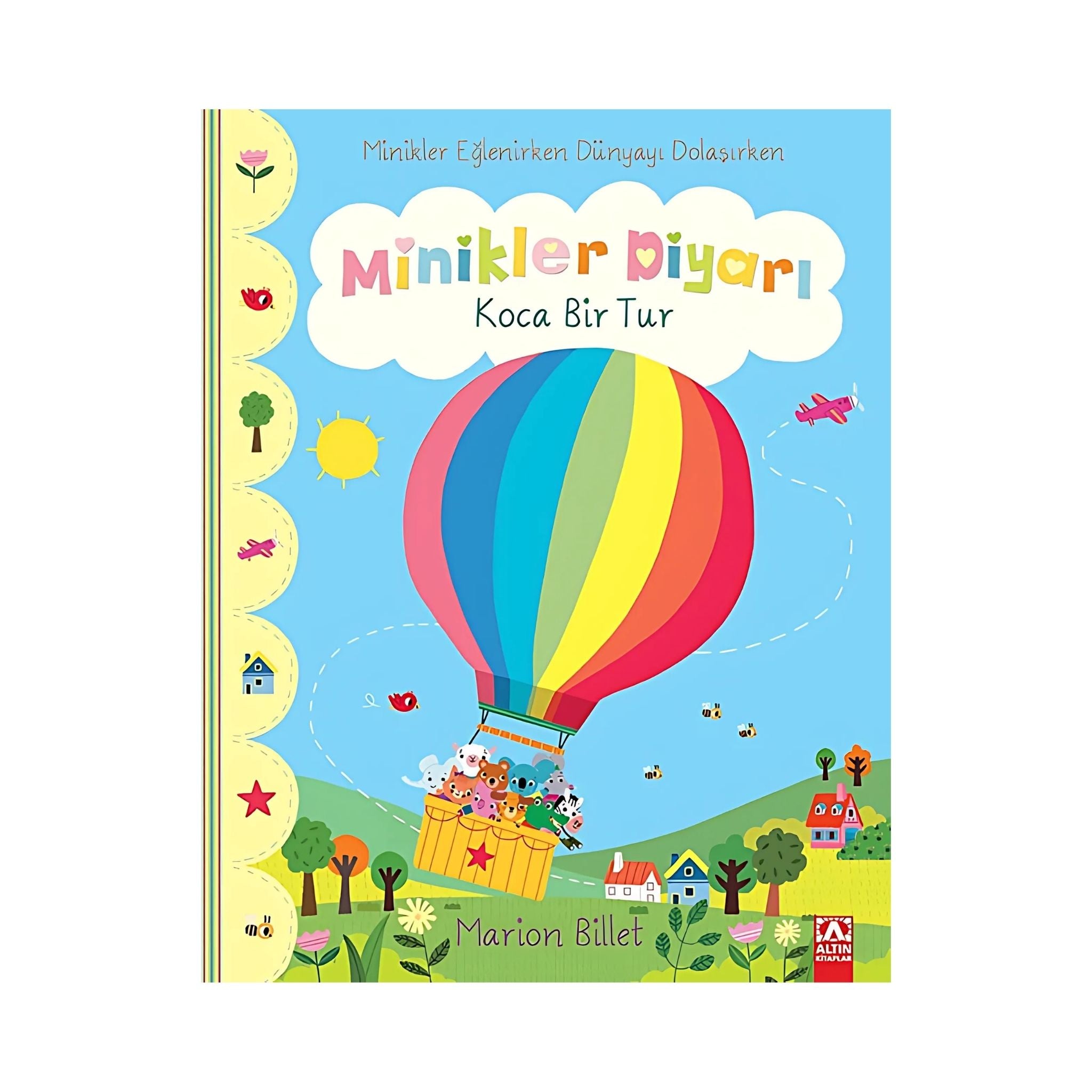Koca Bir Tur Minikler Diyarı, okul öncesi çocuklara dünyayı eğlenceli bir yolculukla tanıtan, renkli ve öğretici bir keşif kitabıdır. Minikler bu sayfalarda yepyeni yerler keşfedecek, ilginç hayvanları tanıyacak ve farklı kültürlerin lezzetlerini öğrenecek. Her sayfa, çocuklara yeni bilgiler sunarken aynı zamanda kelime dağarcığını zenginleştirmeyi ve gözlem becerilerini geliştirmeyi amaçlar. Marion Billet’in dikkat çekici ve sevimli çizimleriyle bezenmiş bu kitap, çocukların ilgisini çeken ayrıntılarla doludur. İlk kelimeler, çevre farkındalığı ve küresel kültürler hakkında temel bilgiler sunarak öğrenmeyi eğlenceye dönüştürür. Koca Bir Tur Minikler Diyarı, çocukları evlerinden alıp dünya turuna çıkaran eğlenceli ve öğretici bir yol arkadaşıdır. Miniklerin kelime hazinesini artıran, merak duygusunu besleyen bu kitapla dünya artık daha renkli! Şimdi sen de Minikler Diyarı’na katıl ve hayal gücünün sınırlarını aş!