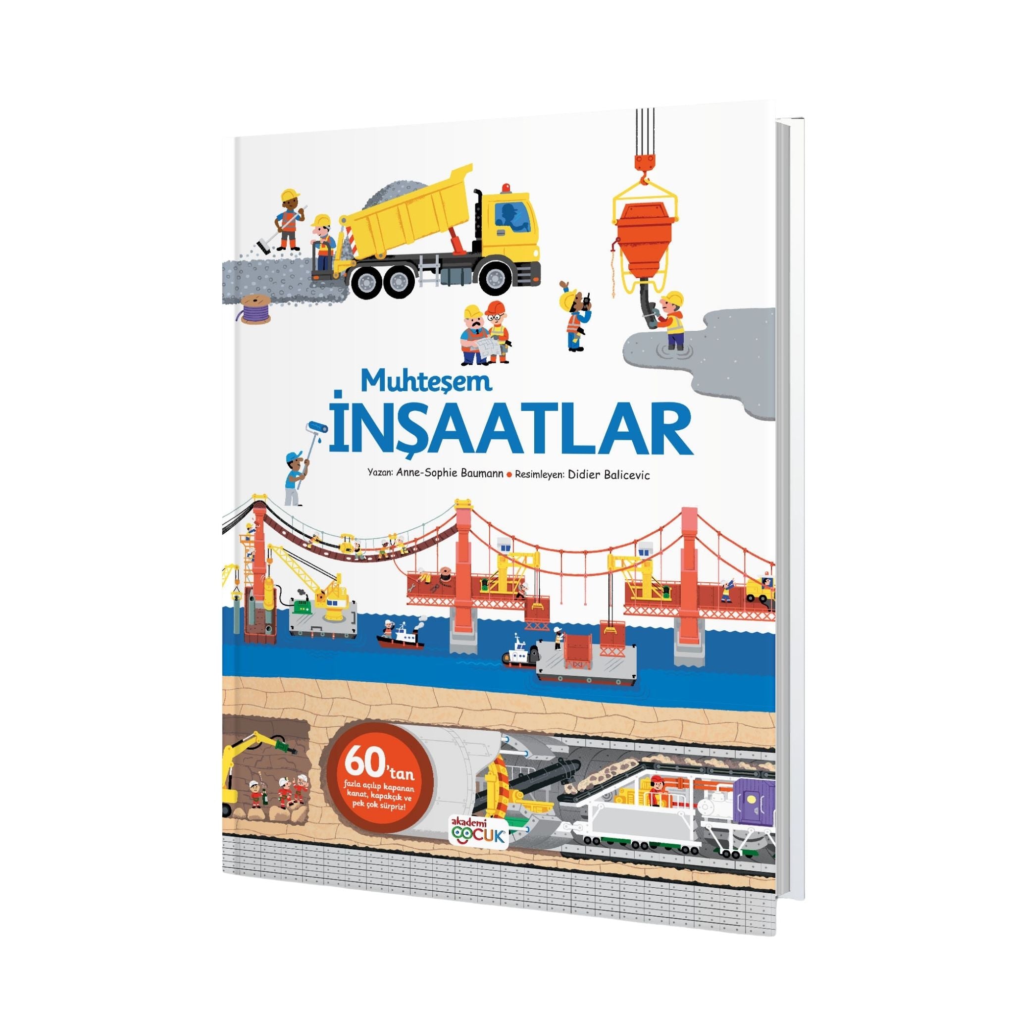 Şimdi inşa zamanı! İnşaat makineleri, dev vinçler, çimento mikserleri ve tünel açma araçları bu etkileyici interaktif kitapta bir araya geliyor. Minikler için hem eğlenceli hem öğretici olan Muhteşem İnşaatlar, inşaat alanlarının büyüleyici dünyasını keşfetme fırsatı sunuyor. Çocuklar, her sayfada yer alan 60’tan fazla hareketli parça ile adeta bir şantiye şefine dönüşüyor. Bir vincin kolunu kaydırabilir, bir çarkı döndürerek dev makineleri çalıştırabilir ve eğlence dolu bir sirk çadırını kurmak için mandal çekebilirler. Gerçek hayattan ilham alan ayrıntılı çizimler ve bilimsel bilgiler sayesinde öğrenme daha da eğlenceli hale gelir. Bu kitap, yalnızca okumakla kalmayıp uygulamalı olarak da öğrenmeyi sağlar. Sayfalar arasında keşif yapan çocuklar, el becerilerini geliştirirken aynı zamanda mühendislik ve yapım süreçlerini eğlenceli bir dille öğrenir. Hareketli mekanizmalar, ayrıntılı sahneler ve bilgilendirici içerikler bir araya gelerek çocuklara unutulmaz bir deneyim sunar.