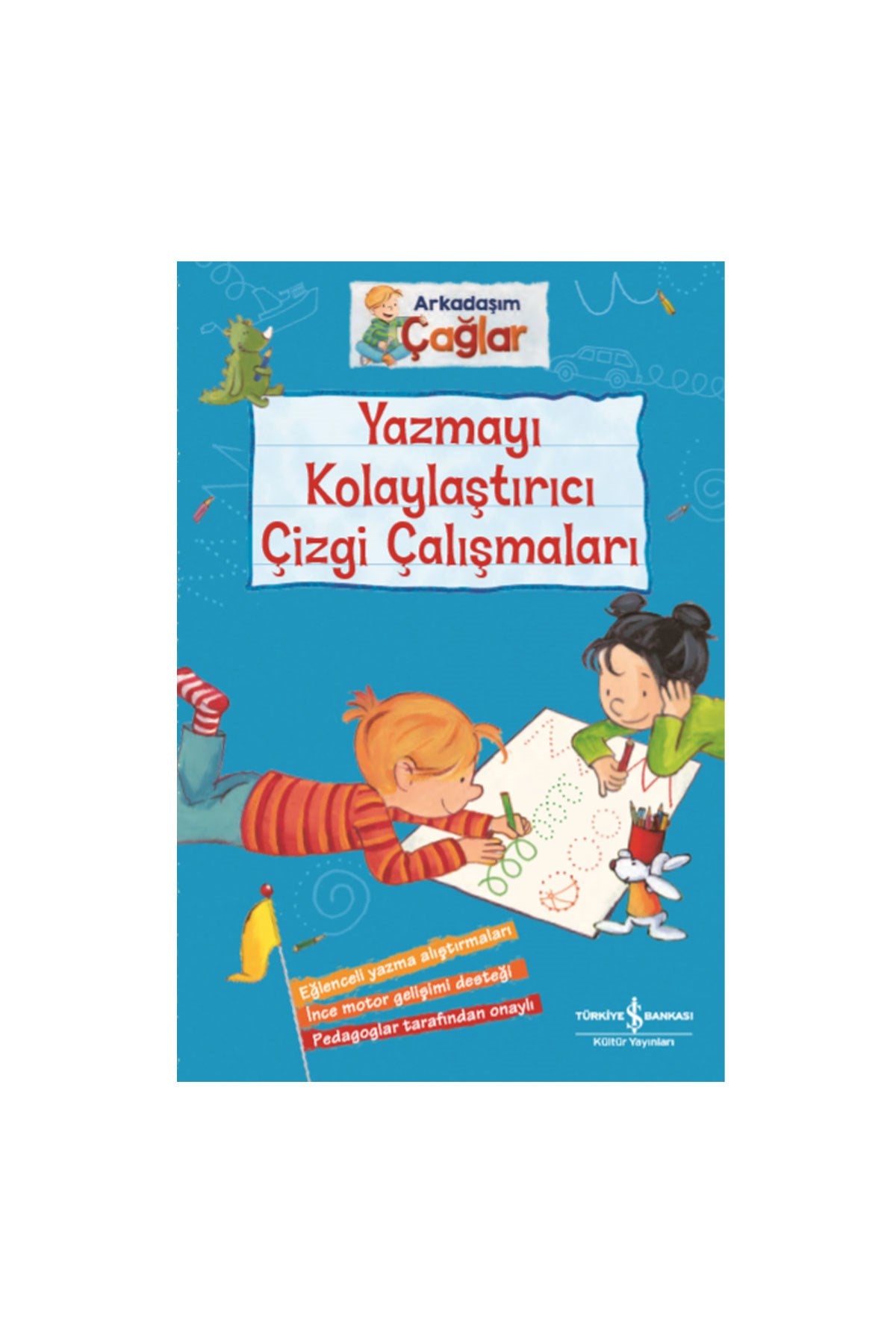 Çağlar ve en yakın arkadaşı Pelin'le birlikte yazmayı kolaylaştırıcı alıştırmaları yaparken, kalem tutma becerisini geliştirecek ve birleştirmeyi kolayca yazabileceksiniz. Örneğin bir merdiven çizerken H harfine benzetebilirsin veya bir deniz oluşumunun S harfiyle çok benzediğini görebiliyorsun. Eğlenceli yazma alıştırmaları, ince motor gelişim desteği, pedagoglar tarafından sürdürülebilen bu etkinlik kitabında yeni öğrenilen çocuklar için el becerisi çalışmaları mevcut. boyunca okul öncesi 6 ay-5 yaş arası çocuklar için eğitim niteliğinde olan Çağlar Serisi 'ni ebeveynleri de çok sevecek!