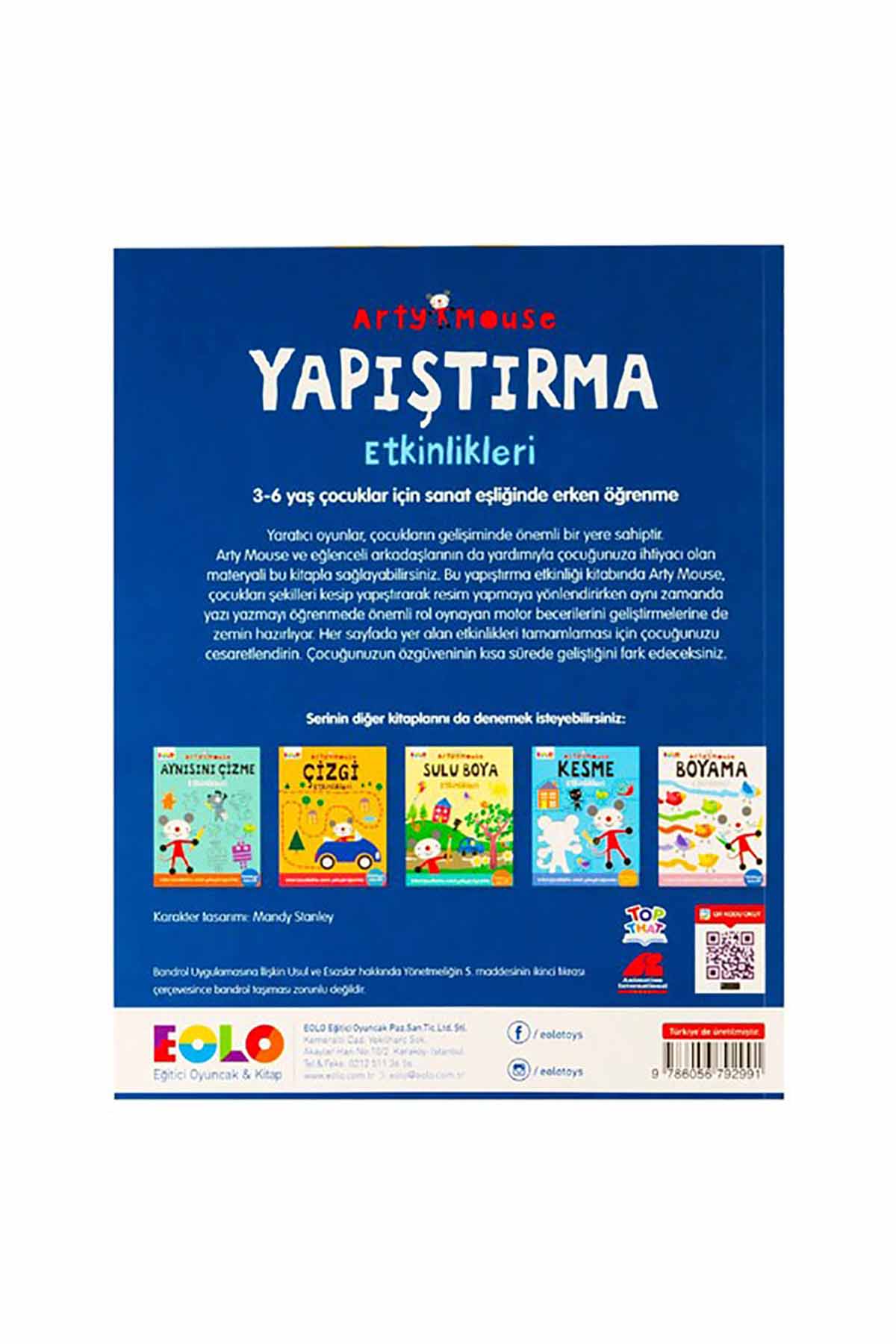 Eolo Arty mouse yapıştırma etkinlikleri ile çocuklar, Küçük kas kullanımı gerektiren hareketleri yapar, Malzemeleri keser,yapıştırır, Değişik malzemeler kullanarak resim yapar, Gösterilen geometrik şeklin ismini söyler, Geometrik şekillere benzeyen nesneleri gösterir. Çıkartmalı kitaplar ile çocuklar birçok gelişim alanlarını aktif olarak kullanıyor!