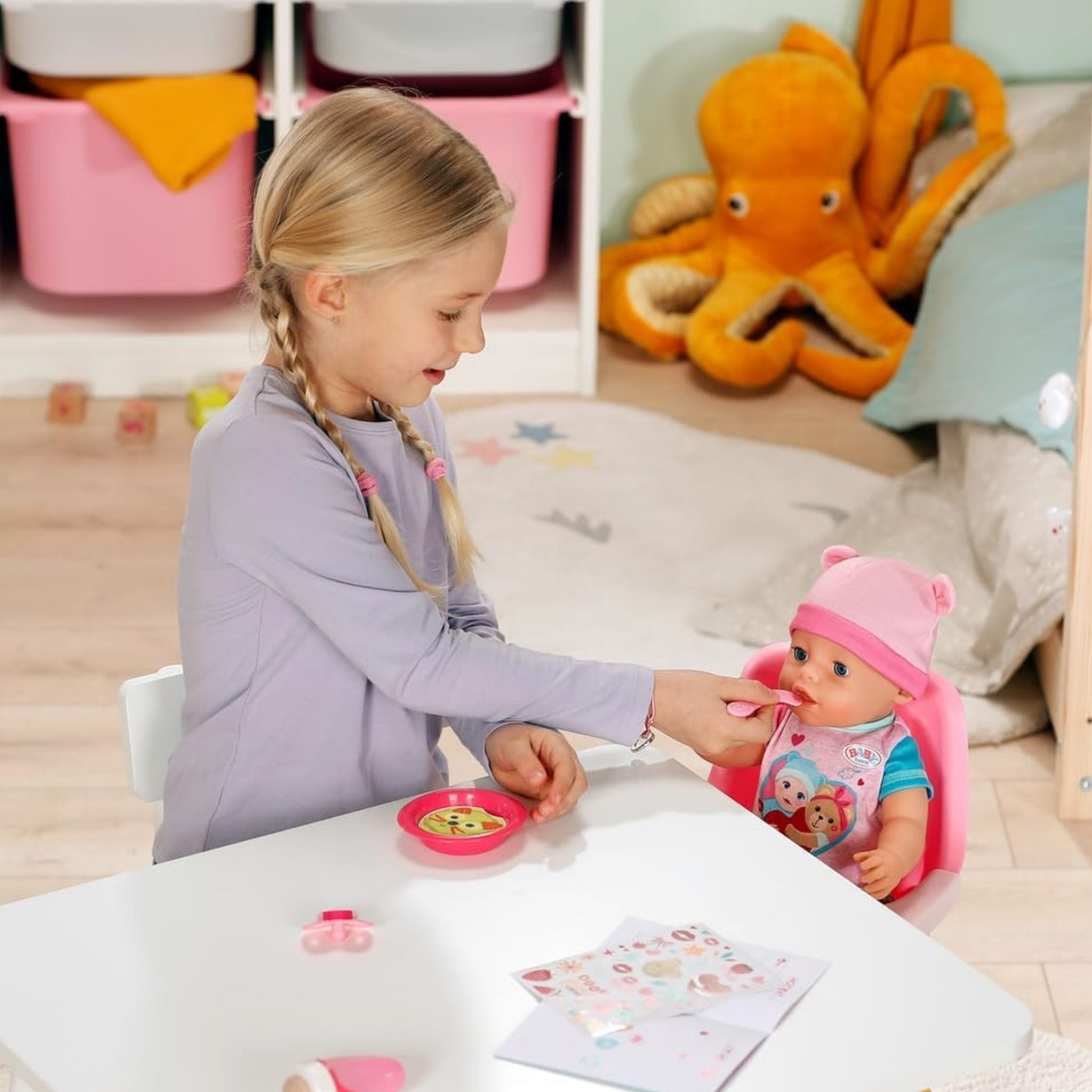 Baby Born Emma Bebek 43 cm, çocukların oyun dünyasına sıcaklık ve gerçekçilik katan özel bir oyun arkadaşıdır. 43 cm boyundaki Emma, gerçek bir bebek gibi tepki verebilen fonksiyonları sayesinde çocukların besleme, altını değiştirme, banyo yaptırma ve uyutma gibi günlük bakım rutinlerini oyunla deneyimlemesine yardımcı olur. Su içebilir, yemek yiyormuş gibi yapılabilir, gözyaşıyla ağlayabilir ve yıkandığında bile oyun keyfi devam eder. Bezini ıslatması, lazımlığına tuvaletini yapabilmesi ve sihirli gözlerini açıp kapaması, çocukların empati kurmasını ve sorumluluk duygusunu güçlendirirken hayal gücü yüksek rol oyunlarını da destekler. Yumuşak gövdesi ve kolay kavranan yapısı sayesinde hem evde hem seyahatte rahatça taşınabilir ve her yerde oyunlara eşlik eder.