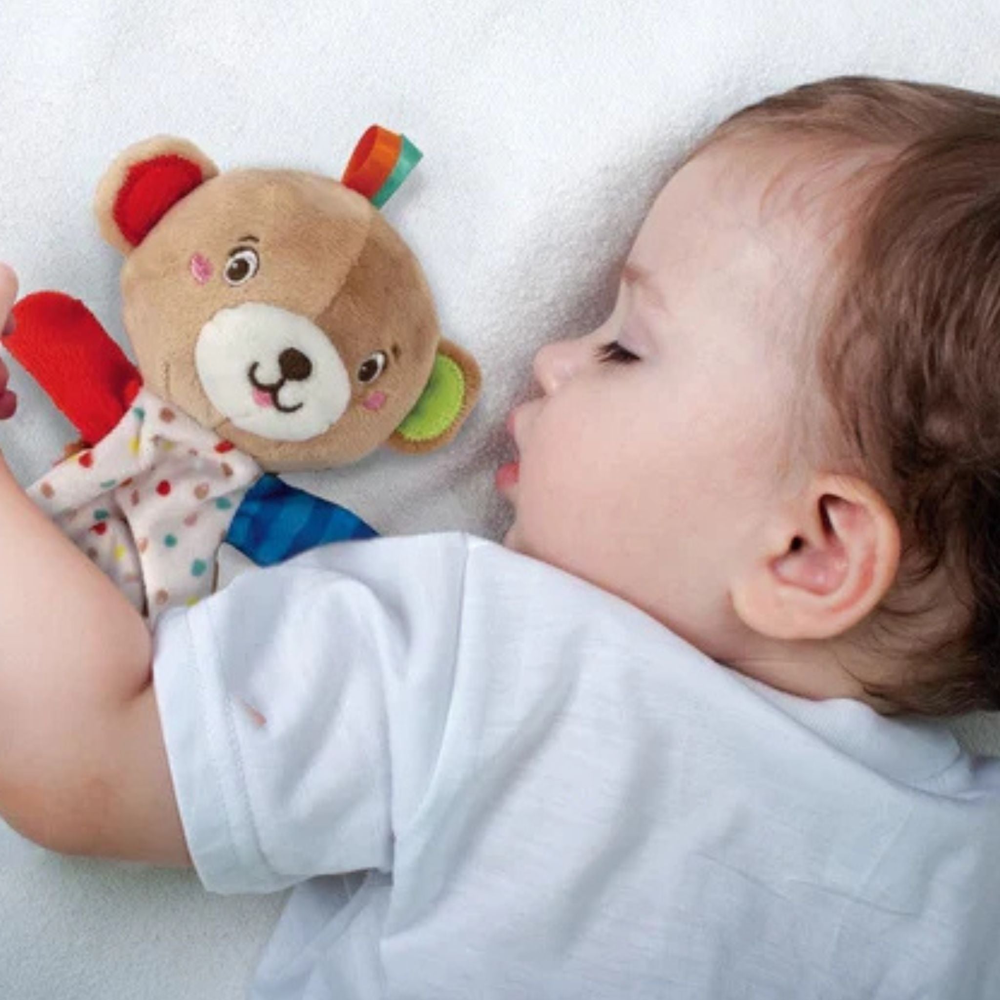 Anne kokusunu taşıyan ilk uyku arkadaşı! Yenidoğanlar için özel olarak tasarlanan bu yumuşak ve taşınabilir ayıcık, sarılma hissini ve anne varlığını güvenli bir şekilde sunar. Bebeğin duyusal dünyasında sakinlik yaratan bu oyuncak, annenin kokusunu üzerine alarak gün boyunca bebekle birlikte kalır. Ayıcığın elindeki ısırma emziği tutucusu, diş çıkarma dönemlerinde rahatlatıcı bir destek sunarken, yumuşacık kumaşı bebeğin güvenle sarılabileceği bir arkadaşlık hissi yaratır. Tüm parçaları makinede yıkanabilir olmasıyla da hijyen açısından pratiklik sağlar. Duyusal bağ kurmayı destekleyen bu ayıcık, bebeğinizin ilk aylarında ona konfor, güven ve sıcaklık hissi sunar. Anne kokusunu taşıyarak, uyku ve oyun saatlerinde en yakın arkadaşı olur.