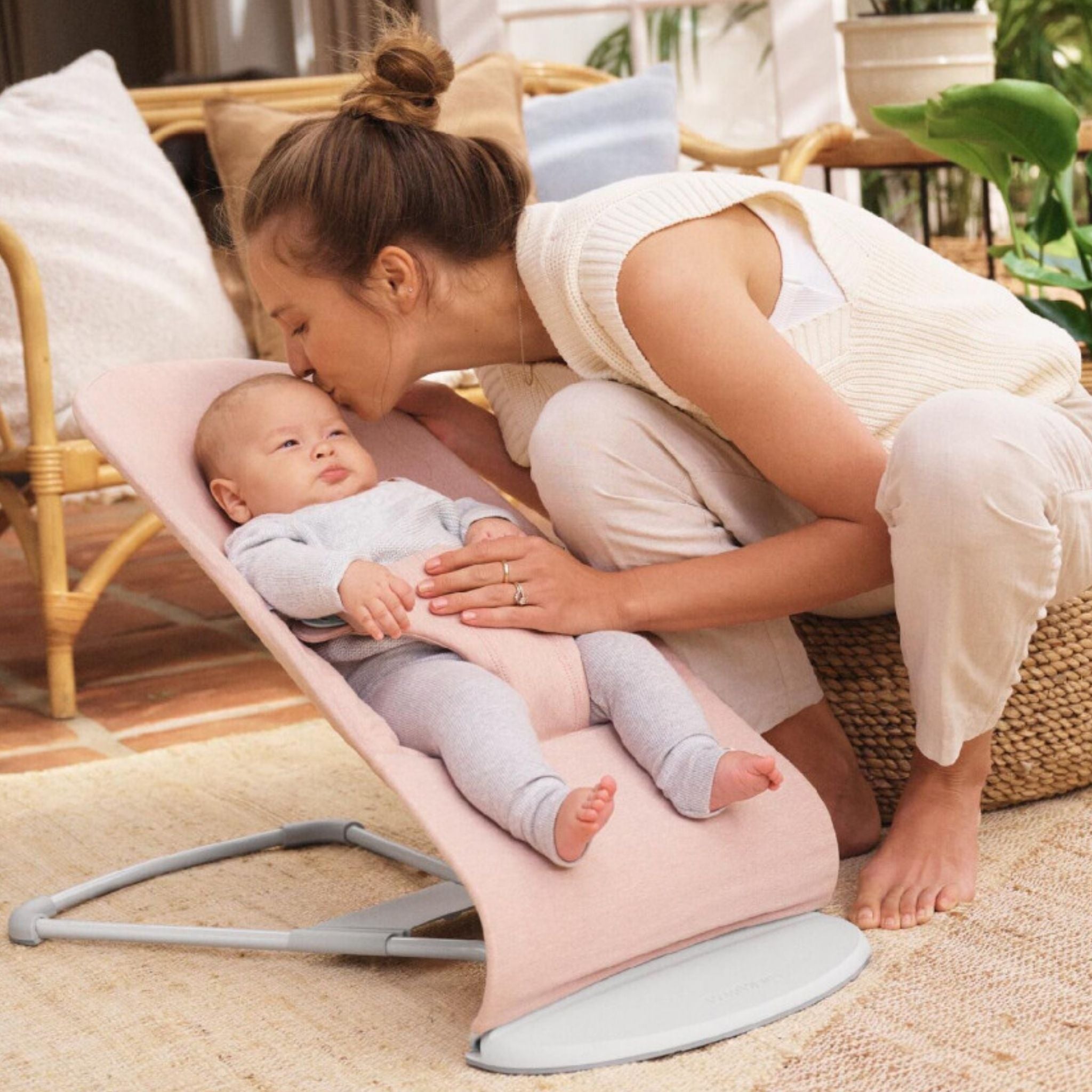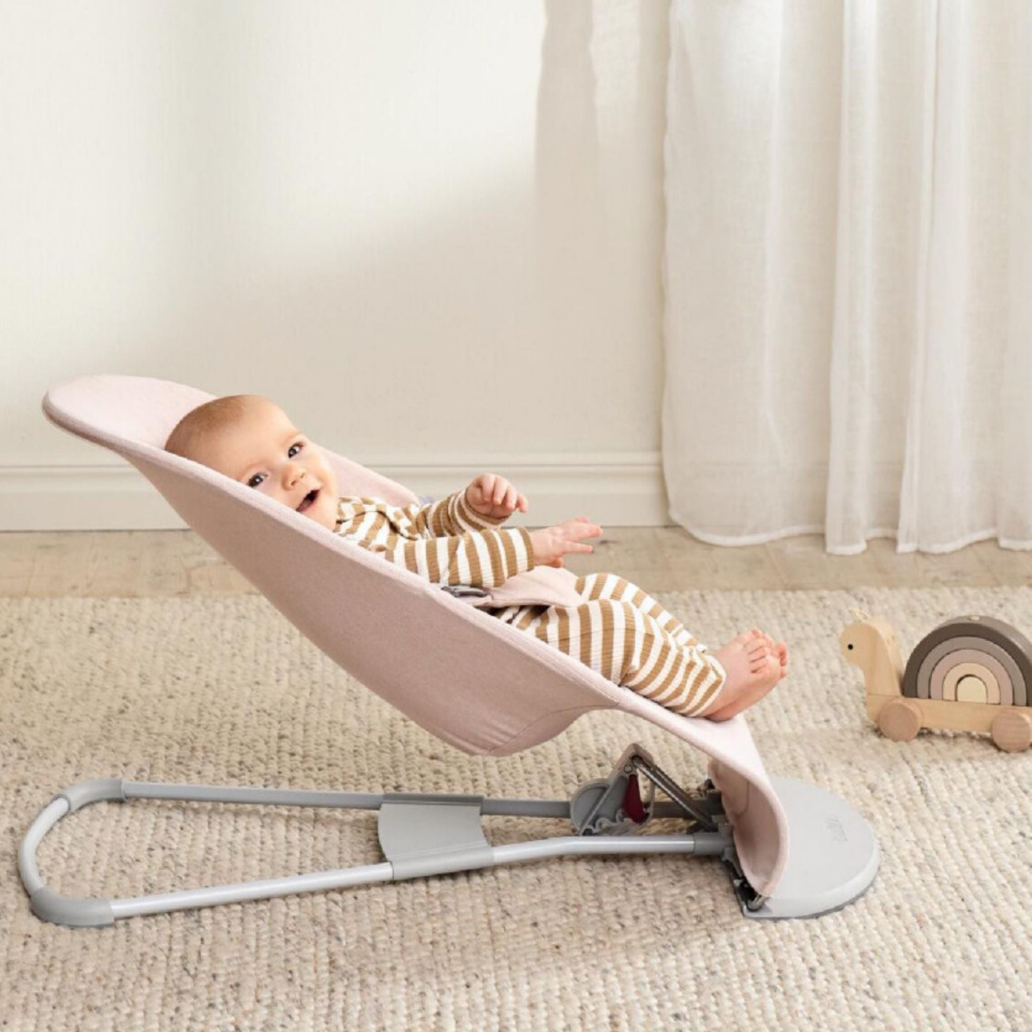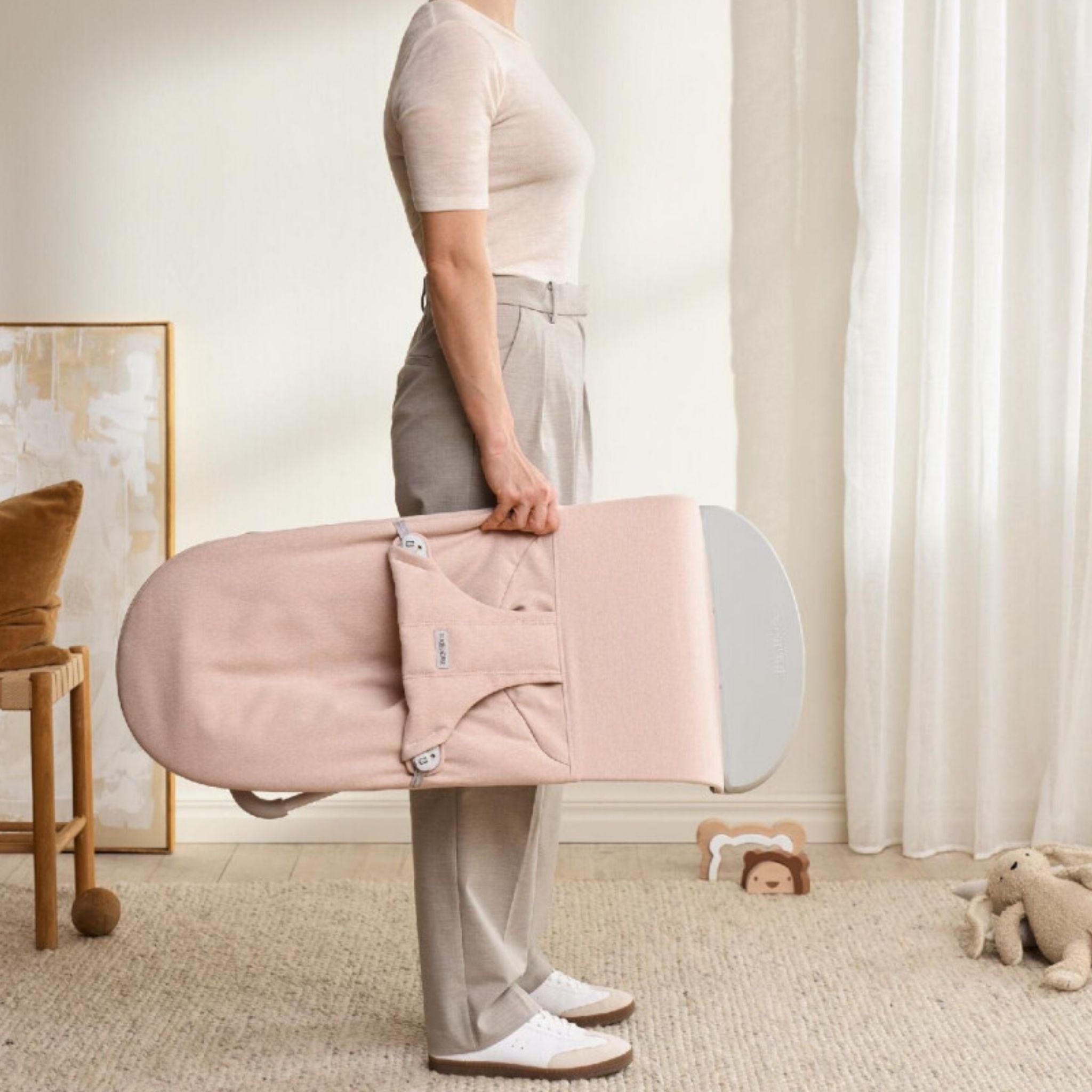 BabyBjörn Balance Bliss Woven Melange Light Pink, hem estetik hem de fonksiyonel özellikleriyle bebeğinizin ilk iki yılında güvenli ve konforlu bir kullanım sunar. %100 geri dönüştürülmüş malzemelerden üretilen özel melanj kumaşı, yumuşacık dokusuyla hassas bebek cildine nazikçe temas ederken, şık görünümüyle de ebeveynlerin beğenisini kazanır. Melanj efektli tasarım, dökülme ve lekeleri ustaca gizleyerek her zaman temiz ve düzenli bir görünüm sağlar. Bu özel ana kucak, pediatristlerin önerileri doğrultusunda ergonomik olarak geliştirilmiş olup, bebeğinizin sırt, baş ve boyun bölgesine ideal destek verir. Doğal sallanma sistemi, yalnızca bebeğin kendi hareketiyle çalışır; pile ihtiyaç duymaz ve bu sayede hem sakinleştirici hem de motor becerileri geliştirici bir deneyim sunar.