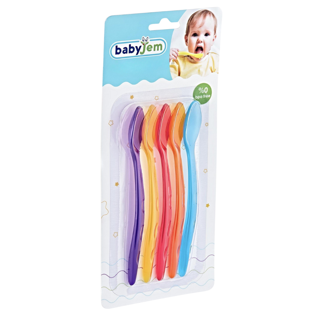 Babyjem 5’li Mama Kaşığı Seti, bebeğinizin ek gıdaya geçiş sürecini güvenli, konforlu ve keyifli hale getirmek için özel olarak tasarlanmıştır. Bebeğin hassas ağız yapısına uyum sağlayan yumuşak uçlu formu sayesinde beslenme sırasında diş etlerine nazikçe temas eder. Kendi kendine yeme alışkanlığını destekleyen bu set, 6 ay ve üzeri bebekler için günlük kullanıma uygundur. Ergonomik ve uzun sap tasarımı, ebeveynlerin besleme sırasında kaşığı rahatça kavramasına yardımcı olurken, derin mama kapları ve kavanozlar için de pratik bir kullanım sunar. Her biri farklı renkte tasarlanan kaşıklar, yemek saatlerini daha eğlenceli hale getirerek bebeğin ilgisini beslenmeye yönlendirir. Gıdaya uygun ve güvenli PP malzemeden üretilmiş yapısıyla ebeveynlerin gönül rahatlığıyla tercih edebileceği bir üründür. Babyjem Mama Kaşığı, bebeğin güvenli şekilde beslenmesini sağlamak ve kendi kendine yeme becerisini desteklemek amacıyla tasarlanmıştır. Yumuşak uç yapısı sayesinde beslenme sürecinde konfor sunar ve bebeğin kaşığa kolayca alışmasına yardımcı olur.