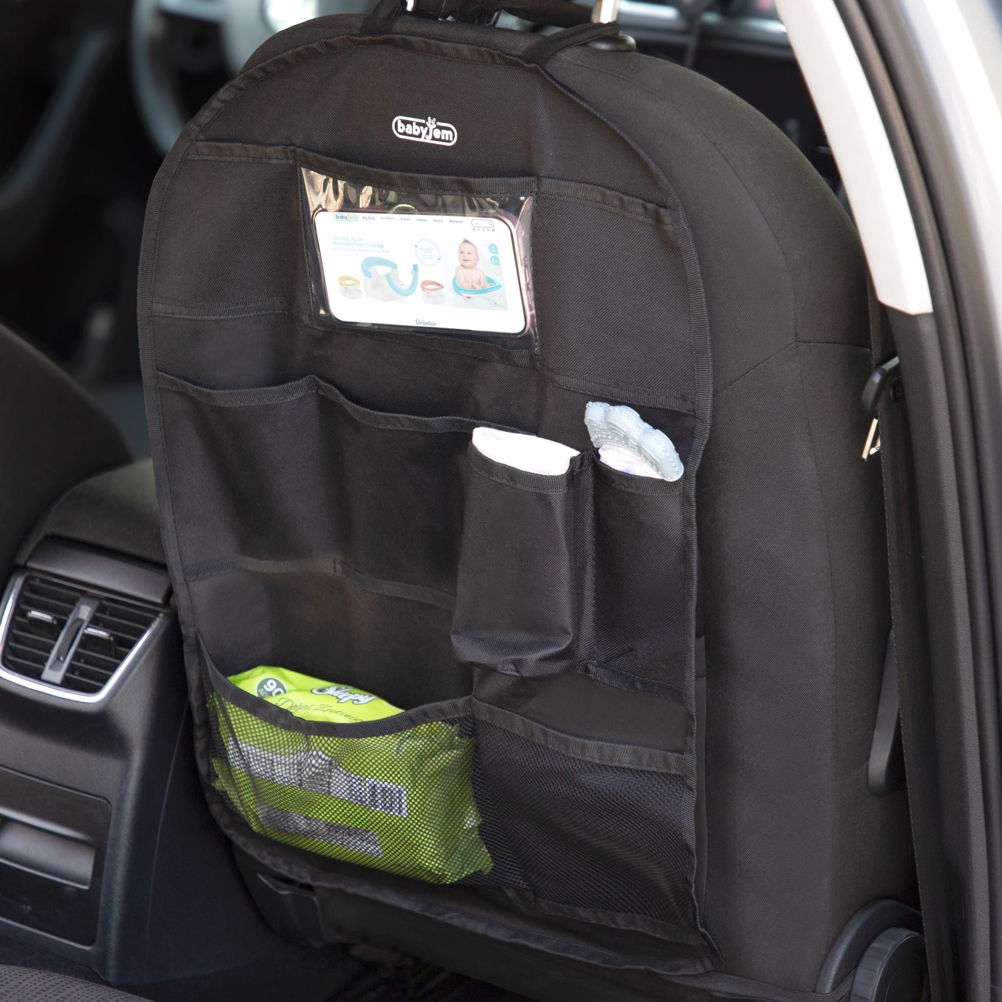 Bebekli aileler için seyahatleri daha konforlu ve düzenli hale getiren Babyjem Araç İçi Düzenleyici, 0+ ay ve üzeri kullanım için uygundur. Araç koltuğunun arkasına kolayca takılabilen ergonomik tasarımı sayesinde biberon, emzik, ıslak mendil, oyuncaklar ve diğer temel bebek eşyalarınızı elinizin altında tutmanıza yardımcı olur.Bebeğinizin tüm temel ihtiyaçlarını güvenli ve erişilebilir bir şekilde saklamak için Babyjem Araç İçi Düzenleyici ideal bir seçimdir.