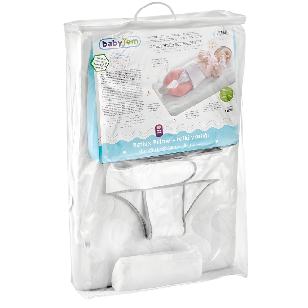 Babyjem Bebek Reflü Yastığı, bebekler için gerekli uyku desteğini sağlamak amacıyla özel olarak tasarlanmıştır. Bebeklerde mide kapakçığı tam gelişmediği için besinlerin yemek borusuna geri kaçması sık görülen bir durumdur. Bu durum, bebeklerde sık kusmaya, sindirim sorunlarına ve düzensiz uykuya neden olabilir. Reflüsü olan bebekler, mide asidinin yemek borusuna kaçmasıyla huzursuz olur ve yeterli dinlenemez. Reflülü bebekler için en doğru uyku pozisyonu, karnın altta ve başın yukarıda kaldığı pozisyondur. Babyjem Bebek Reflü Yastığı, bebeğin bu pozisyonda sabit kalmasına yardımcı olur ve mide asitlerinin geri kaçmasını azaltmayı destekler. Delikli sünger yapısı sayesinde bebek yüzüstü pozisyonda dahi hava alabilir ve güvenli bir uyku ortamı oluşur. Bu ürün tedavi edici bir ürün değildir, destekleyici olarak kullanılır. Üründe bulunan sünger kokusu, ambalaj açıldıktan kısa bir süre sonra kendiliğinden kaybolur. Babyjem Bebek Reflü Yastığı, bebeğinizin daha rahat, güvenli ve huzurlu bir uyku deneyimi yaşamasına yardımcı olmak için pratik ve destekleyici bir çözüm sunar.