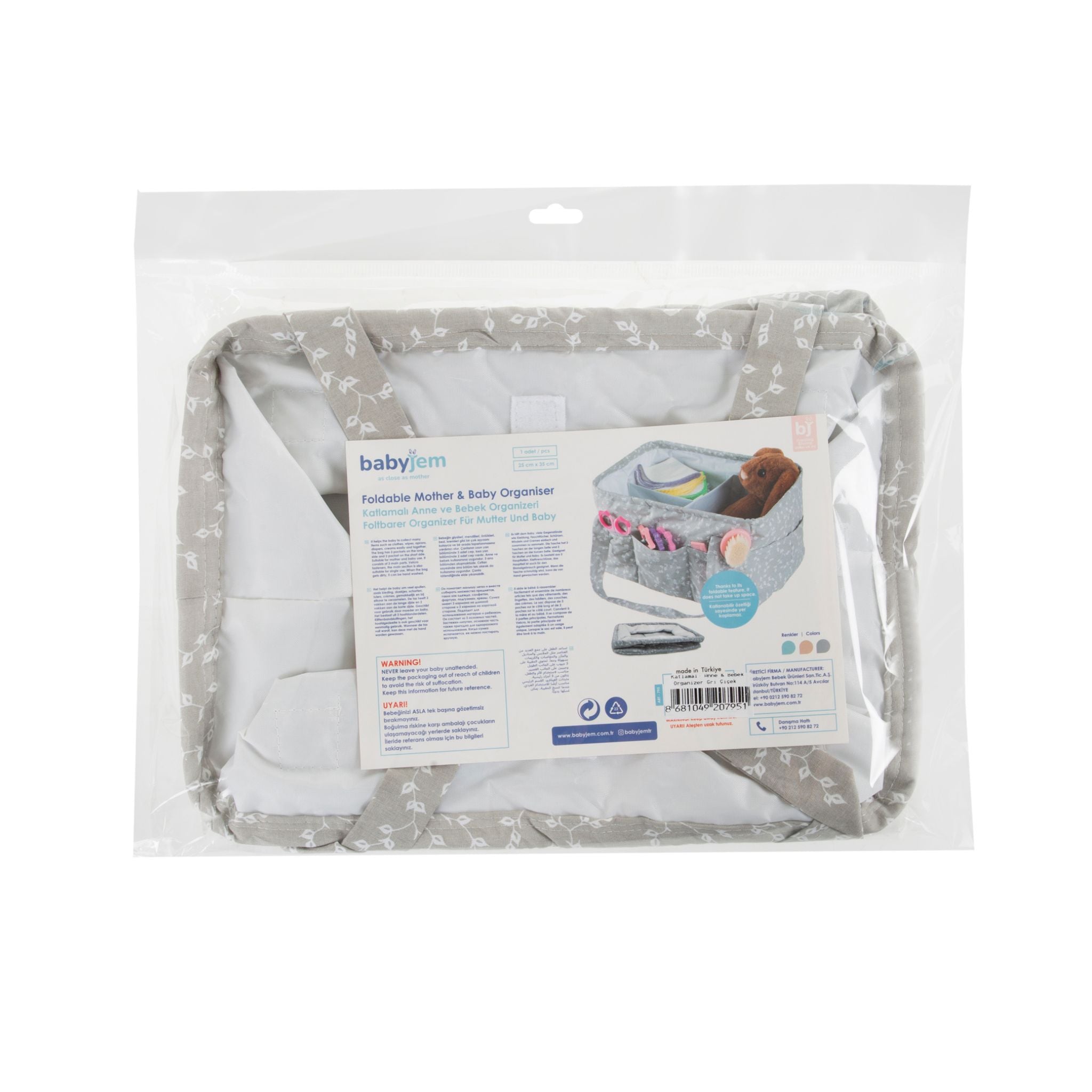 Babyjem Katlamalı Anne & Bebek Organizer, annelerin ve bebeklerin günlük ihtiyaçlarını düzenli bir şekilde saklamasına yardımcı olan şık ve fonksiyonel bir depolama çözümüdür. Geniş iç hacmi sayesinde bebek bezlerinden kıyafetlere, oyuncaklardan bakım malzemelerine kadar birçok eşyayı organize etmenizi sağlar. Katlanabilir yapısı sayesinde kullanılmadığında kolayca saklanabilir ve yerden tasarruf sağlar. Dayanıklı malzemesi uzun ömürlü kullanım imkanı sunarken, gri çiçek desenli modern tasarımı ev dekorasyonuna şık bir dokunuş katar. Babyjem Katlamalı Anne & Bebek Organizer, bebek bakım eşyalarını düzenli ve erişilebilir tutmak isteyen ebeveynler için ideal bir seçenektir. Hem fonksiyonel hem de estetik yapısıyla pratik bir kullanım sunarak hayatınızı kolaylaştırır.
