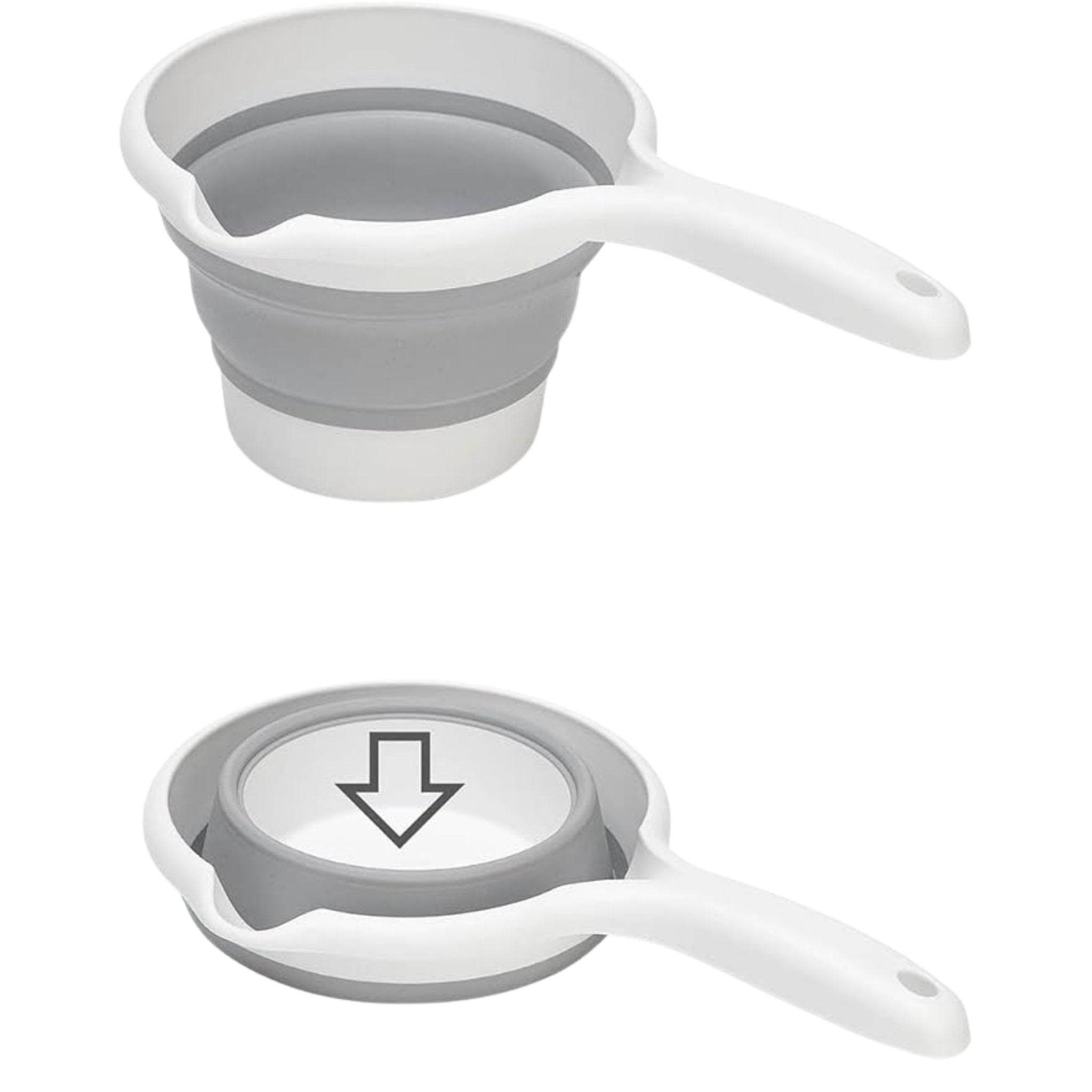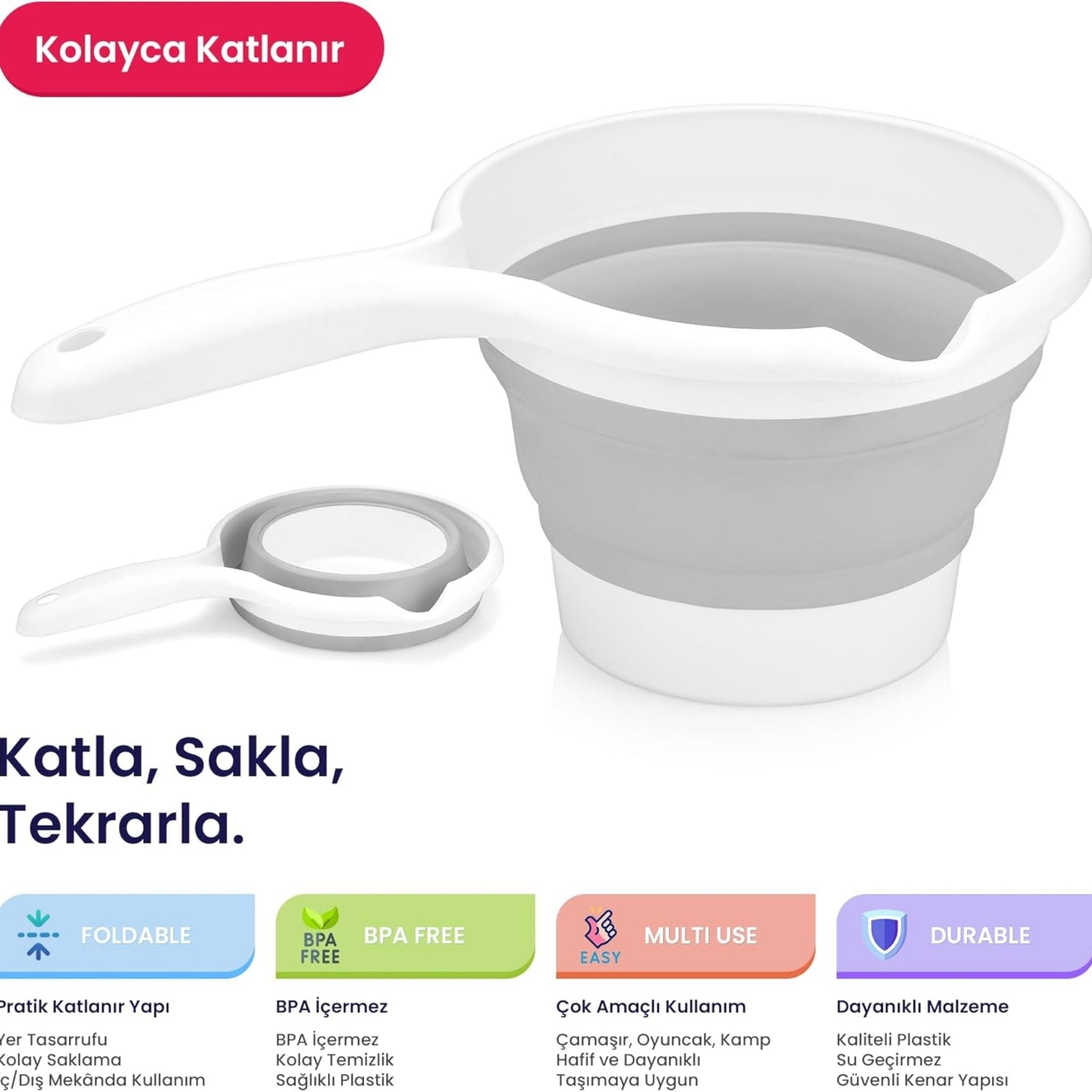 Babyjem Katlanır Maşrapa Gri, banyo sırasında suyu kontrollü bir şekilde bebeğin üzerine dökmeyi kolaylaştırmak için geliştirilmiştir. Sabun ve köpüklerin hızlıca temizlenmesini sağlar, ebeveynin durulama sürecindeki kontrolünü artırır ve bebek için konforlu bir deneyim sunar.