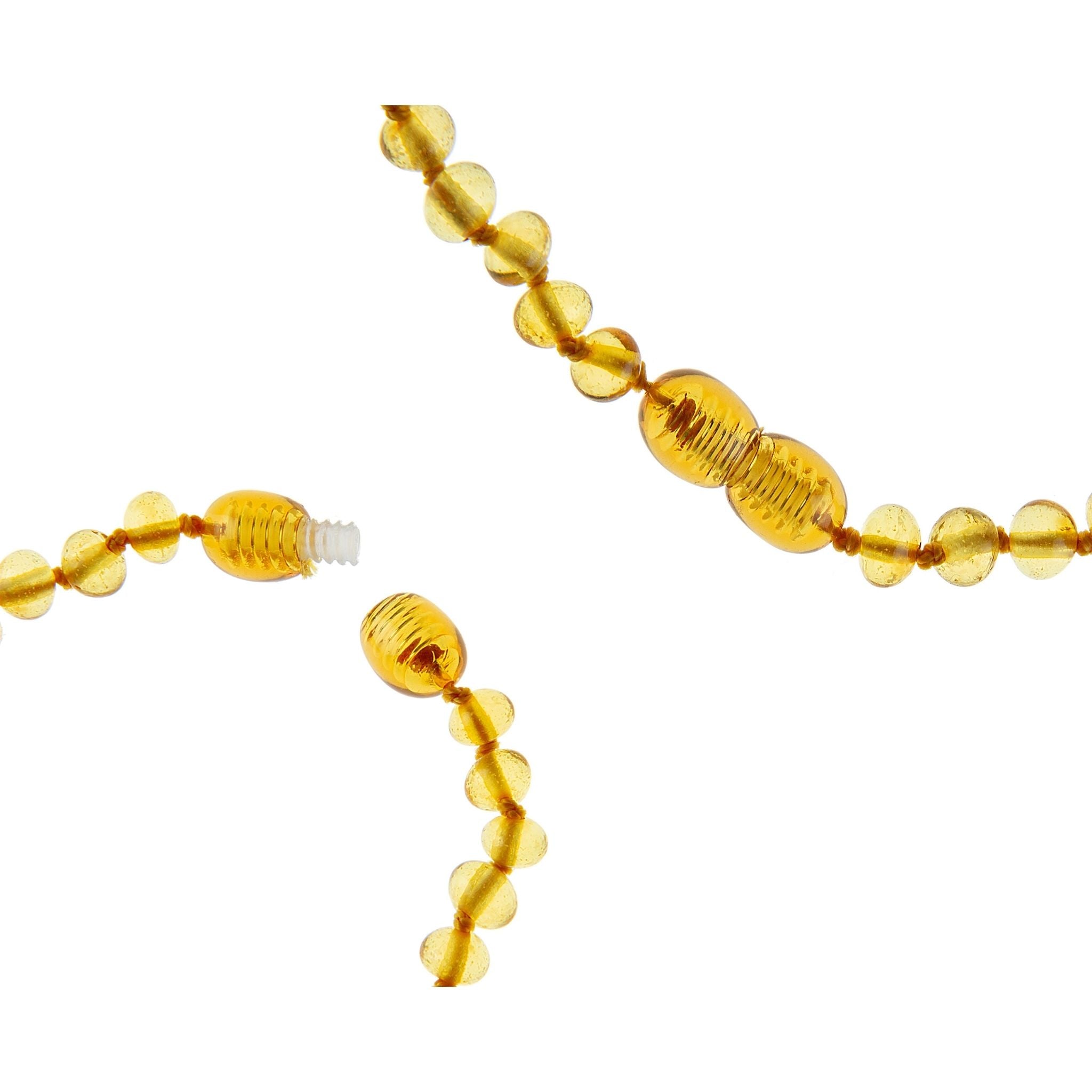 Bebekler için şıklığı ve doğal rahatlamayı bir araya getirir. Kehribar taşlarından üretilmiş bu özel kolye, bebeklerin diş çıkarma döneminde rahatlamalarına yardımcı olmak amacıyla tasarlanmıştır. Doğal kehribar taşları, şirin ve hafif tasarımıyla hem güvenli hem de estetik bir seçenek sunar. Bal rengindeki kehribar taşları, doğal özellikleriyle bilinen ve bebeğin rahatsızlık hissini azaltmaya yardımcı olabilecek özellikler taşır. Ergonomik tasarımı sayesinde, bebeklerin rahatça kullanabileceği ve ebeveynlerin de rahatça takıp çıkarabileceği bu kolye, güvenli bir kullanım için özel olarak üretilmiştir.Bebeğinizin konforunu ön planda tutarak, hem şık hem de fonksiyonel bir aksesuar olarak öne çıkar.
