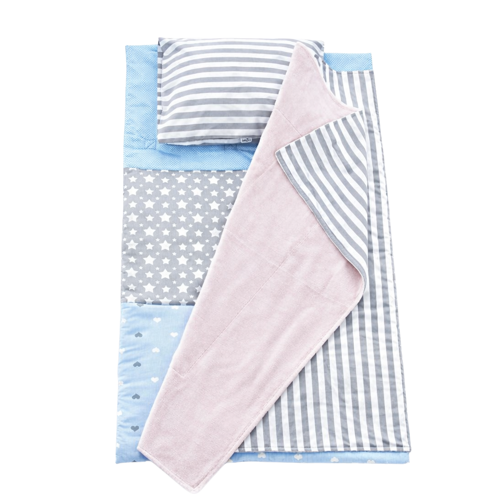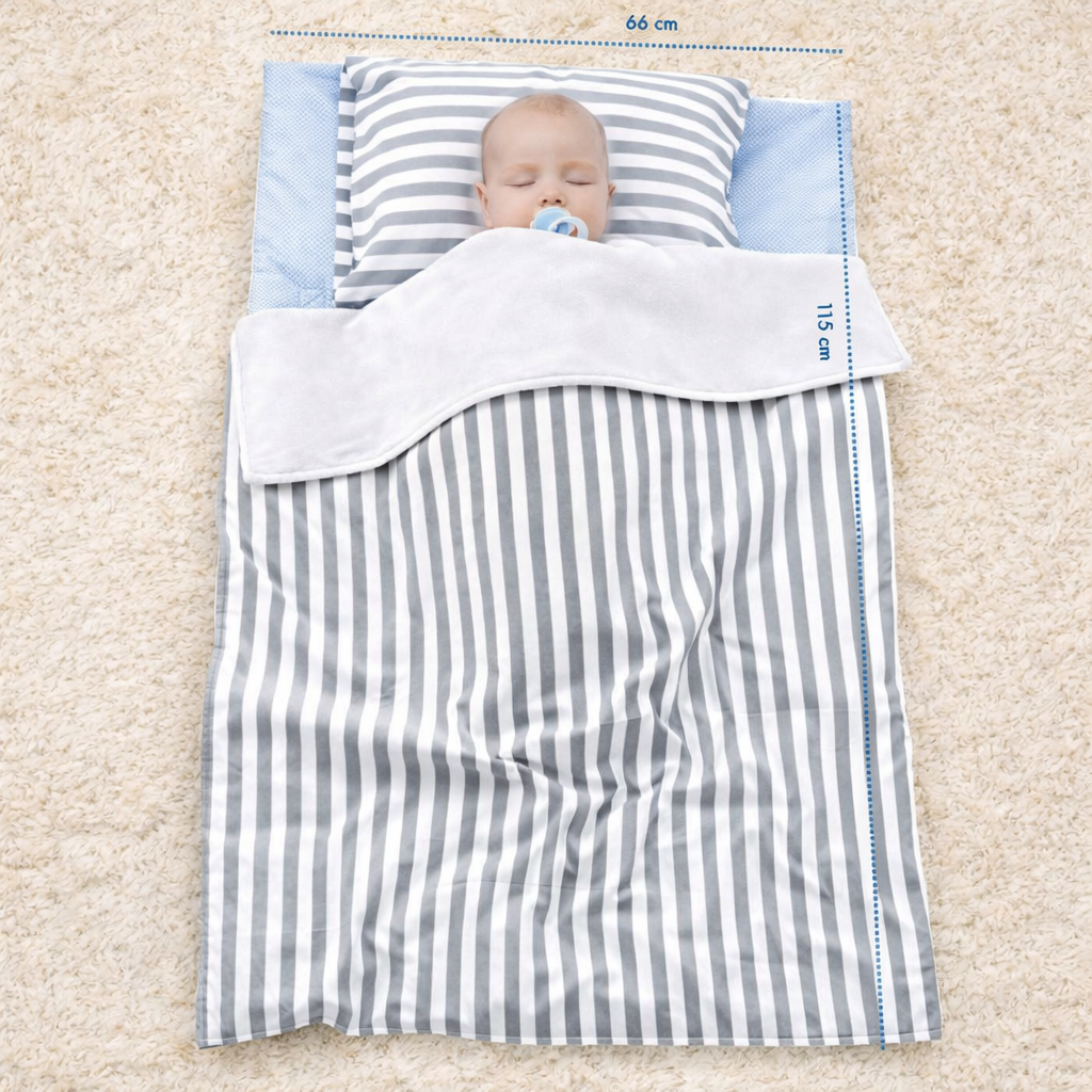 Babyjem Şekerleme Matı Erkek, bebeğinizin gün içindeki uyku ve dinlenme anlarını daha konforlu hâle getirmek için özel olarak tasarlanmıştır. Evde, dış mekânda veya seyahat sırasında güvenli bir uyku alanı sunan bu şekerleme matı, hafif ve taşınabilir yapısı sayesinde ebeveynlerin günlük kullanımda rahatlıkla tercih edebileceği pratik bir çözümdür. Yumuşak dokusu, bebeğin vücudunu destekleyerek konforlu bir uyku deneyimi sağlar. Erkek bebeklere uygun sade ve sevimli tasarımıyla öne çıkan Babyjem Şekerleme Matı Erkek, hem estetik hem de işlevsel yapısı ile dikkat çeker. Çıkartılabilir yastığı sayesinde bebeğin baş ve boyun bölgesi desteklenirken, yumuşak elyaf dolgusu rahat bir zemin oluşturur. Gün içinde kısa uykular, oyun sonrası dinlenme ya da seyahat molaları için ideal bir kullanım sunar. Özel bağlama ipleri sayesinde kolayca sarılarak çanta formuna dönüştürülebilir. Bu özellik, ürünü taşıma ve saklama açısından büyük kolaylık sağlar. Dayanıklı ve kaliteli kumaş yapısı ile uzun süreli kullanım imkânı sunan Babyjem Şekerleme Matı Erkek, ebeveynlerin bebekleri için güvenle tercih edebileceği bir uyku destek ürünüdür.