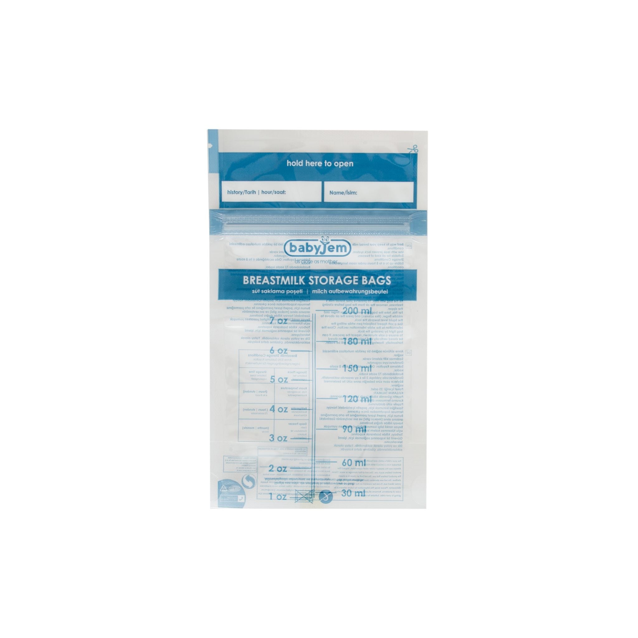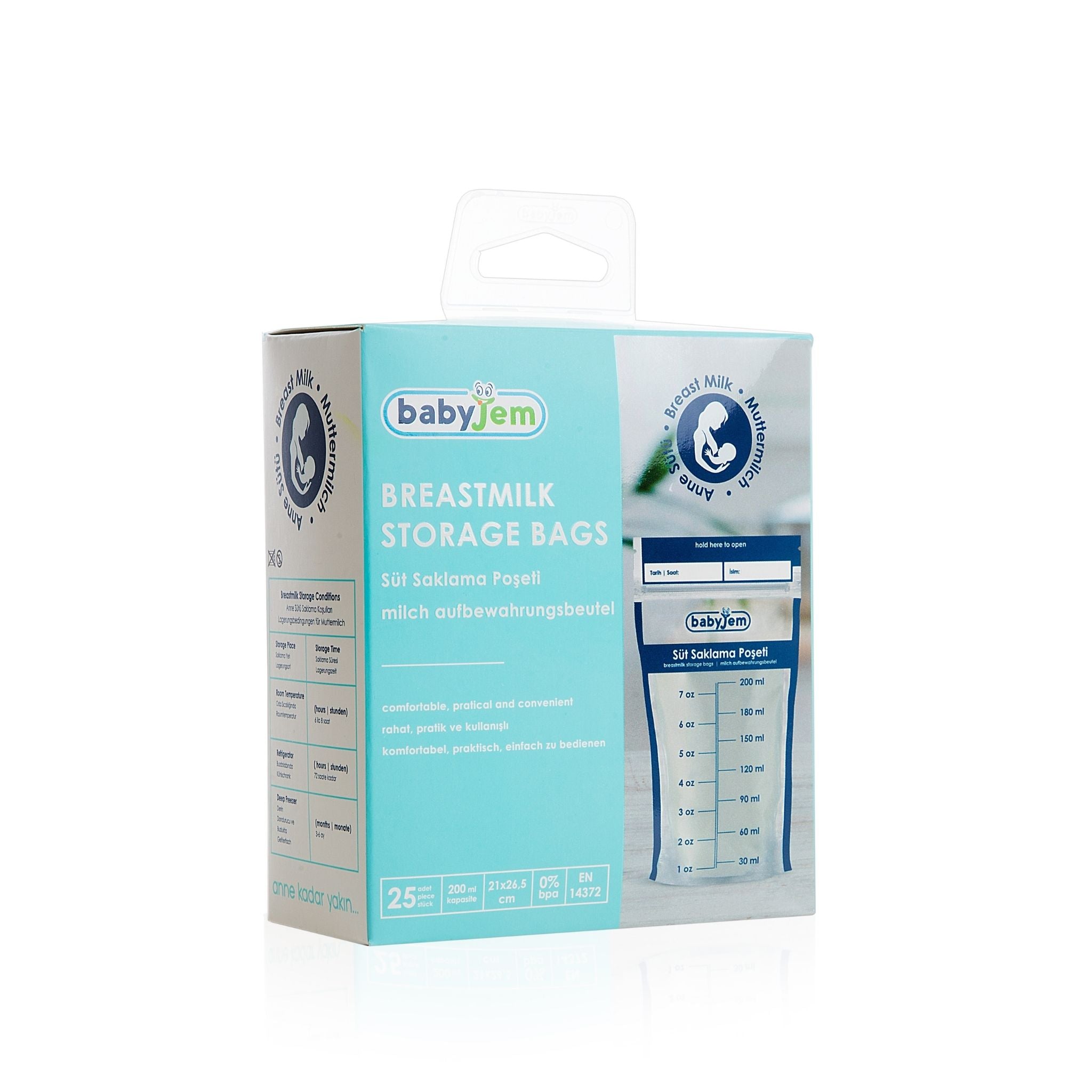 Babyjem Süt Saklama Poşeti, annelerin en değerli besin kaynağı olan anne sütünü güvenli, hijyenik ve pratik bir şekilde muhafaza edebilmesi için özel olarak tasarlanmıştır. Çift katlı dayanıklı yapısı sayesinde hava ve nem geçirmez, böylece sütün besin değerini uzun süre korur. BPA ve zararlı kimyasallar içermeyen güvenli malzemeden üretilen bu poşetler, bebeğinizin sağlığı için ideal bir çözümdür. 200 ml kapasitesi ve üzerine gün/saat notu yazılabilen alanıyla kullanım kolaylığı sunar. Babyjem Süt Saklama Poşeti, annelere sütlerini güvenle muhafaza etme imkânı sunarken bebeklerin her zaman sağlıklı besine ulaşmasını sağlar. Günlük kullanım için ideal olan bu poşetlerle anne sütünü her zaman taze, hijyenik ve güvenli şekilde saklayabilirsiniz.