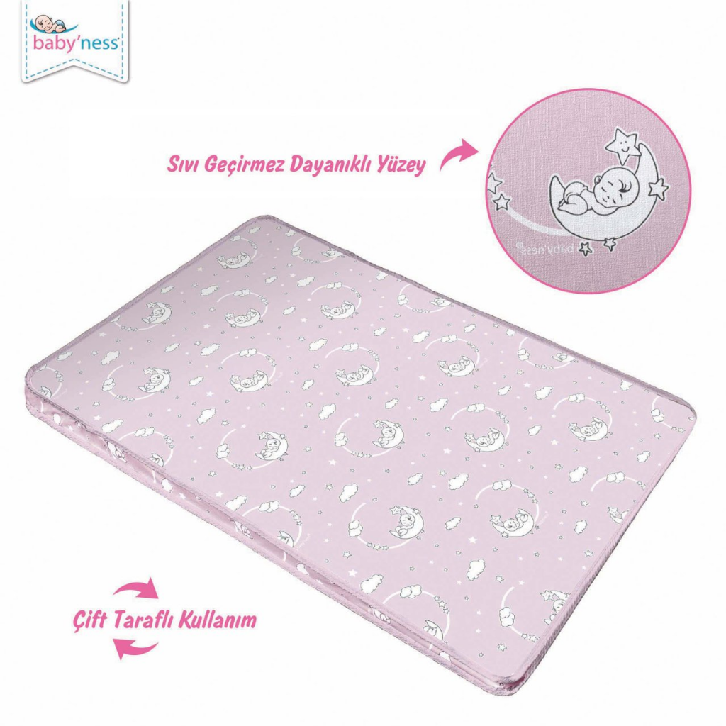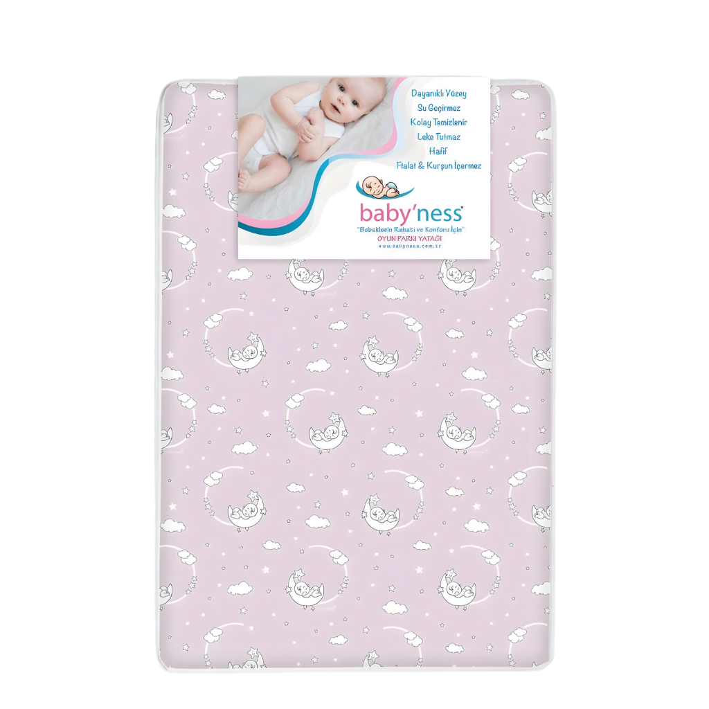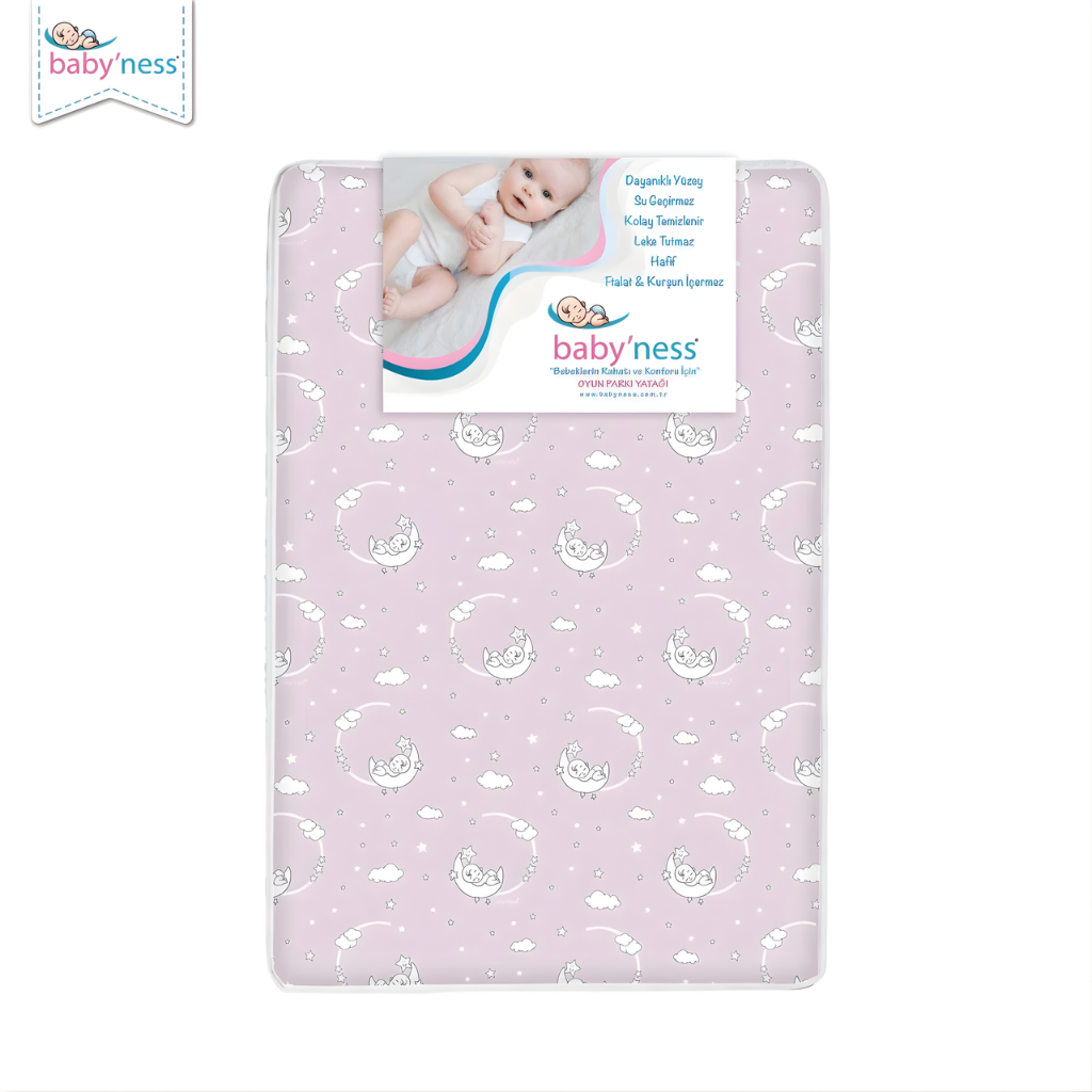 Baby'Ness Oyun Parkı Yatağı Baskılı, bebeğinizin uyku ve oyun alanında konforu ön planda tutmak amacıyla tasarlanmıştır. Farklı doku, renk ve desen seçenekleriyle hem bebeğinizin ihtiyaçlarına hem de evinizin dekorasyonuna uyum sağlar. Park yataklarıyla uyumlu ölçüleri sayesinde güvenli ve rahat bir kullanım sunar. Özel iç dolgu yapısı sayesinde yumuşak bir zemin oluşturan Baby'Ness Desenli Oyun Parkı Yatağı, yeni doğan bebeklerden yürümeye başlayan çocuklara kadar geniş bir yaş aralığında kullanılabilir. Hafif yapısı sayesinde ev içerisinde kolayca taşınabilir ve bebeğiniz için her ortamda konforlu bir oyun alanı oluşturur. Baby'Ness Desenli Oyun Parkı Yatağı, sıvı geçirmeyen ve leke tutmayan özel üst yüzeyi sayesinde iç dolgunun korunmasına yardımcı olur. Bu yapı sayesinde alez kullanımına ihtiyaç duyulmadan ekstra koruma sağlar. Olası sıvı temaslarında iç dolgu zarar görmez ve ürün hijyenik yapısını korur.
