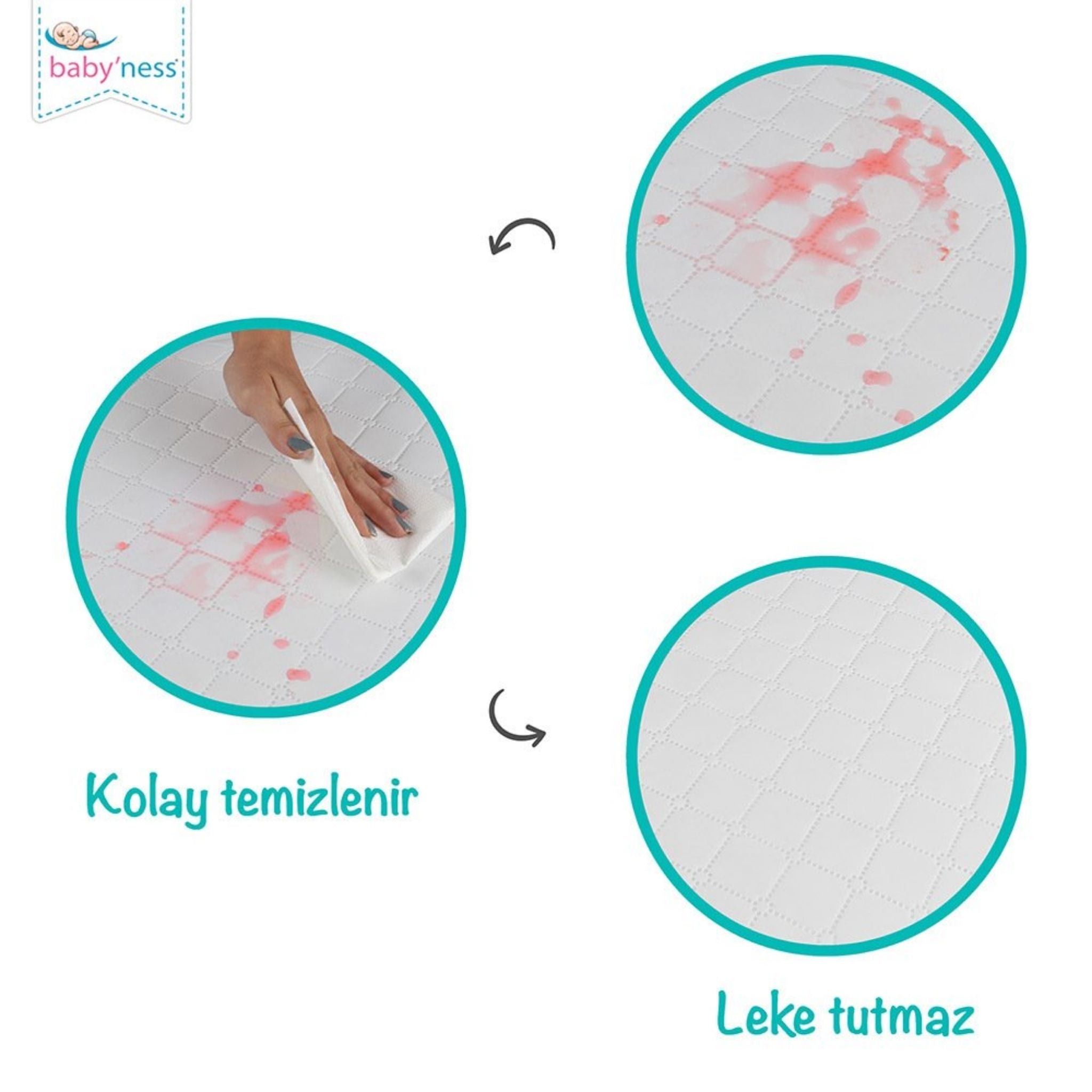 Baby'Ness Oyun Parkı Yatağı, hem yeni doğan bebeklerin rahatlığı hem de yürümeye başlayan çocukların oyun ve uyku konforu için özel olarak tasarlanmıştır. Kapitoneli yapısı ve sıvı geçirmez kumaşı sayesinde uzun süreli kullanım için ideal olan bu ürün, ebeveynlerin güvenle tercih edebileceği sağlıklı ve pratik bir çözümdür. Yumuşak iç dolgusu, bebeğinizin uyurken huzurlu ve keyifli bir deneyim yaşamasına yardımcı olurken, oyun oynarken de konforlu bir alan sunar. Kırışmayan dokusu sayesinde her zaman düzgün bir görünüm sergiler. Baby'Ness Oyun Parkı Yatağı, sıvı geçirmez ve leke tutmaz yüzeyi sayesinde alez kullanmaya gerek bırakmaz. İç dolgusu sıvıdan etkilenmez ve bebeğinizin güvenliği korunur. Hafif yapısı sayesinde kolayca taşınabilir, böylece bebeğiniz nerede olursanız olun konforundan ödün vermez. Hem uyku hem de oyun zamanı için ideal olan bu ürün, sağlıklı ve güvenli malzemelerden üretilmiş olmasıyla da ebeveynlerin gönül rahatlığıyla tercih edebileceği bir bebek yatağıdır. Baby'Ness Oyun Parkı Yatağı Kapitoneli 70x110x5 cm, bebeğinizin oyun ve uyku alanını güvenli, konforlu ve pratik hale getiren özel bir üründür.