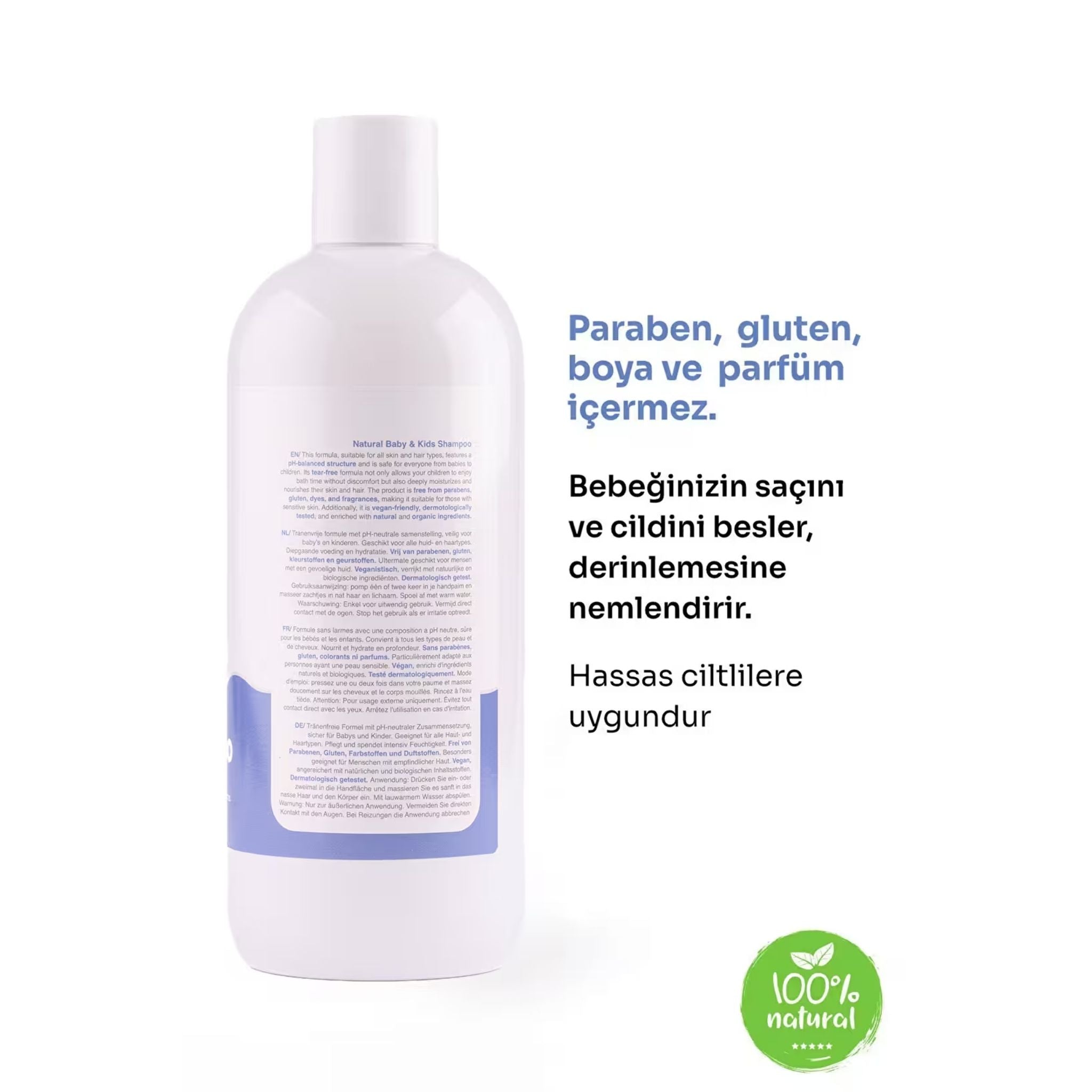 Babyton Göz Yakmayan Doğal Bebek ve Çocuk Şampuanı, hassas cilt yapısına sahip bebekler ve çocuklar için özel olarak geliştirilmiş nazik ve güvenilir bir temizlik ürünüdür. Göz yakmayan formülü ile banyolar artık daha keyifli ve konforludur. %100 doğal içerikli yapısı sayesinde saç ve vücut temizliğini nazikçe gerçekleştirir, aynı zamanda cildi kurutmadan nemlendirir ve saçları yumuşatır. Glüten, parfüm, boya ve tuz içermeyen formülü; lavanta yağı, aloe vera ve hindistancevizi yağı gibi doğal bileşenlerle zenginleştirilmiştir. ph dengeli yapısı ile tüm saç ve cilt tipleri için uygundur. Vegan dostu olup, dermatolojik olarak test edilmiştir. Günlük kullanımda güvenle tercih edilebilir.