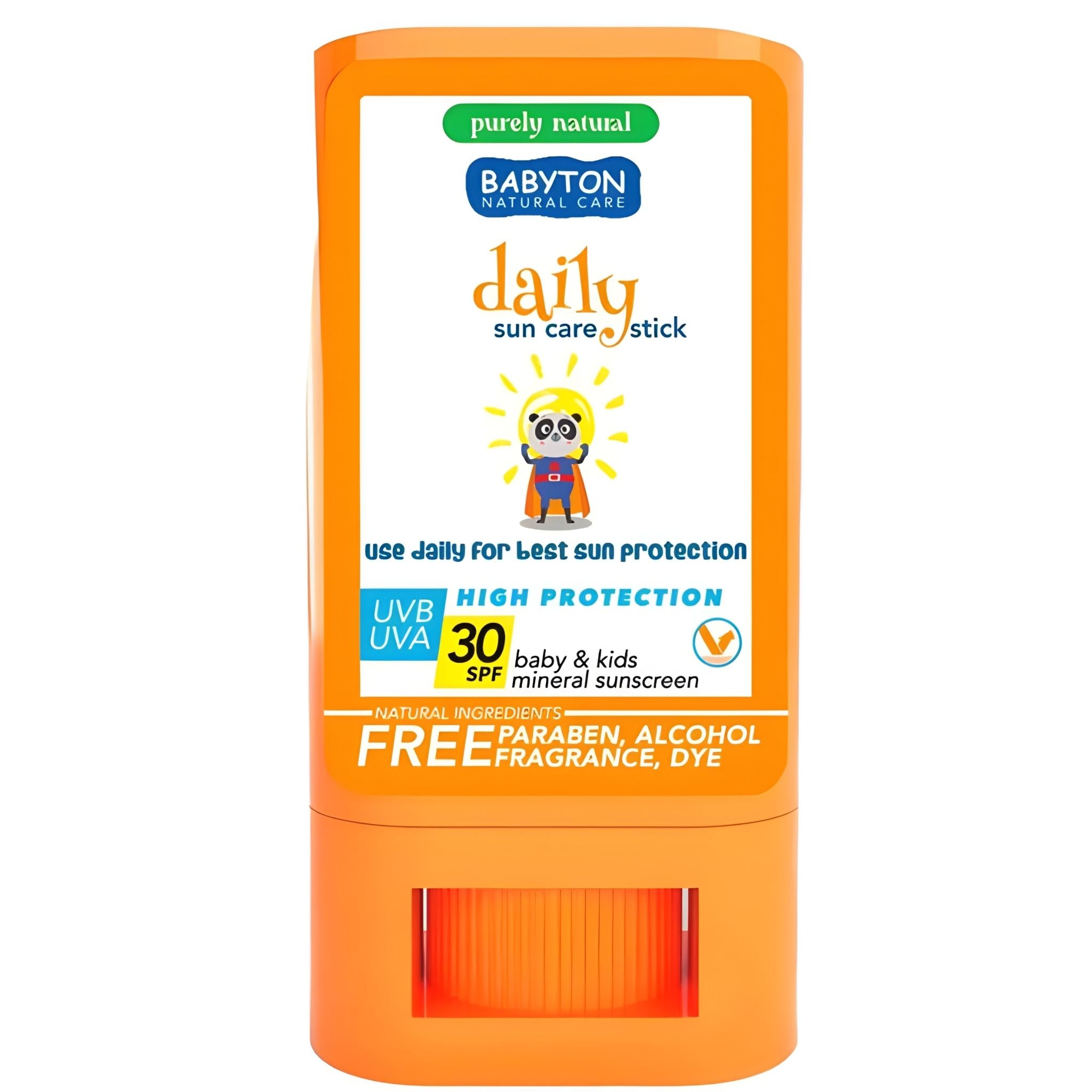 Babyton Güneş Koruyucu Stick SPF30, bebek ve çocukların hassas ciltleri için özel olarak geliştirilmiş, kolay taşınabilir ve pratik kullanım sunan mineral içerikli bir güneş koruyucudur. Nano teknoloji içermeyen çinko oksit ile formüle edilen bu stick, UVA ve UVB ışınlarına karşı güvenilir koruma sağlar. Cera alba, hindistancevizi yağı, zeytinyağı ve shea yağı gibi doğal içeriklerle zenginleştirilmiş yapısı, cildi beslerken nem dengesini destekler. Günlük kullanıma uygun bu ürün, özellikle yüz bölgesinde (burun, alın, çene, yanak) etkili uygulama sağlar. Kompakt yapısı sayesinde çantanızda rahatlıkla taşıyabilir, gün içinde kolayca yeniden uygulayabilirsiniz.