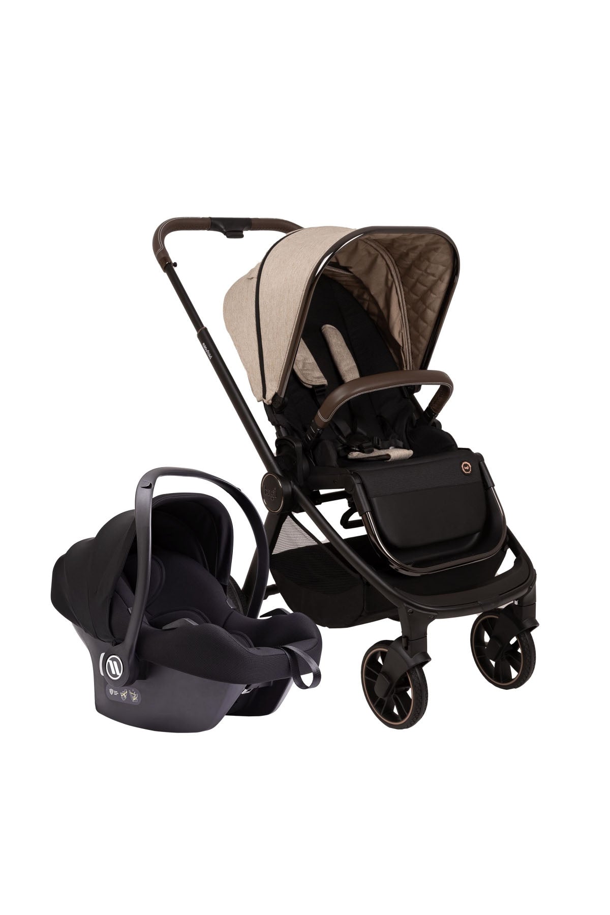 Bagi, siz ebeveynlerin konfor, teknoloji ve stil anlayışını ön planda tutarak, bebeğiniz için en doğru ve kaliteli ürünü cazip fiyatlarla sizlerle buluşturmaktadır. Tüm ürünleri sanayi bakanlığı ve TSE onaylı olup satış sonrasında kendi bünyesinde yer alan hızlı teknik servisi ile hizmet vermektedir. Konforlu Deneyim Konforlu seyahat deneyimi için yapmış olduğu Ar-ge çalışmaları neticesinde Easyfold 3 bebek arabasını tasarlayan Bagi, çok kolay ve hızlı şekilde katlanma özelliği ve kapandığında da çok az yer kaplayan yapısı sayesinde ergonomik bir kulanım sunar. Ayrıca 3 kademeli olarak ayarlanabilen ve tam yatış pozisyonuna sahip Easyfold 3, çift yönlü oturma ünitesi ve uzayabilen tente yapısı ile oldukça kompakttır. Esnek Sürüş Kabiliyeti Şase malzemesi olarak kullandığı kaliteli, sağlam ve hafif krom yapı ile Easyfold 3 modeline ekstra bir dizayn getirmiştir. Tekerleklerinde bulunan süspansiyon sistemi ve kauçuk teker yapısı ile siz ebeveynlere konforlu sürüş sağlar. Stil Sahibi Annelere. Rahat ve pratik kullanım sunan Easyfold 3, kaliteli kumaş yapısı, deri tutma kolu ve ön bar tasarımı ile tüm dikkatleri üzerine çekiyor. Ayrıca özel geliştirilmiş süspansiyonlu tekerlek yapısı ve alüminyum şase seçeneği ile kalite ve şıklığı bir arada sunuyor. Travel sistemde bulunan oto koltuğu rengi stoklarımıza bağlı olarak değişiklik gösterebilir.