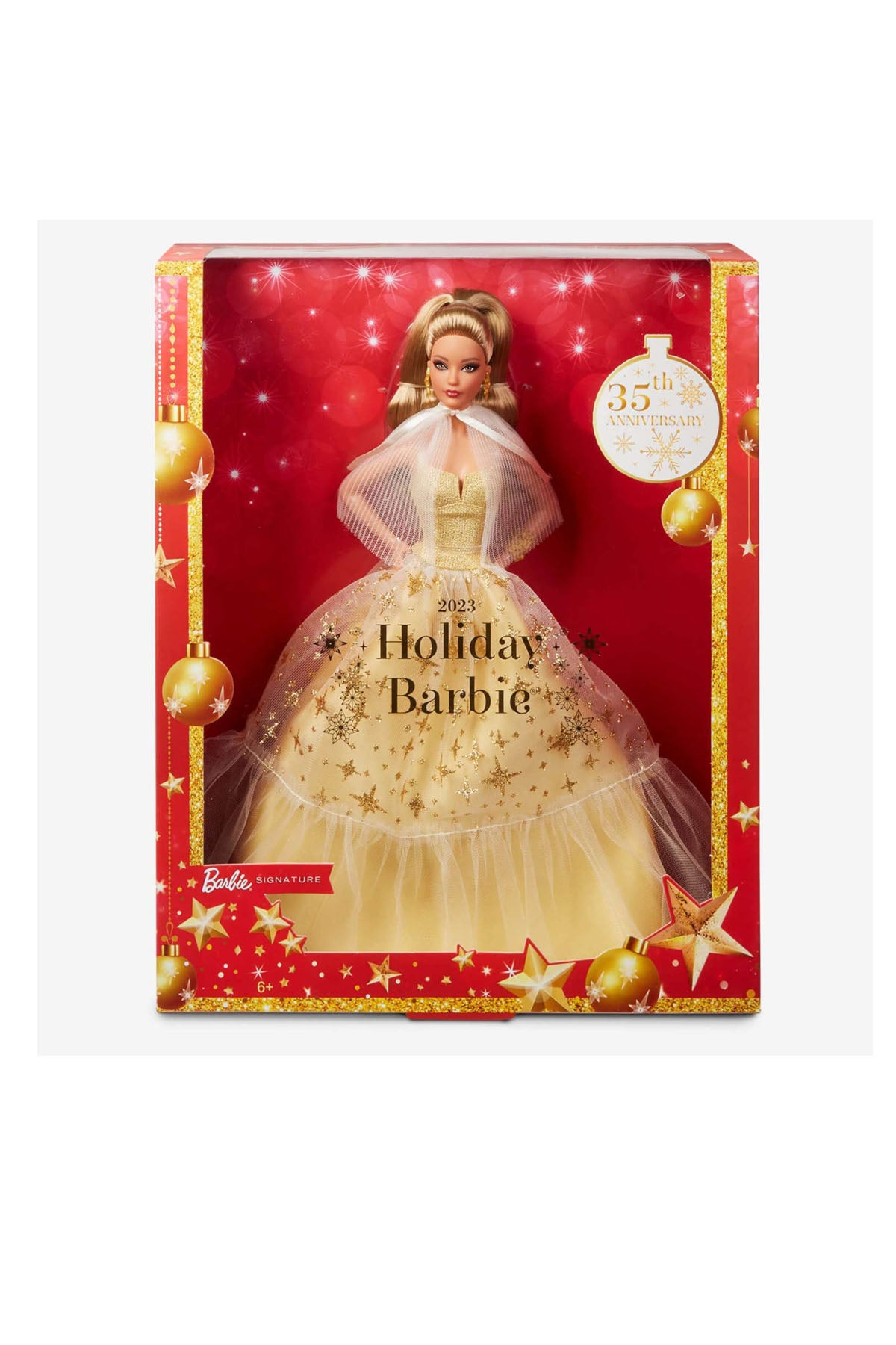 Hediyeler verme ve sevdiklerinizle bir araya gelmenin tam zamanı! Barbie 2023 Mutlu Yıllar Bebeği, yıldız işlemeleriyle ışıldayan altın rengi elbisesi ile mevsimin ruhunu yansıtır. Altın rengi, yeni yılda her zaman sıcaklığın ve aydınlığın sembolü olmuştur. Bu nedenle, sembol haline gelen Barbie 2023 Mutlu Yıllar Bebeği 35. yıl serisi için de mükemmel bir renktir. Sergilemek için özel olarak tasarlanmış paketiyle koleksiyona uygun olan bu bebek, 6 yaş ve üzeri çocuklar için mükemmel bir hediyedir. Bebek standı ve Özgünlük Belgesi dahildir. Bebek tek başına ayakta duramaz. Yılın en neşeli zamanını Barbie ile kutlayın! Barbie 2023 Mutlu Yıllar Bebeği'nin 35. yılını ifade eden bu şık bebek, mevsimin tüm iyiliği ve ışıltısıyla parlar. Şampanya rengi etkileyici saten elbisesi altın rengi yıldızlarla ışıldayan tül etek kaplamasına sahiptir. Pileli şeffaf pelerin fildişi saten bir kurdeleyle boyundan bağlanırken gösterişli altın küpeler ve işlemeli altın bileklik mevsimin ışıltısını yakalar. Gösterişli tepeden atkuyruğu balımsı kahverengi saçları, kıpkırmızı dudakları ve kırmızı ojesiyle eksiksiz bir görünüşe sahiptir. Bu Barbie 2023 Mutlu Yıllar Bebeği'nin tüm evlere mutluluk ve neşe getirmesini dileriz! Şık ambalajıyla hediye etmek ve sergilemek için mükemmeldir. Yeni hikayeler yaratmak çocukların hayal güçlerini ve yaratıcılıklarını destekler. Bu bebeklerle oynamak çocukların arkadaşlarıyla birlikte eğlenceli vakit geçirmesini sağlar.