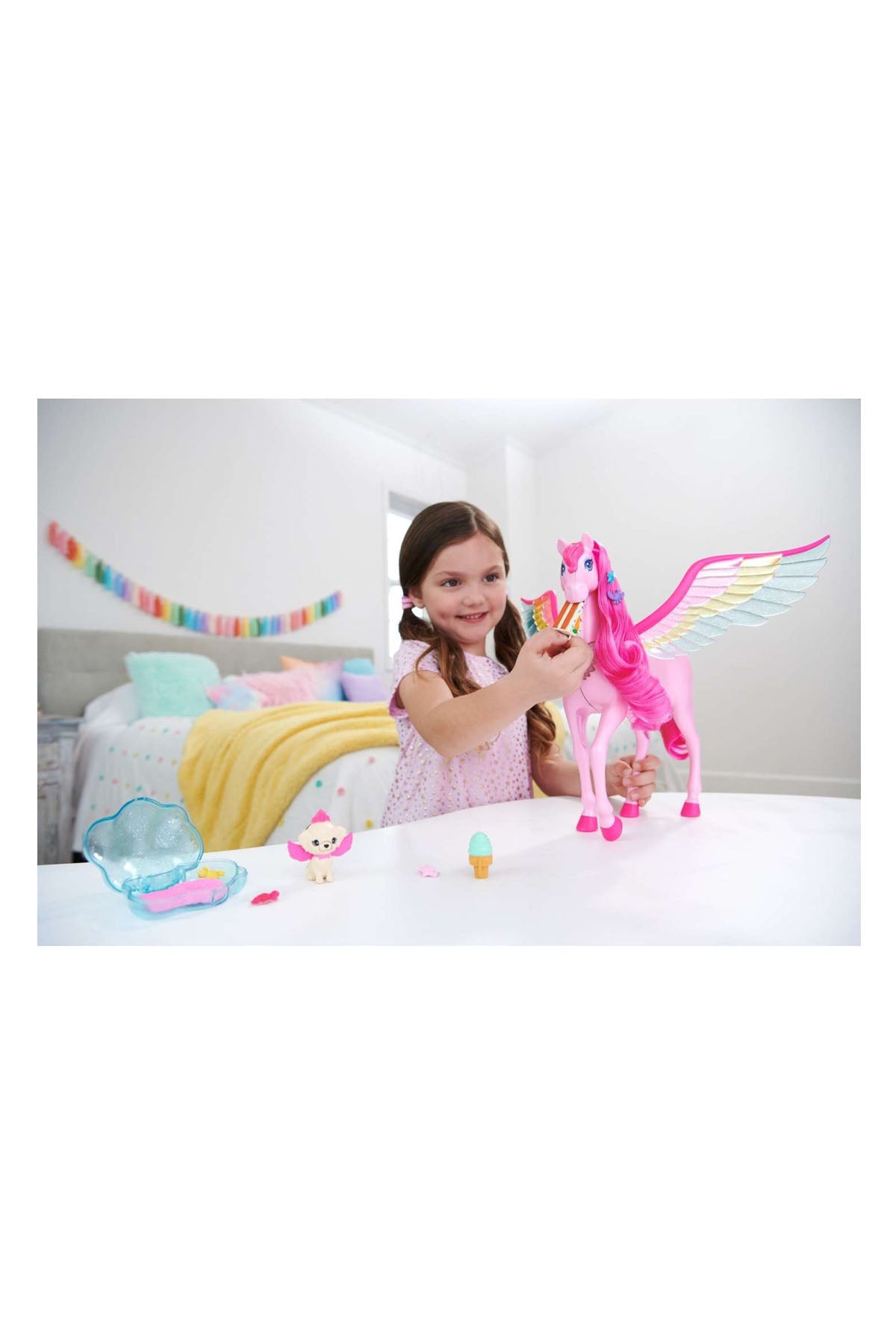 Bu büyüleyici pembe pegasus, ışık ve ses özellikleriyle Barbie A Touch of Magic maceralarını canlandırıyor! Gökkuşağı kanatları, sihirli efektleri ve eğlenceli aksesuarlarıyla çocukları fantastik dünyalara davet ediyor.
