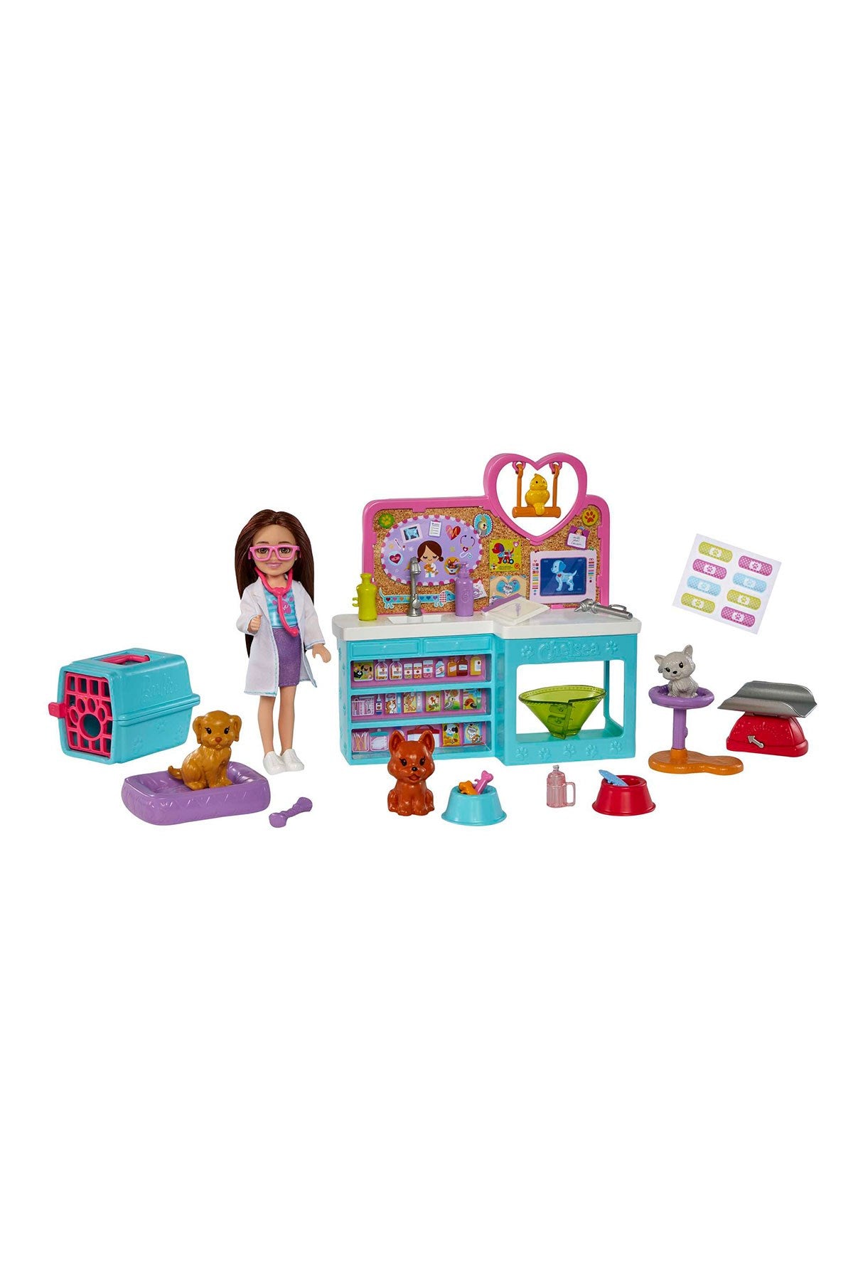 Barbie Chelsea Bebek ile çocuklar veterinerliğin nasıl bir meslek olduğunu öğreniyorlar! Şirin elbisesi ve beyaz önlüğüyle Chelsea güne başlamaya hazır! Steteskobuyla veteriner masasındaki hasta dostlarını muayene edebilir ve hareketli tartıda kilolarını ölçebilir. Çocuklar mini figürlü oyun setleri ile kendi maceralarını yaratmayı çok sevecek.