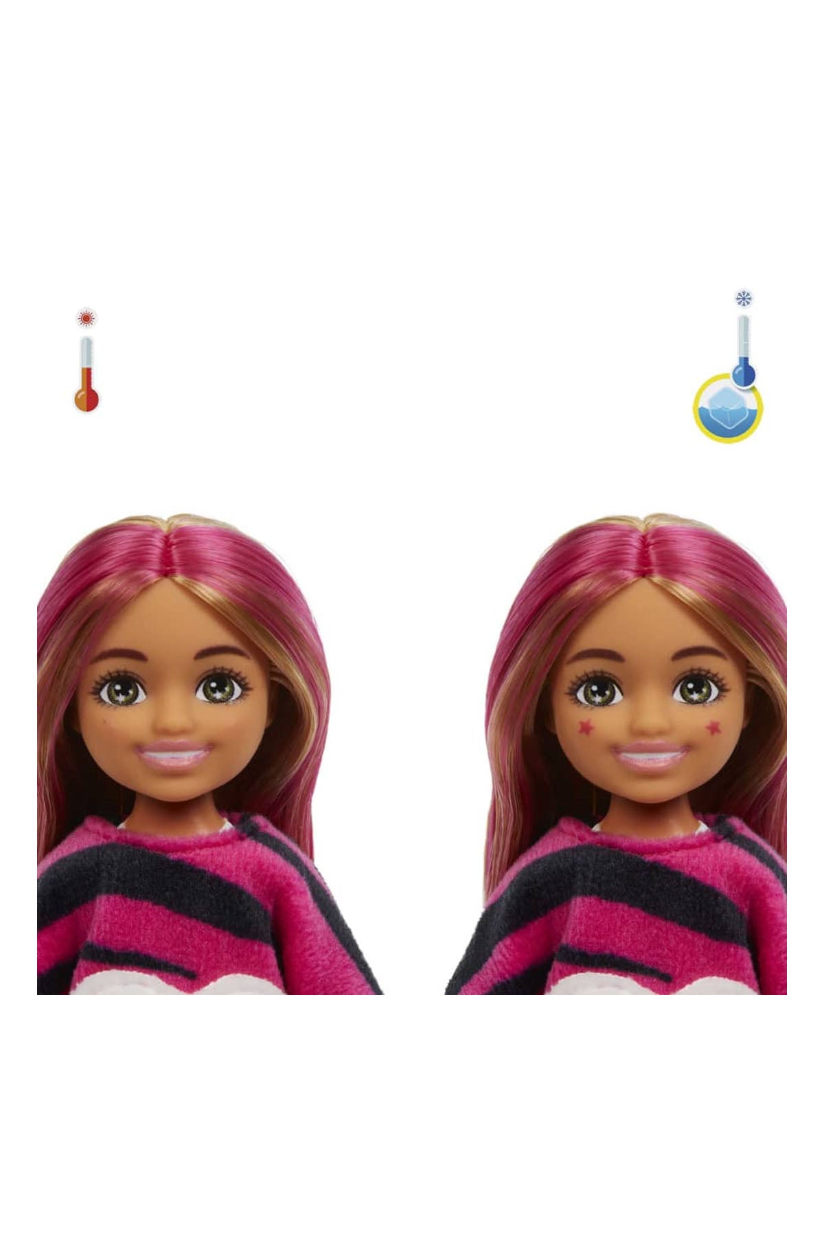 Barbie Cutie Reveal Orman Serisi Chelsea bebekler, yedi sürprizle en şirin kutu açma deneyimini sunuyor! Barbie Cutie Reveal Orman Serisi bebekler, 10 sürprizle en şirin kutu açma deneyimini sunuyor! Büyüleyici bir Fili, sevimli Kaplanı, parlak Toucan'ı veya arsız Maymun'u keşfedin, ardından pelüş kostümü çıkarın ve uzun, renkli saçlı, hareketli bir Barbie® bebeği ortaya çıkarın. Hangi bebeği ortaya çıkaracaksın? Her Barbie bebek, yüzünde Cutie görünümüne katkıda bulunan parıldayan parlak şekillerle gelir. Güneş gözlüğü, etek veya şort ve bebeğin kostümüne uyan mini bir evcil hayvan gibi açılacak daha fazla sürprizle çılgına dönün. Polar bir ceket için pelüş üst kısmı ters çevirin ve bir evcil hayvan yatağı için başınızı çevirin. Buz gibi soğuk su, oyuncak bebek ve mini evcil hayvan üzerindeki renk değiştiren dönüşümlerle daha da sevimlilik katıyor; ılık su, tekrar eğlence için onları eski haline getirir!