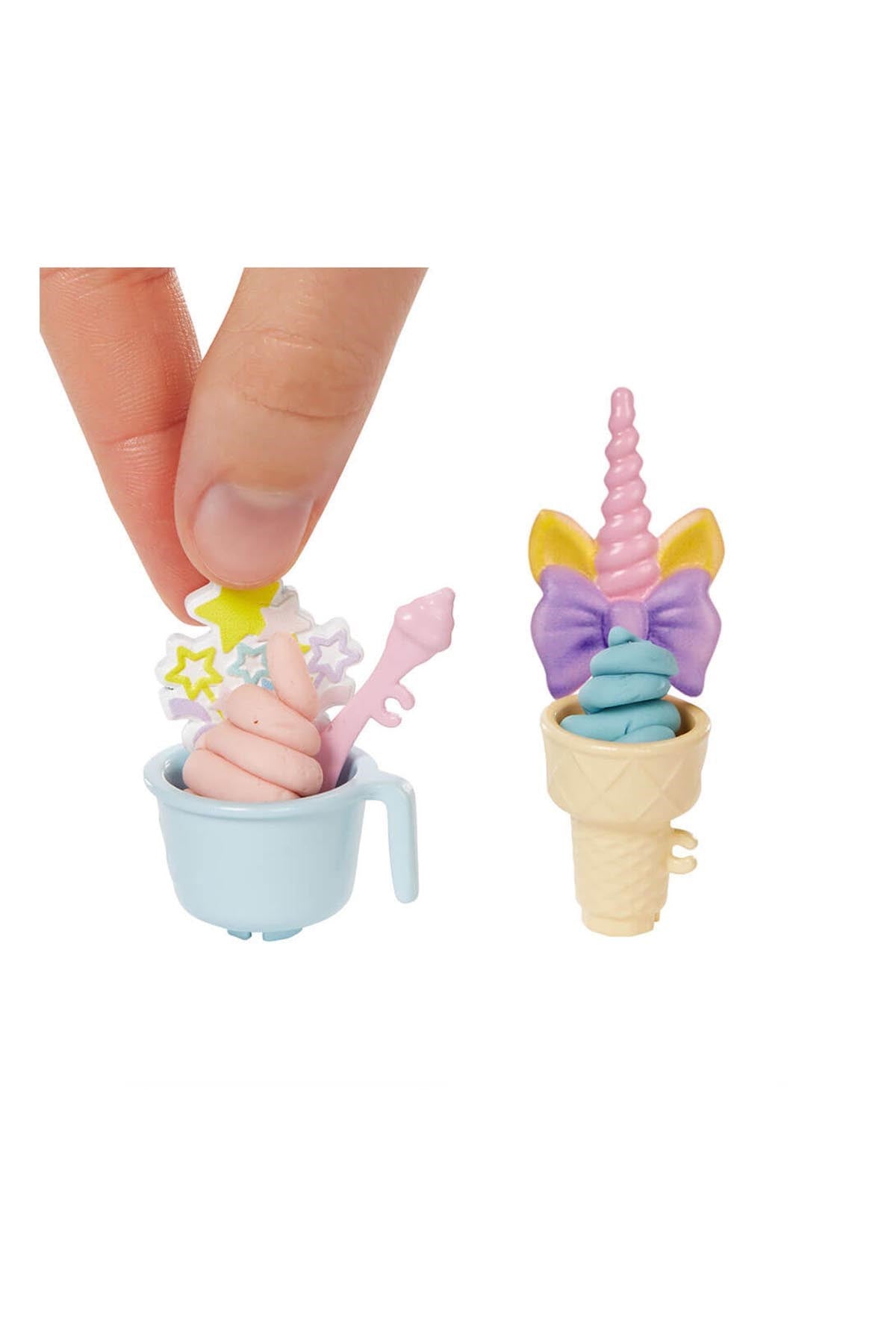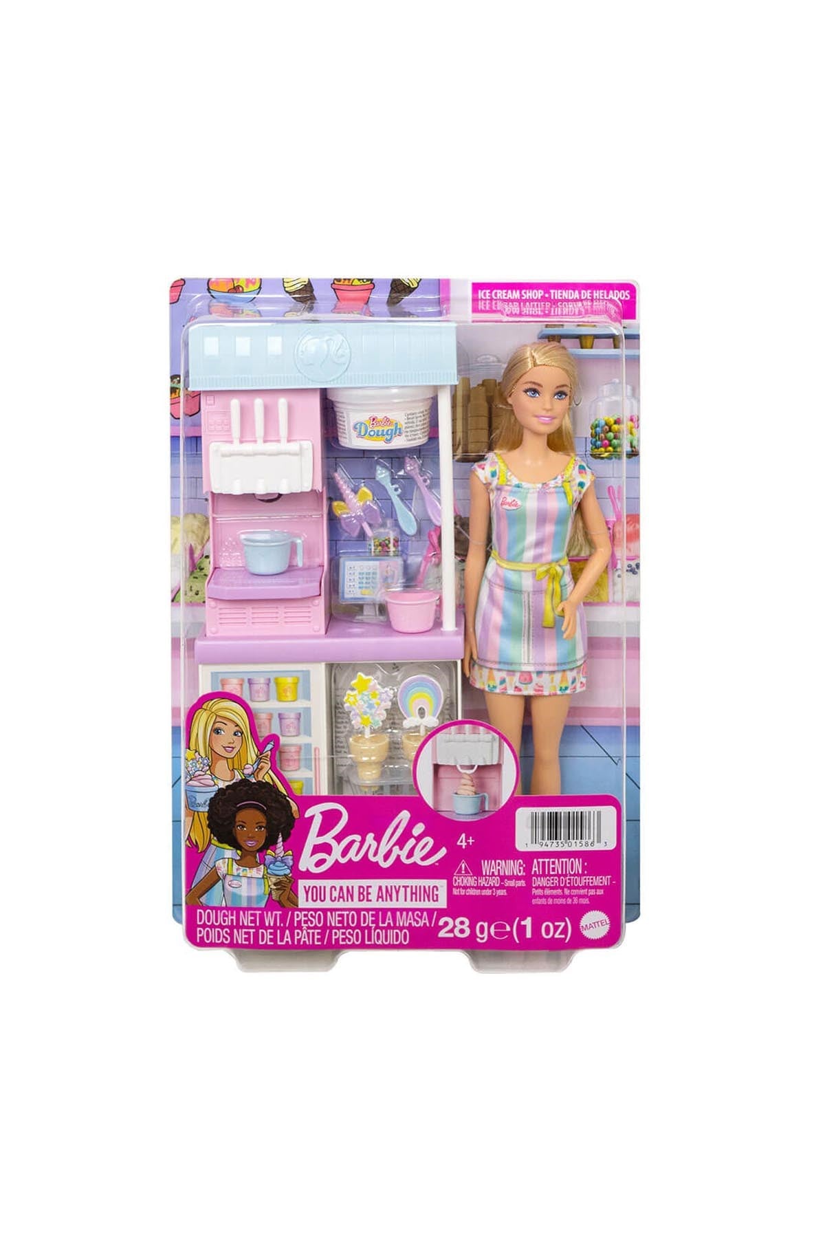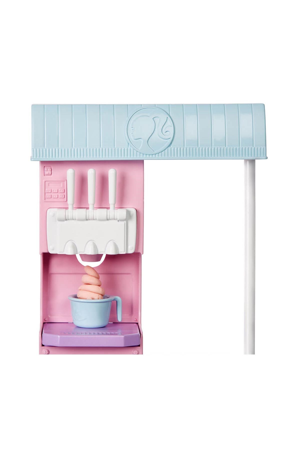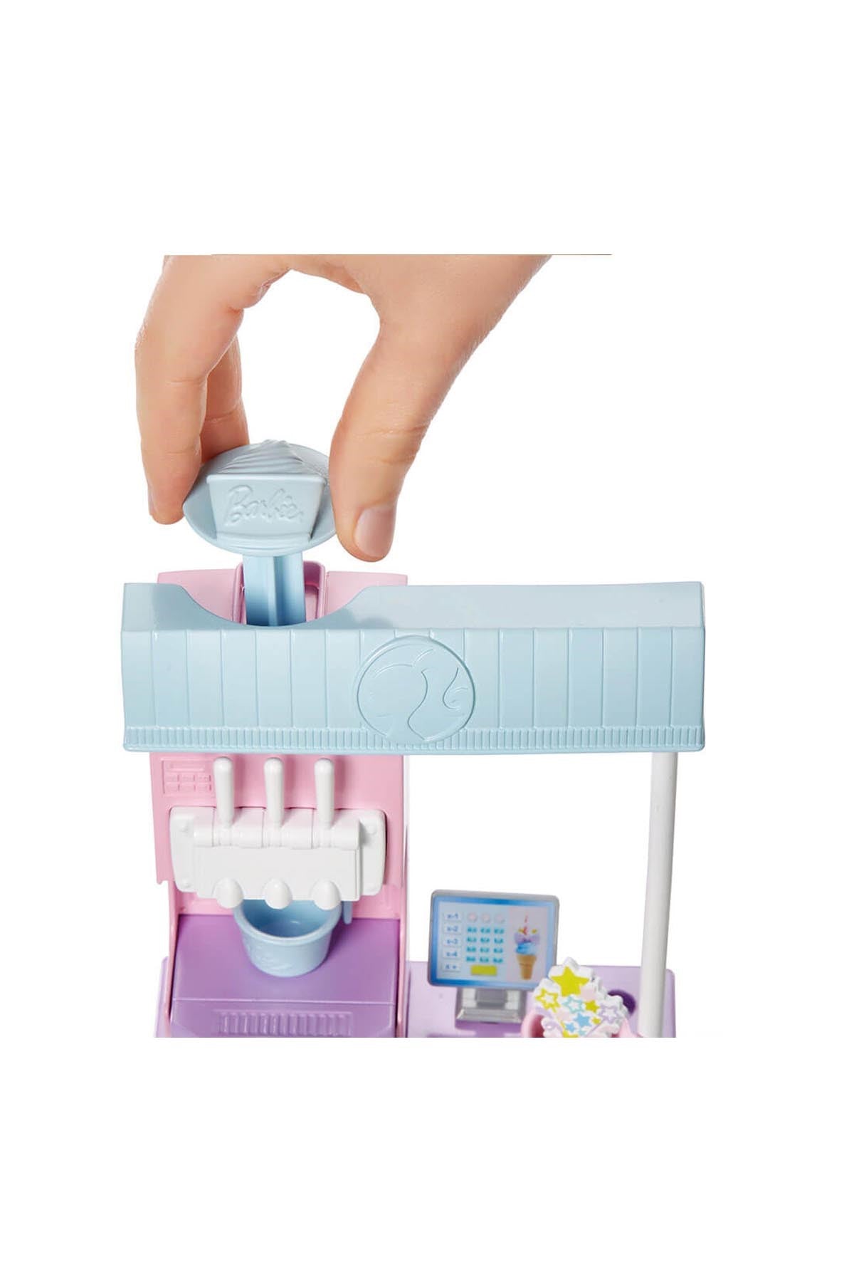 Barbie Dondurma Dükkanı Oyun Seti ile usta bir dondurmacı olmanın inceliklerini keşfetmeye hazır mısınız? Dondurmaya bayılan çocuklar bu oyun setiyle hayallerindeki dondurma mekanını işletip hazırladıkları lezzetli dondurmaları külahlara doldurabilir. Çocuklar, pembe ve mavi renkli iki çeşit oyun hamurunu dondurma makinesine yerleştirdikten sonra kolu çekip gerçeğe uygun dondurmaların döne döne külaha dolmasını izlerken eğlence dolu saatler geçirecek. Dondurmaları isterlerse kaselere isterlerse külaha doldurabilir, üstlerini süsleyip şahane görünen ikramlıklar hazırlayabilirler. Ardından kasayı açıp siparişi işleyebilirler.
