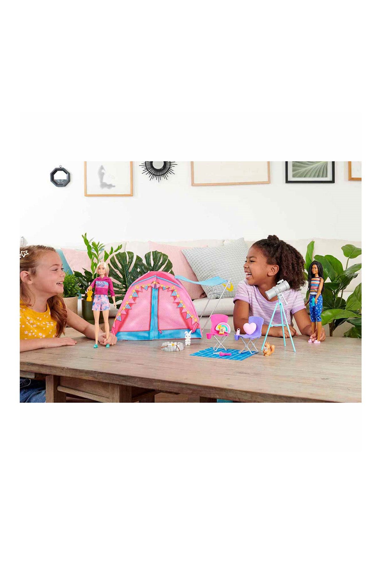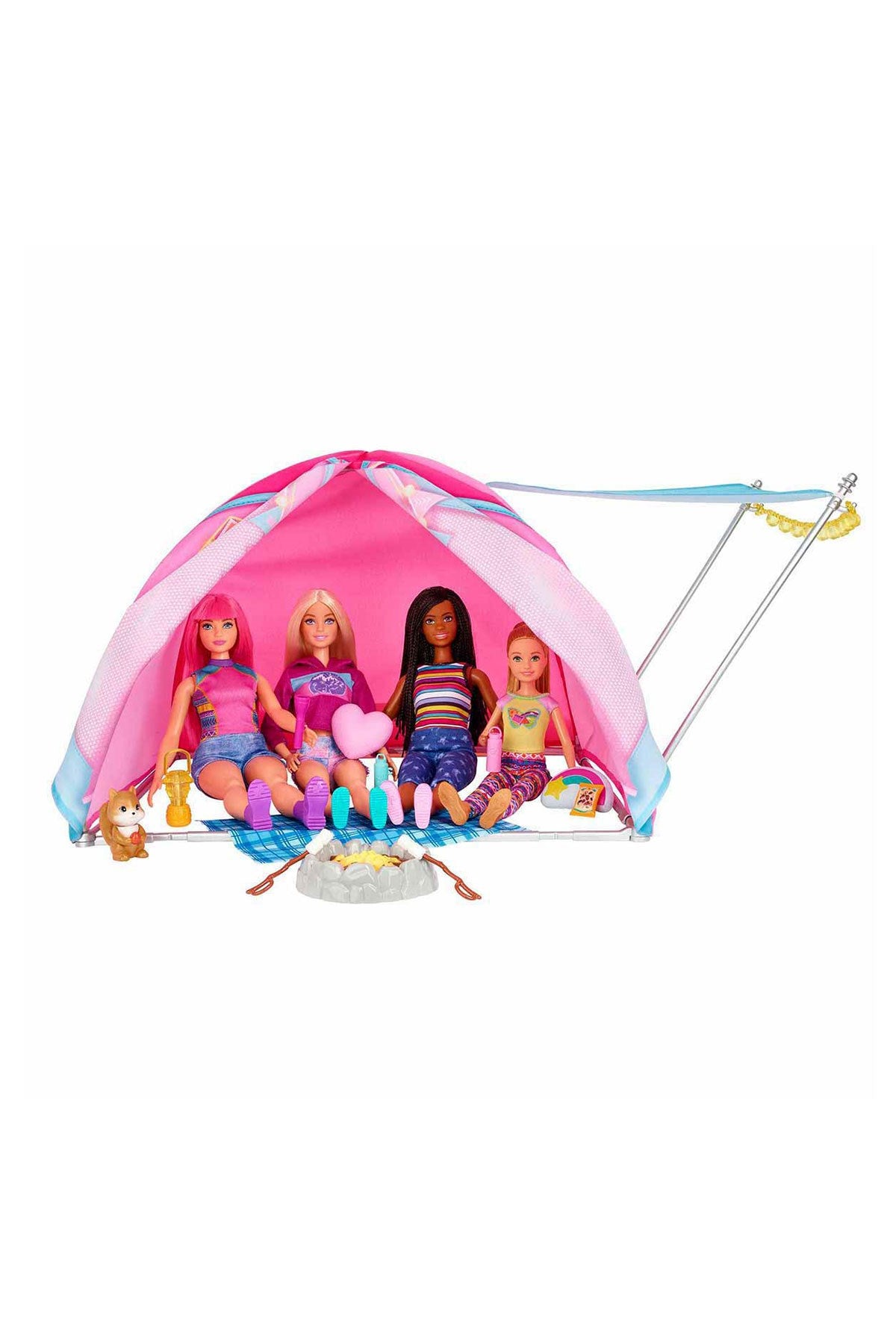Barbie It Takes Two Kampta Oyun Seti, açık hava maceralarını seven çocuklar için harika bir deneyim sunuyor! Büyük kamp çadırı, teleskop, ateş çukuru ve etkileşimli hayvan figürleriyle yıldızların altında kamp yapmaya hazır olun.
