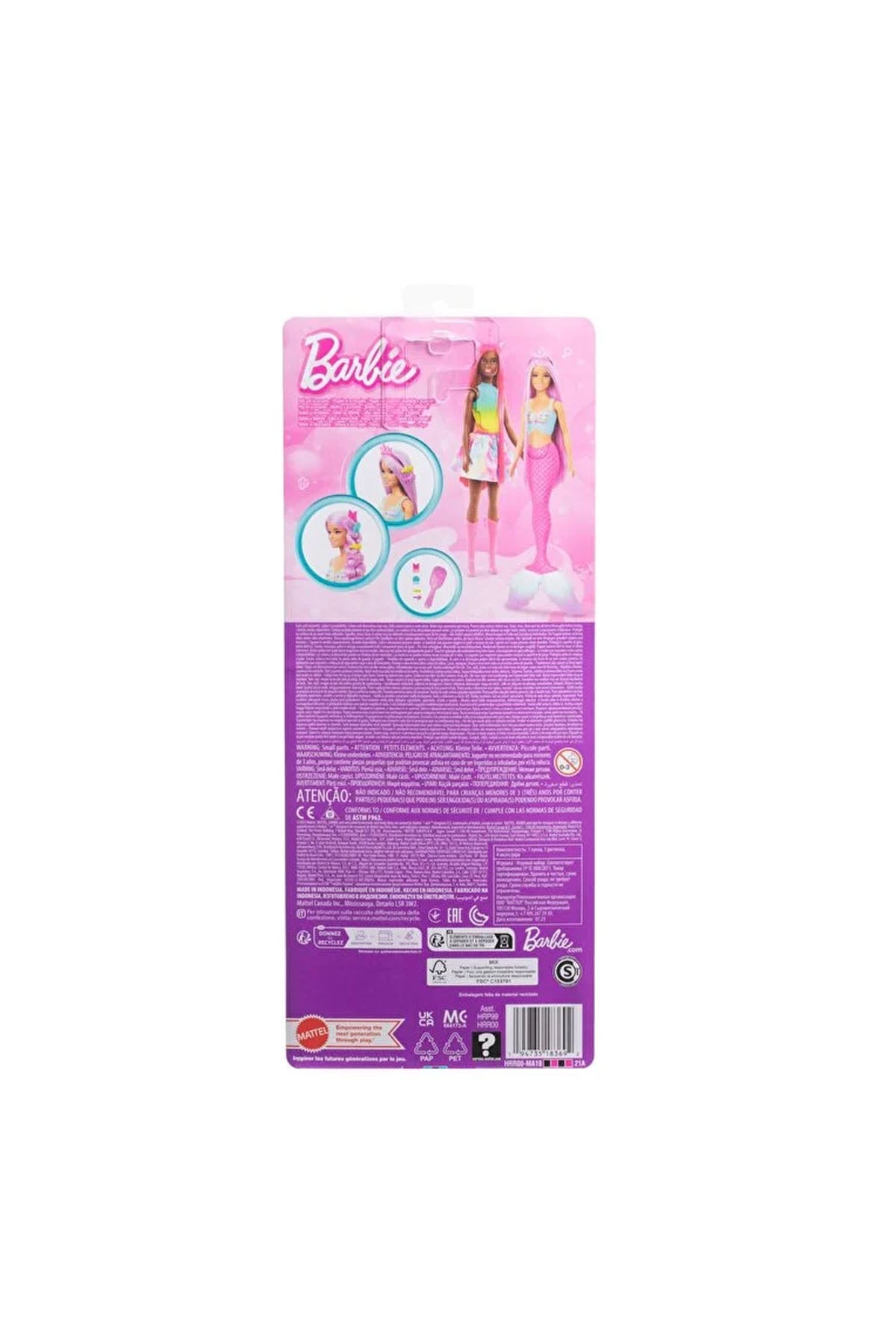 Barbie Uzun Saçlı Muhteşem Deniz Kızı pembe renkli upuzun saçlarıyla göz dolduruyor. Çocuklar, deniz kızının saçlarını tarayıp pakete dahil olan aksesuarlarla şekillendirebilir ve bu eğlenceli oyunu diledikleri kadar tekrarlayabilir. Okyanus temalı taç ve büstiyer gibi çekici detaylar, deniz kızı Barbie'nin büyüleyici görünümüne zarafet katar. 3 yaş ve üzeri çocuklar, bu bebeği giydirirken hem oyun keyfi yaşayacak hem de yaratıcı güçleri harekete geçecek! Prensesler, deniz kızları, tek boynuzlu atlar ve masallar diyarından diğer Barbie bebekler, çocuklar için adeta sihirli bir hediyedir.