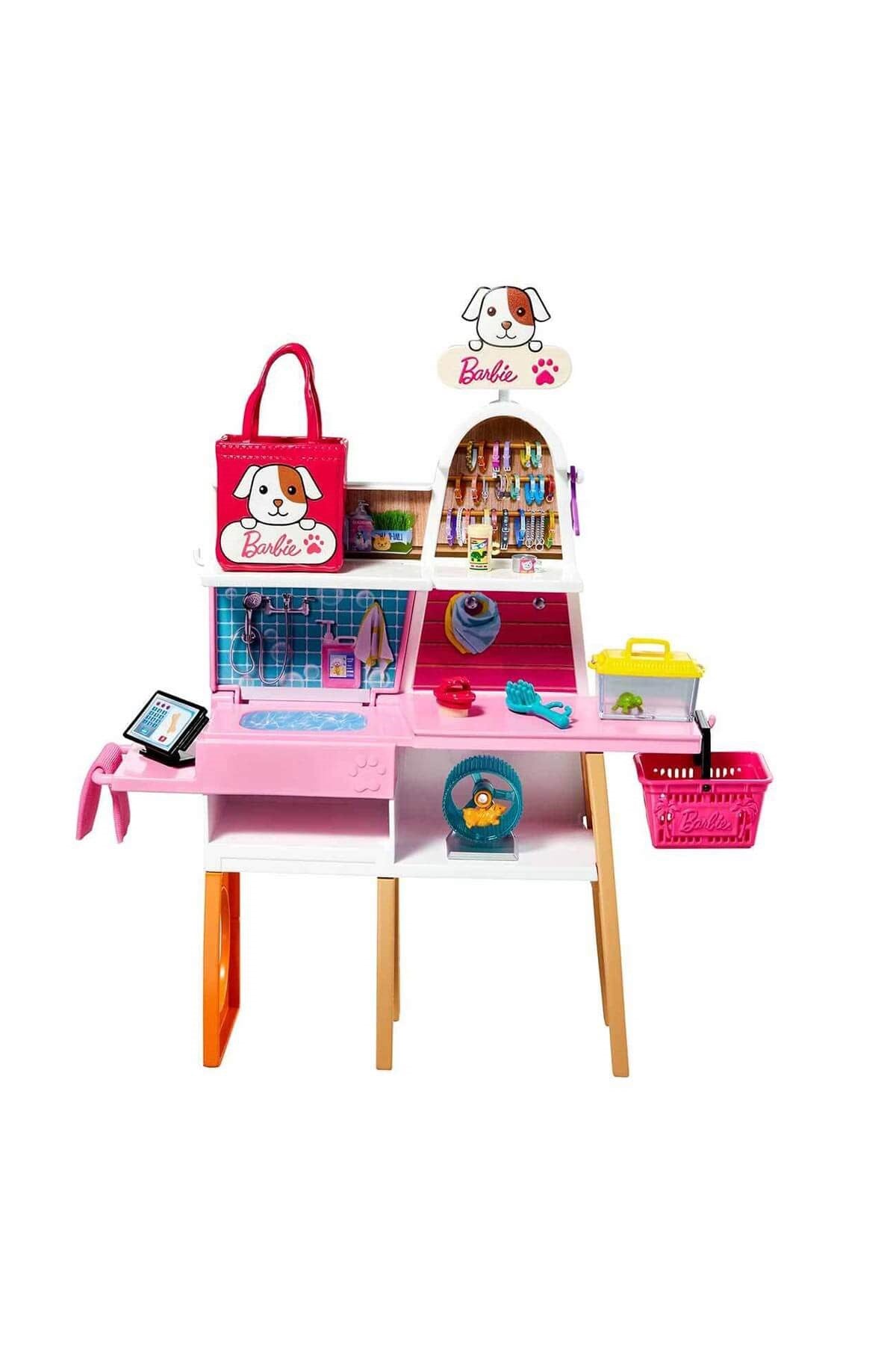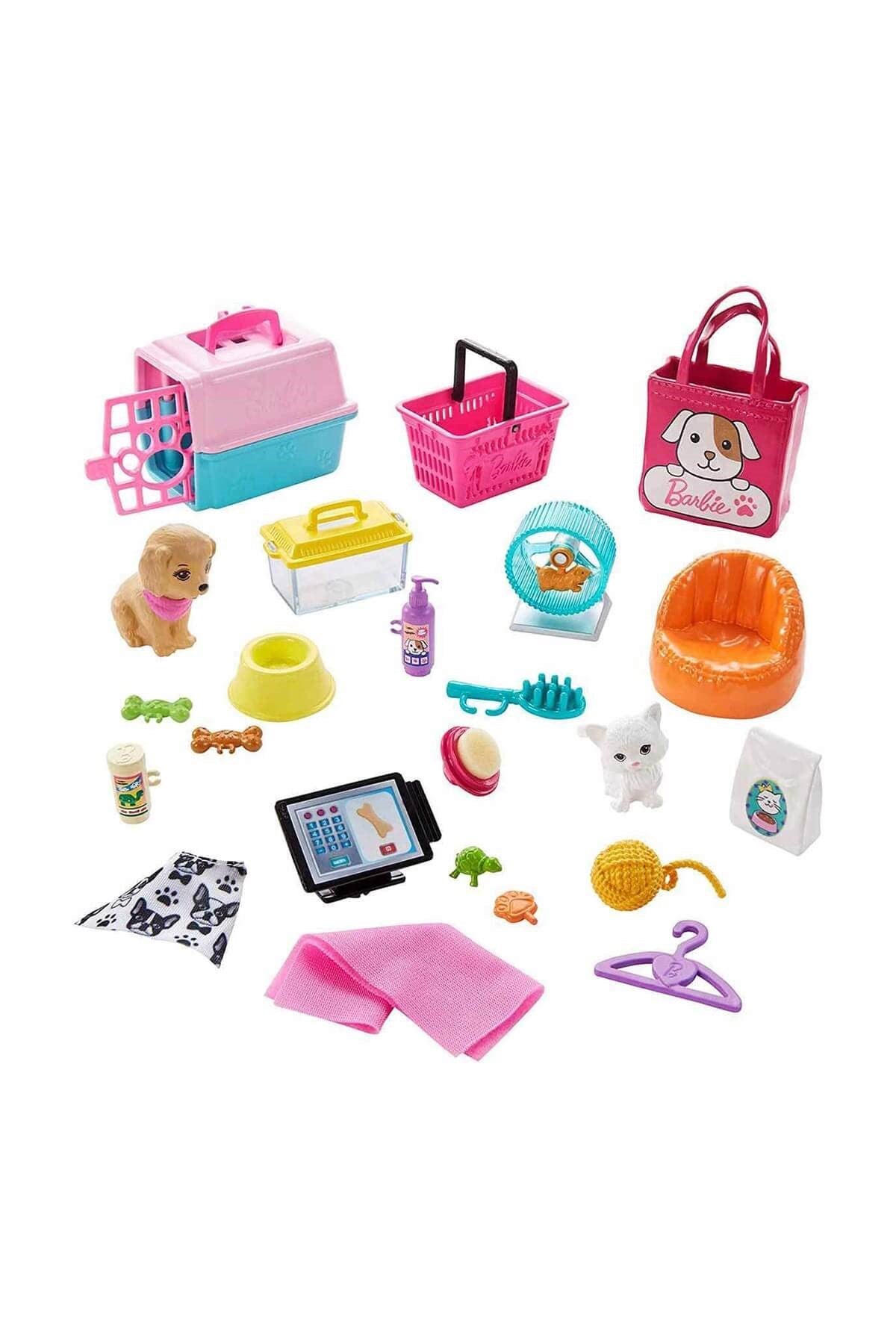Bebek ve Evcil Hayvan Dükkanı Oyun Setine hoş geldiniz! Bu sette kızlar Barbie'nin hayvan dostlarına bakım yapmak için ihtiyaç duyduğu her şeyi bulacak. Barbie'nin renkli dünyası ile tanış! Bu harika tasarım bebekler ve aksesuarları ile yeni hikayeler yaz. Arkadaşlarınla harika maceralara hazır mısın? Bakım istasyonu, ödeme alanı, raf ünitesi ve 20’den fazla oyuncak parçasıyla bu oyun seti, hayvan bakım oyunlarına ve dostluk hikayelerine ilham verir. Barbie Bebek köpeğine bakım yapacak! Yardım etmek için tezgahı çevirin. Bir bakım istasyonu açılacak. Küvete soğuk su doldurun ve köpeği içine yerleştirin. Çamurlu noktalar belirecek! Sete dahil olan süngeri ılık suya daldırarak temizlenmesine yardım edin. Çamur lekeleri yok olacak! Temizlik bittikten sonra, Barbie Bebek yiyecek ve oyuncak alışverişi yapabilir veya yeni bir hayvan arkadaş sahiplenebilir. Oyun seti saniyeler içinde dönüştürülebilir. Tezgahı çevirdiğinizde bebeğin köpeğine bakım yapabileceği bir küvet açılır.