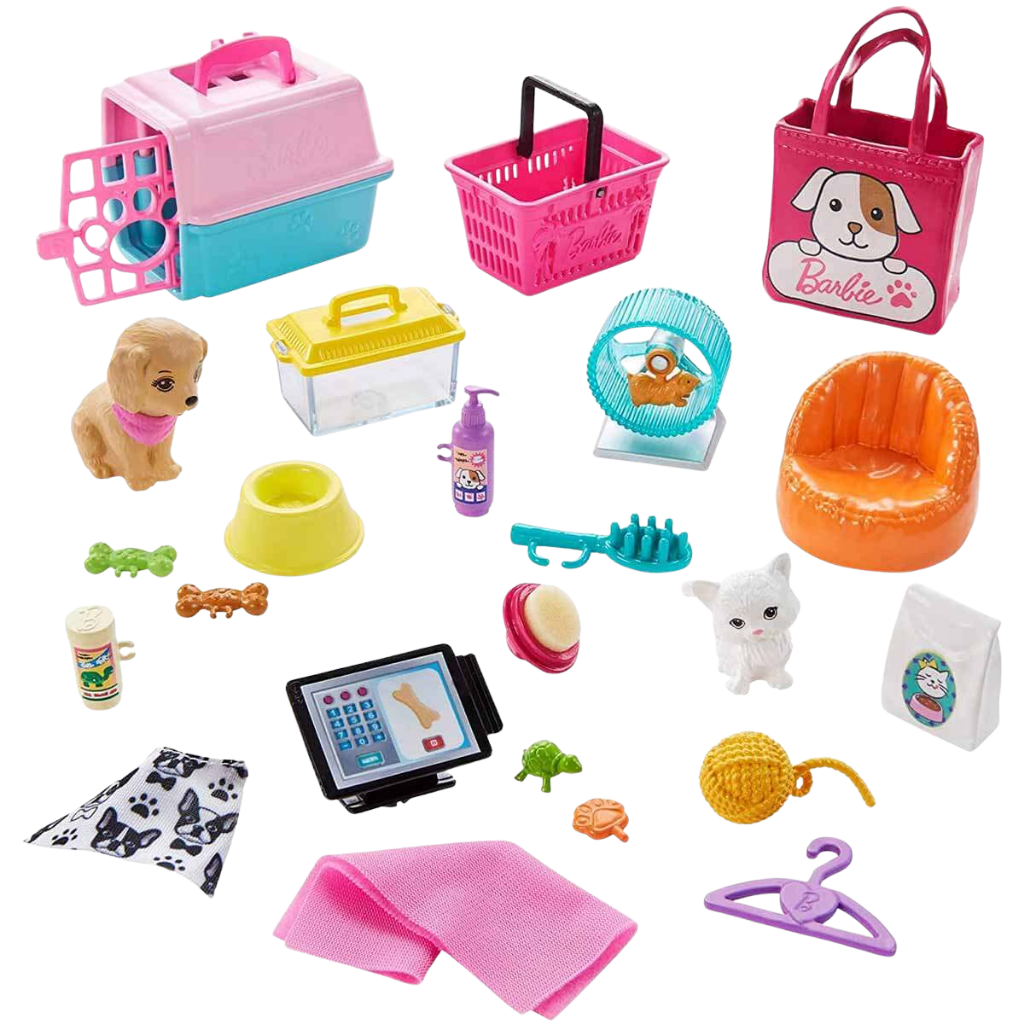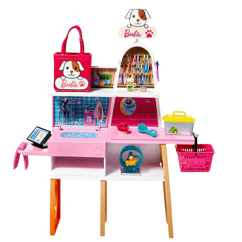 Barbie ve Evcil Hayvan Dükkanı Oyun Seti, hayvan sevgisini oyunla birleştiren zengin içeriğiyle çocuklara eğlenceli ve öğretici bir deneyim sunar. Hikâye anlatımını destekleyen bu oyun seti, Barbie’nin sevimli evcil hayvanlarıyla ilgilenmesini konu alır ve çocukların hayal gücünü aktif şekilde kullanmasına olanak tanır. Set içerisinde yer alan bakım istasyonu, ödeme alanı ve raf ünitesi sayesinde çocuklar gerçek bir evcil hayvan dükkanı deneyimi yaşar. Tezgah çevrildiğinde açılan bakım alanı, köpek için özel olarak tasarlanmış küveti ortaya çıkarır. Ilık suyla kullanılan sünger sayesinde köpeğin üzerindeki çamur lekeleri kaybolur ve bu renk değiştiren özellik defalarca tekrar edilebilir. Barbie Bebek, yalnızca köpeğiyle değil; kedi, hamster ve kaplumbağa gibi farklı evcil hayvanlarla da ilgilenebilir. Alışveriş, bakım ve sahiplenme senaryoları sayesinde çocuklar dostluk, sorumluluk ve hayvan bakımı temalı hikâyeler oluşturur. Çok sayıda aksesuar, oyunun her seferinde farklı bir şekilde kurgulanmasını sağlar. Hayvanları seven çocuklar için tasarlanan Barbie ve Evcil Hayvan Dükkanı Oyun Seti, özellikle 3 yaş ve üzeri çocuklar için uzun süreli ve yaratıcı oyun deneyimi sunan ideal bir hediyedir.