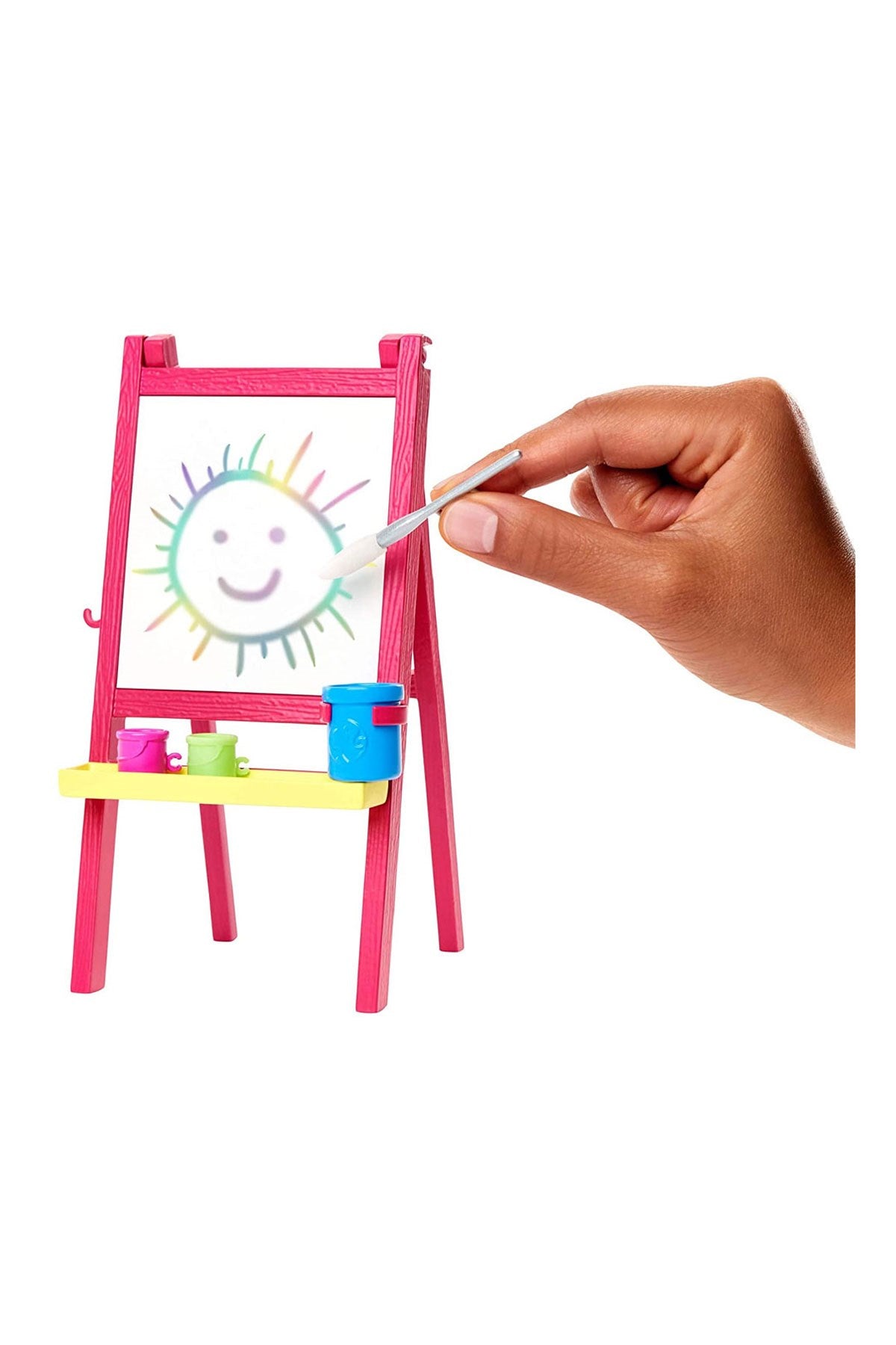 Barbie Resim Öğretmeni bebeği, onun sevimli yürümeye başlayan öğrenci bebeği ve öğrenme ve yaratıcı ifade için oyuncak sanat eserleri ile sanat sınıfı ortamı içerir. Barbie Resim Öğretmeni, sevimli öğrencisine şövale üzerinde nasıl resim yapacağını eğlenceli bir renk değiştirme sürpriziyle gösterir: fırçayı suya daldırın ve boş yüzeyin üzerine boyayın ve resim sihirli bir şekilde görünsün. Yüzeyi silerek tekrar tekrar oluşturun. Kız oyuncakları Barbie ve meslekleri oyun setleri çocukların hayalini kurdukları meslekleri öğrenip eğlenceli şekilde tanıyabilmelerini sağlar, hayal güçlerinin ve yaratıcılıklarının gelişmesine yardımcı olmaktadır. Hayalinizde olan veya merak ettiğiniz mesleklerden birini seçin ve Barbie ile meslekleri keşfedin.