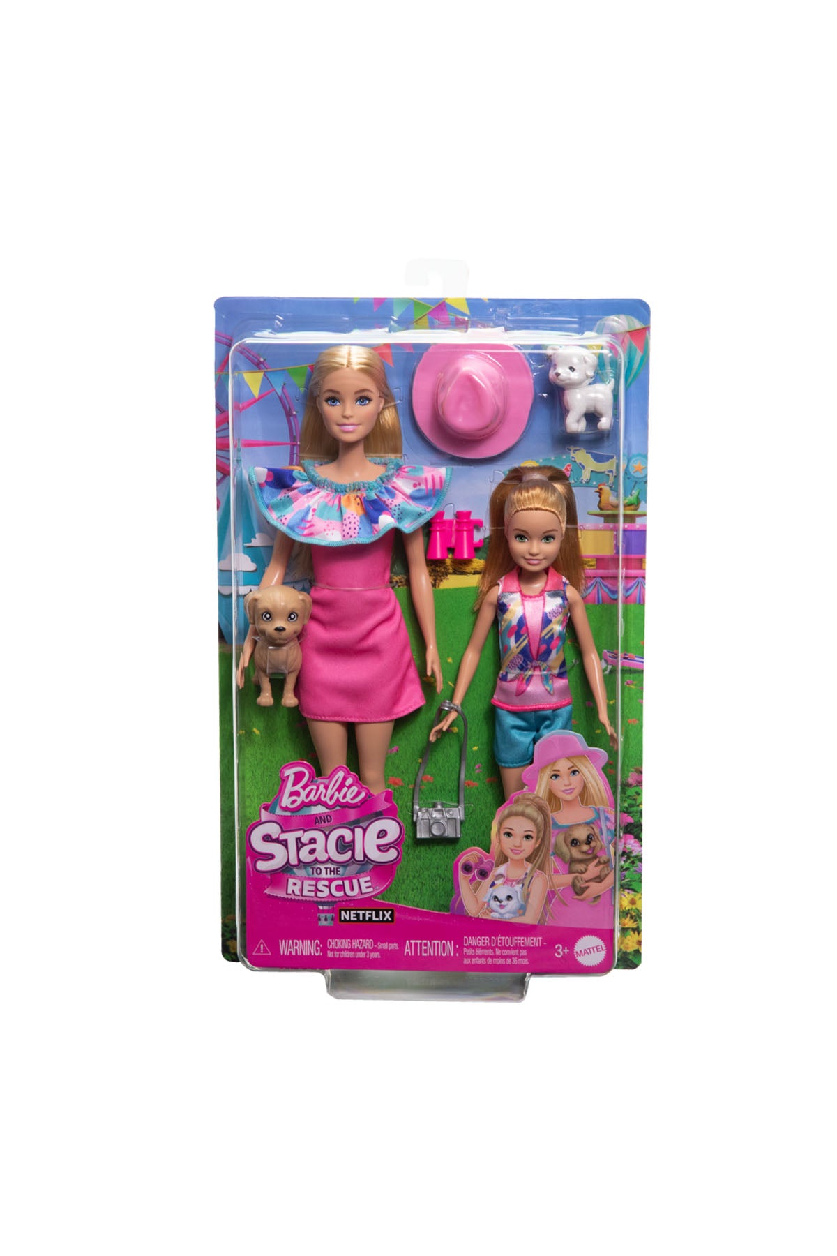 Barbie ve Stacie yaz maceralarına atılıyor! Barbie, Kurtarma Görevinde filmindeki gibi omuzları açık ve yakası fırfırlı bir elbise giyerken, küçük kız kardeşi Stacie parlak bir üst ve şort giymiş. Fotoğraf makinesi, dürbün, hasır şapka ve iki köpekçik ile bu macerada kız kardeşlere eşlik edebilir. Çocuklar, keşif tutkularını canlandırarak eğlenceli oyunlar oynayabilirler.