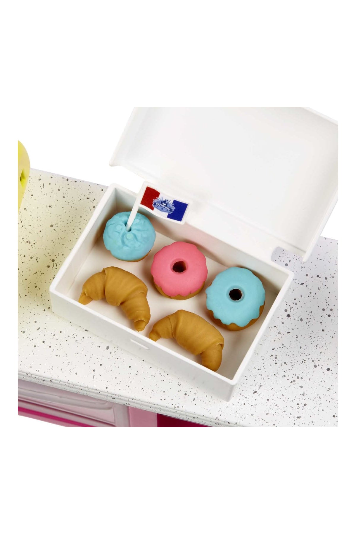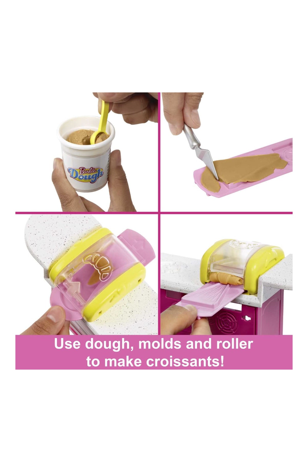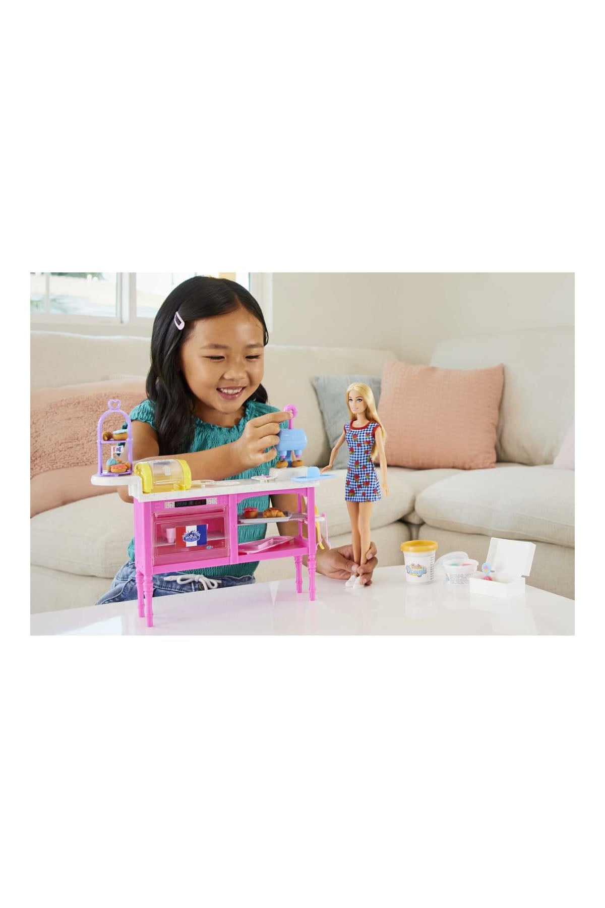 Çocuklar, Barbie 'Malibu' Roberts bebeği ve ikonik kafe sahnelerinden ilham alan It Takes Two oyun setiyle fırıncılık hikayeleri canlandırabilir. Üç farklı renkte hamur, kalıp ve mutfak gereçleri ile kruvasan, kek ve donut gibi lezzetli hamur işlerini yapmak ve servis etmek çok kolay. Genç fırıncılar, ikramlarını süsleyip sergileyebilir, ardından sahneleri yeniden yaratmak veya yeni maceralar hayal etmek için onları kutulayabilir.