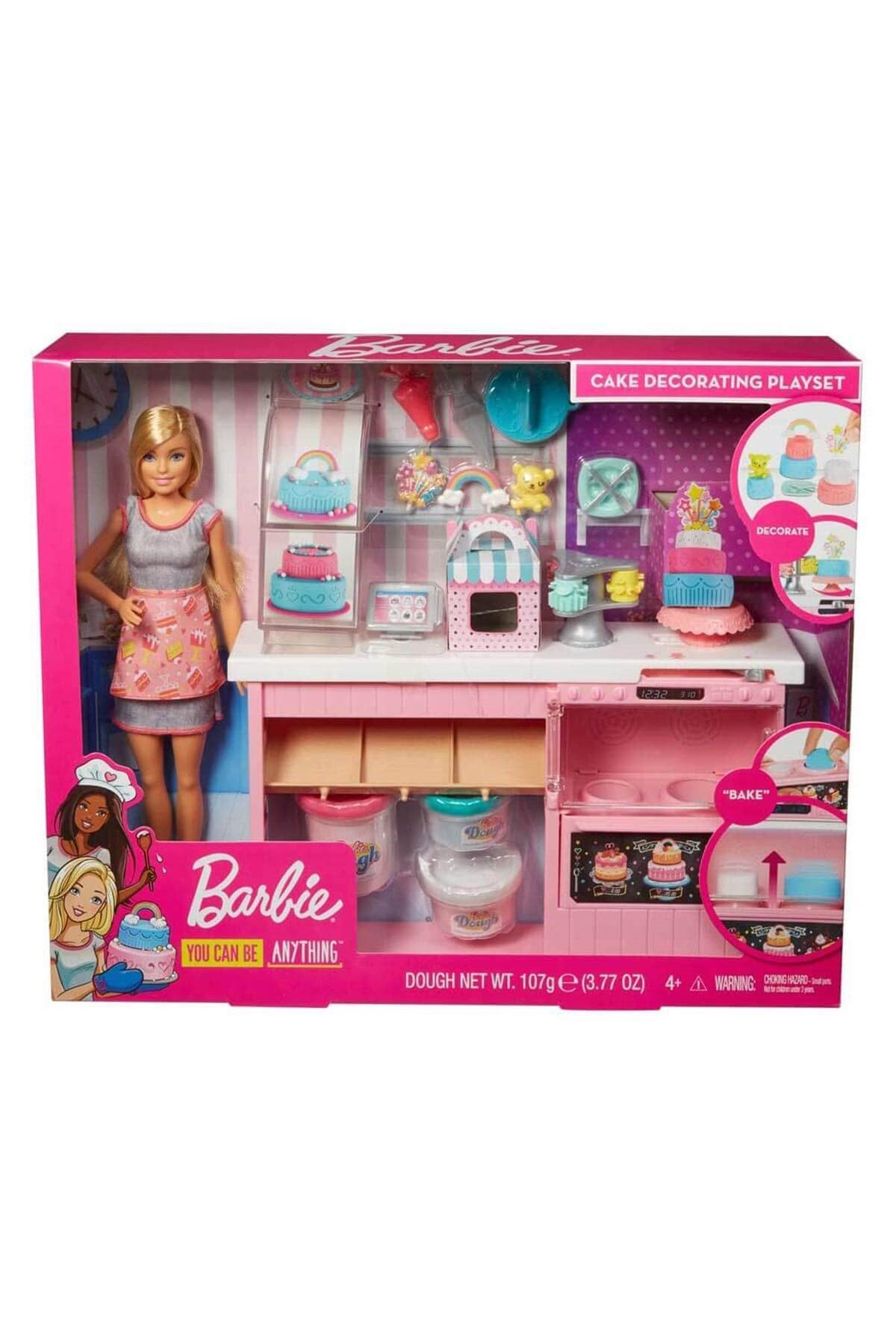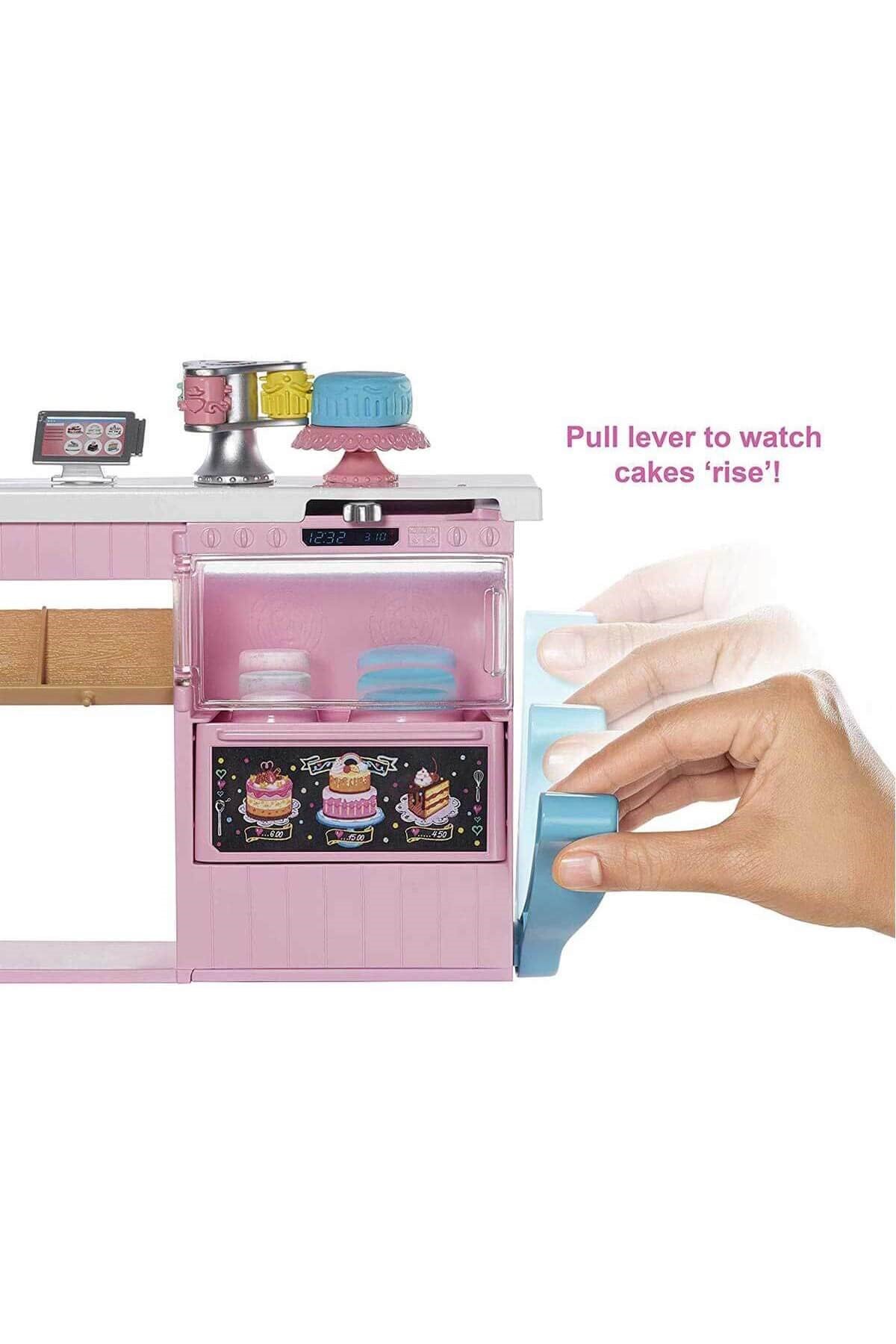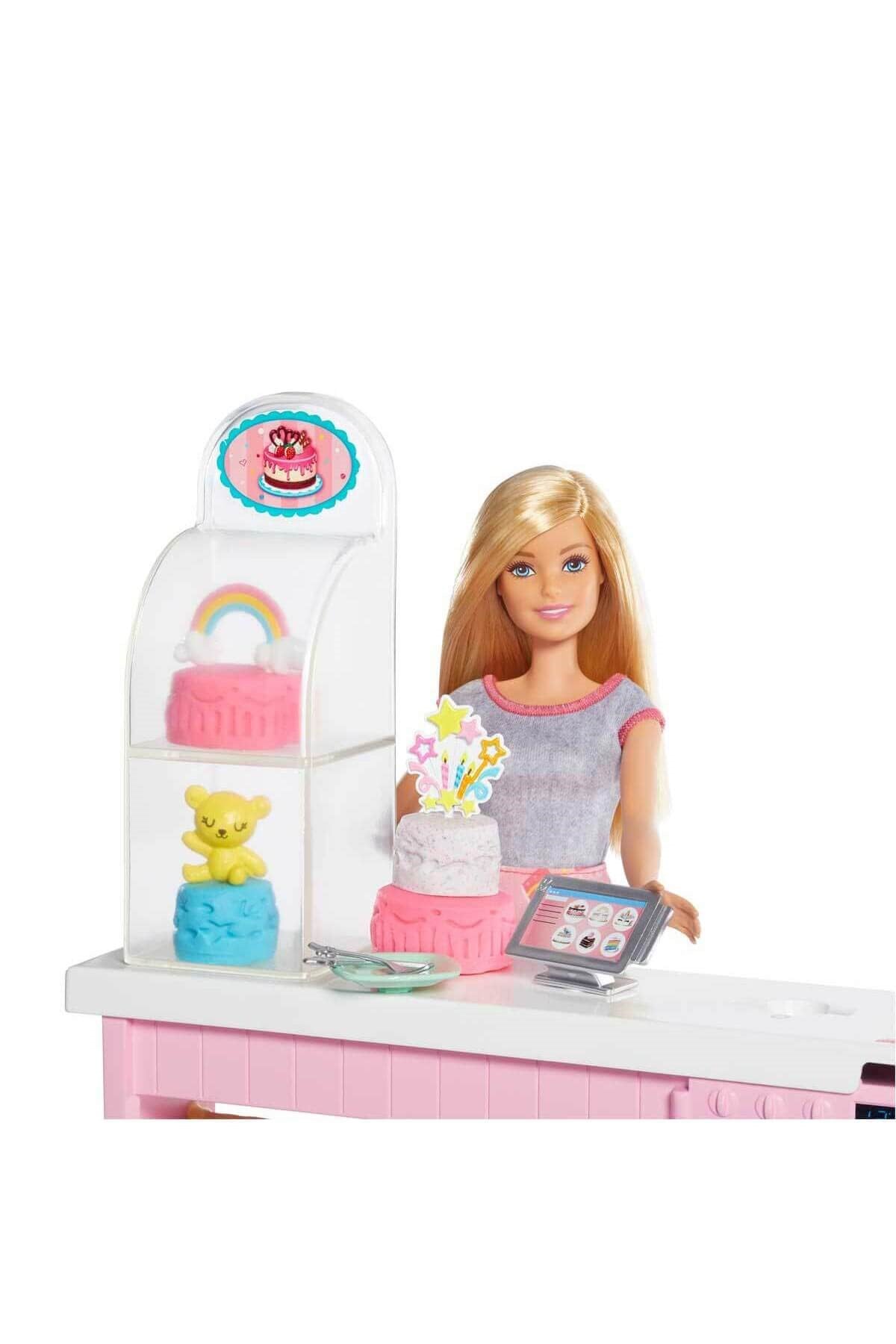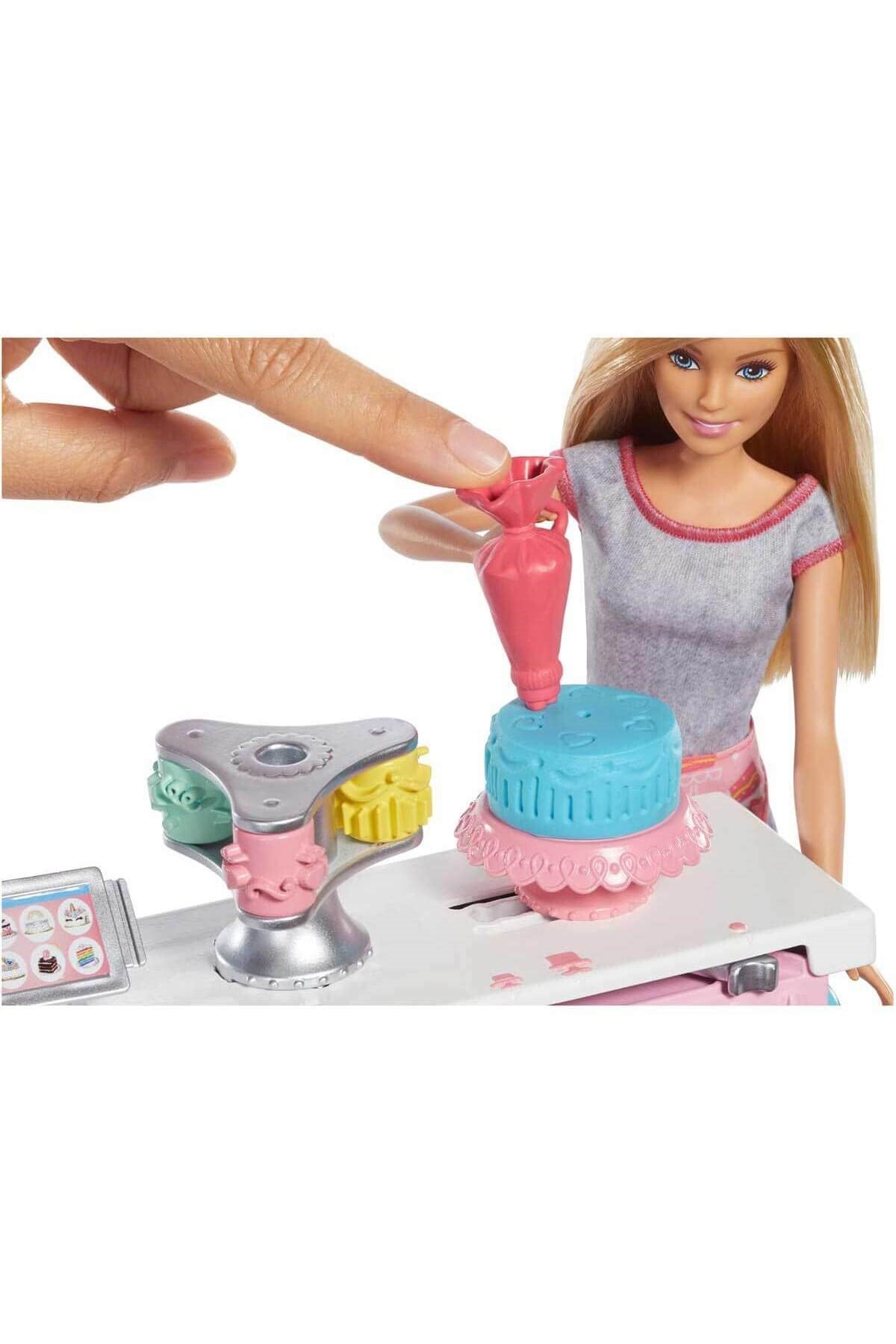 Barbie pastacı bebekle birlikte gelen şirin mi şirin oyun setiyle kızlar Barbie hamurlarını ve çalışan eğlenceli parçaları kullanarak kendi pastalarını yapabilir, süsleyebilir ve sergileyebilir! Mutfak tezgahında kızların pasta yapabileceği, süsleyebileceği ve sergileyebileceği üç oyun alanının yanı sıra sete dahil olan 10 parçayı yerleştirecek alanlar bulunur. Minik pastacılar Barbie pastacı bebekle birlikte fırında kabaran tek veya çift katlı pastalar yapabilir, döner pasta şablonlarıyla yanları süsleyebilir, üstünü benzersiz pasta malzemeleriyle kaplayabilir, pastayı kasada satabilir ve dilimleyip tabakta servis edebilir ya da paket yapabilir.