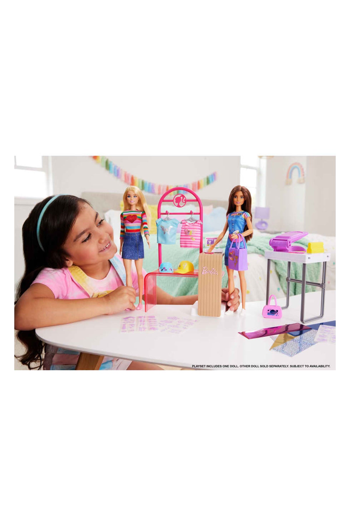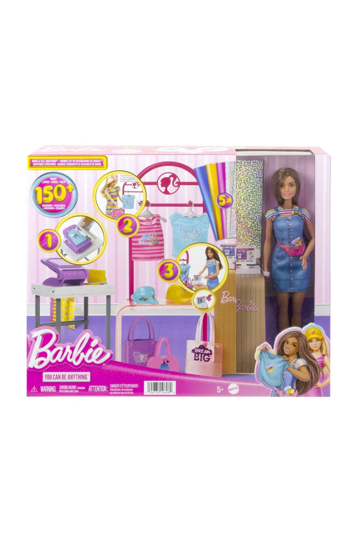 Barbie Tasarım Butiği Oyun Seti, çocukların kendi moda tasarımlarını yaratmalarına ve Barbie için benzersiz kıyafetler oluşturmalarına olanak tanıyor! Folyo serigrafi özelliğiyle 150’den fazla özgün tasarım yapmak mümkün.