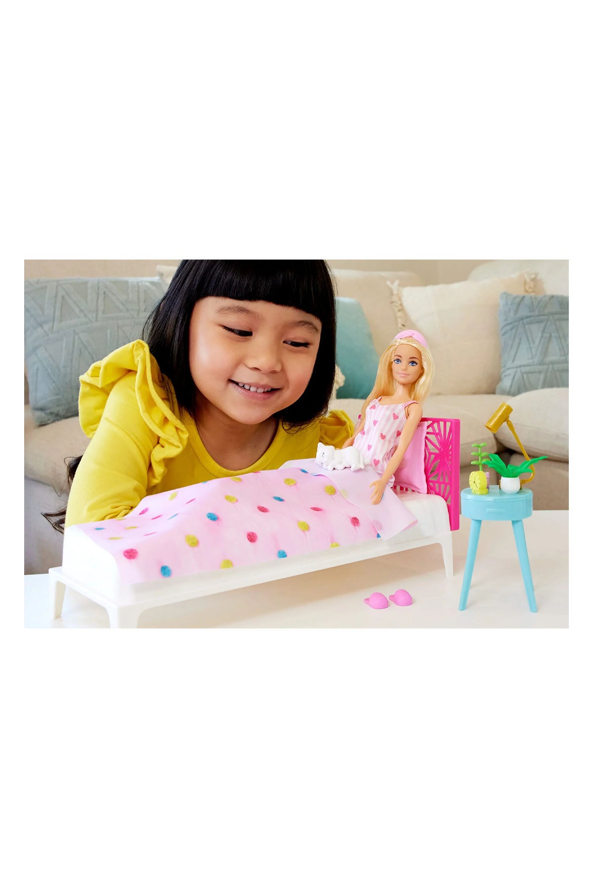 Barbie Yatak Odası Oyun Seti, rahat ve eğlenceli bir oyun deneyimi sunuyor! Yatak, makyaj masası, komodin ve tematik aksesuarlarla, sabah ve akşam rutinlerini canlandırarak hayal gücünü geliştirmeye yardımcı oluyor.