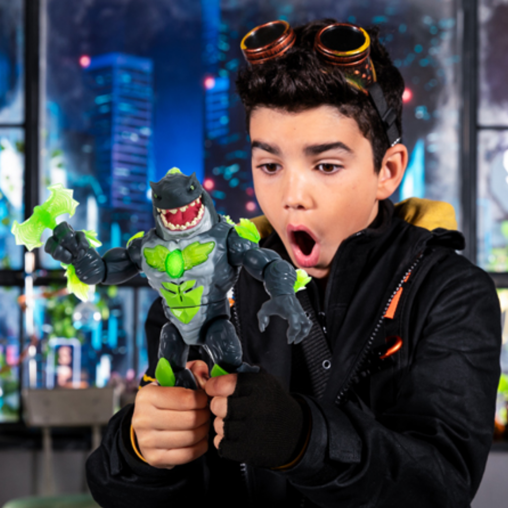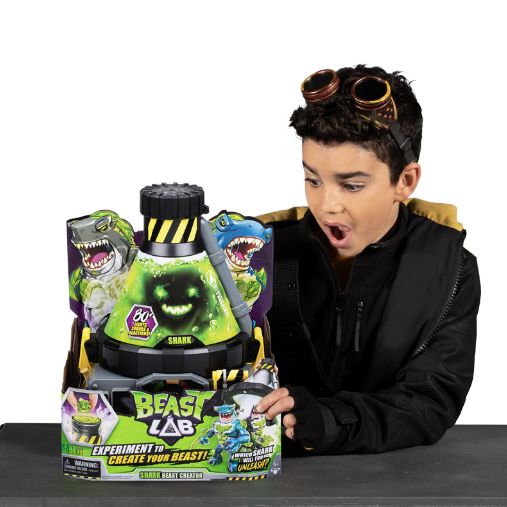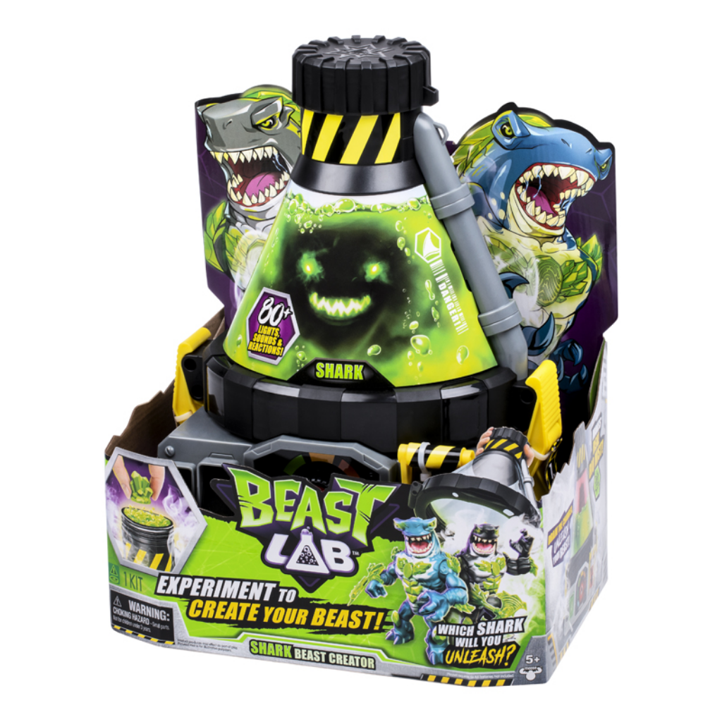Beast Lab Canavar Laboratuvarı Shark-11105, çocukları aksiyon ve deney dolu bir maceranın merkezine taşıyan elektronik ve interaktif bir oyun setidir. Gezegen büyük bir tehdit altındayken çocuklar, Canavar Laboratuvarı’nda deneyler yaparak iki farklı Köpekbalığı Canavar'ından birini ortaya çıkarmaya çalışır: Havoc Hammerhead veya Mayhem Megashark. Hangi canavarın ortaya çıkacağı tamamen sürprizdir ve her deney benzersiz bir heyecan sunar. Set içerisinde yer alan atak serumu, kükreme kayaları, fosil parçalayıcı, deri partikülleri, parmak izi okuyucu ve ısı ölçer gibi özel bileşenler sayesinde çocuklar tüm deney sürecini adım adım yönetir. Parmak izi okuyucuya dokunularak başlatılan deneyde, malzemelerin doğru sırayla ve ölçülerle eklenmesi büyük önem taşır. Final aşamasında kapışma kristali karışıma dahil edilir ve ısı artırıldığında laboratuvarın uyarı alarmları devreye girer. Acil durum kolu indirildiğinde ise yoğun sisler arasında kükreyen Köpekbalığı Canavarı ortaya çıkar. 80’den fazla ışık ve ses efektiyle zenginleştirilen Canavar Laboratuvarı, sıfırlanabilir yapısı sayesinde deneyin defalarca tekrarlanmasına imkan tanır. Yaklaşık 20 cm boyundaki elektronik figürler, 18 farklı eklem noktasıyla hareket kabiliyeti sunar. Oyun süreci boyunca çocukların dikkat, hayal gücü ve problem çözme becerileri desteklenir.