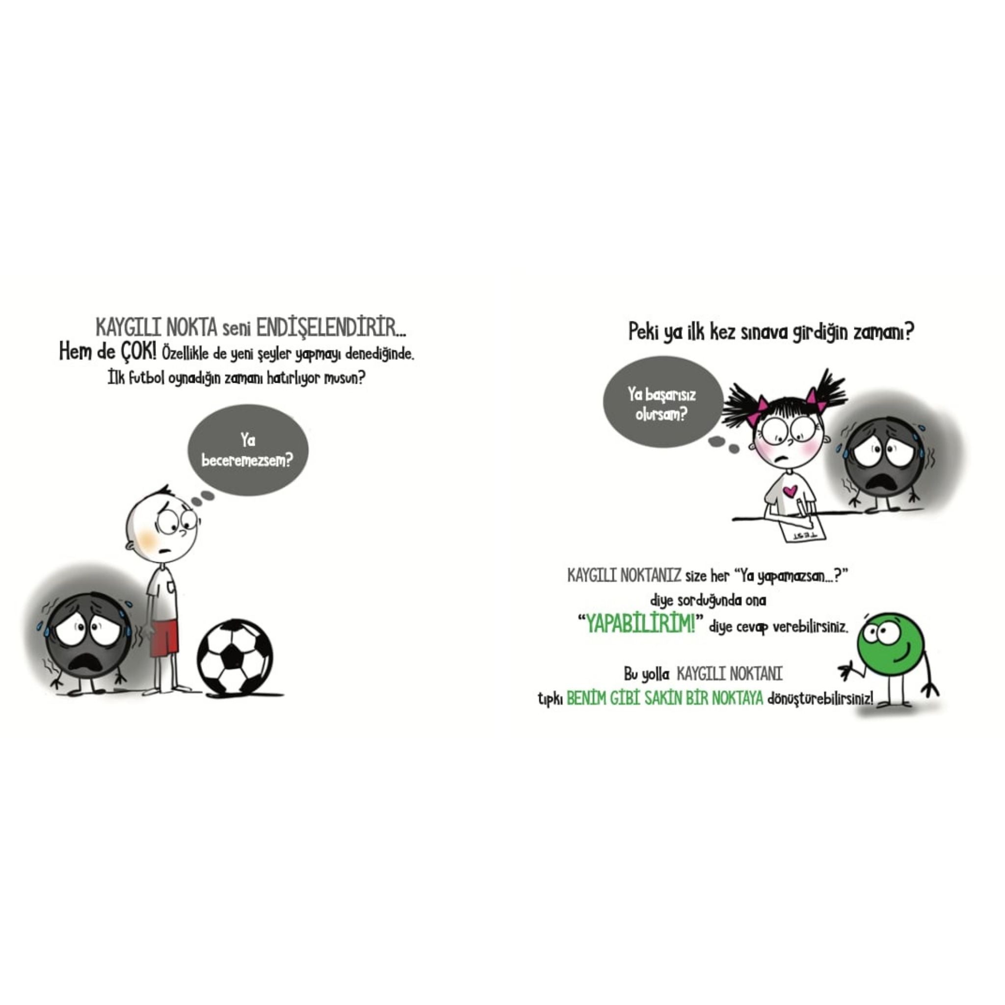 Bazen her şey yolundaymış gibi görünse de içimizde bir huzursuzluk belirir. İşte tam o anda Küçük Kaygılı Nokta ortaya çıkar. Diane Alber’in sevilen “Daha İyi Bir SEN İçin!” serisinin bu anlamlı kitabı, çocuklara kaygı, korku, gerginlik ve endişe gibi zorlayıcı duyguları tanımayı ve sağlıklı yollarla başa çıkmayı öğretiyor. “Küçük Kaygılı Nokta”, minik okurlara yalnız olmadıklarını ve duygularının geçici olduğunu anlatırken, kaygıyla başa çıkmak için nefes egzersizleri, dikkat dağıtma teknikleri ve olumlu düşünme yöntemleri gibi pratik öneriler sunuyor. Sade anlatımı, renkli görselleri ve gerçek hayattan alınan örnekleriyle çocukların iç dünyalarına güvenle yönelmelerini sağlıyor.
