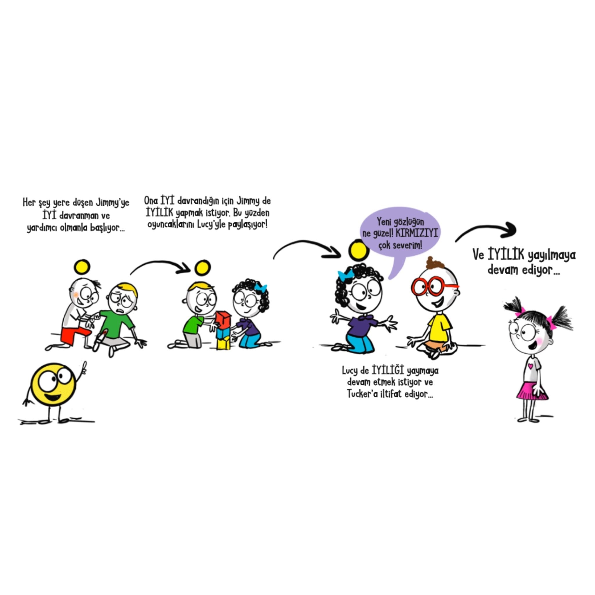 Mutluluğu tanımak, hissetmek ve başkalarıyla paylaşmak… İşte “Küçük Mutlu Nokta” tam da bunun için var! Diane Alber’in eğlenceli ve öğretici “Daha İyi Bir SEN İçin!” serisindeki bu özel kitap, çocuklara pozitif duyguların gücünü anlatıyor. Küçük Mutlu Nokta, minik okurlara mutluluğun sadece büyük olaylarda değil, küçük anlarda da saklı olduğunu gösteriyor. Bu hikâye, çocukların yaşamın güzel yönlerine odaklanmasına, minnettarlık duygusu geliştirmesine ve olumlu düşünme becerisi kazanmasına yardımcı olur. Kitap, çocuklara yalnızca mutlu hissetmenin değil, başkalarının da mutluluğuna katkıda bulunmanın değerini öğretir. Renkli çizimler ve basit anlatımıyla çocuklara hem keyifli bir okuma sunar hem de güçlü bir mesaj verir: Mutluluk paylaşınca çoğalır!
