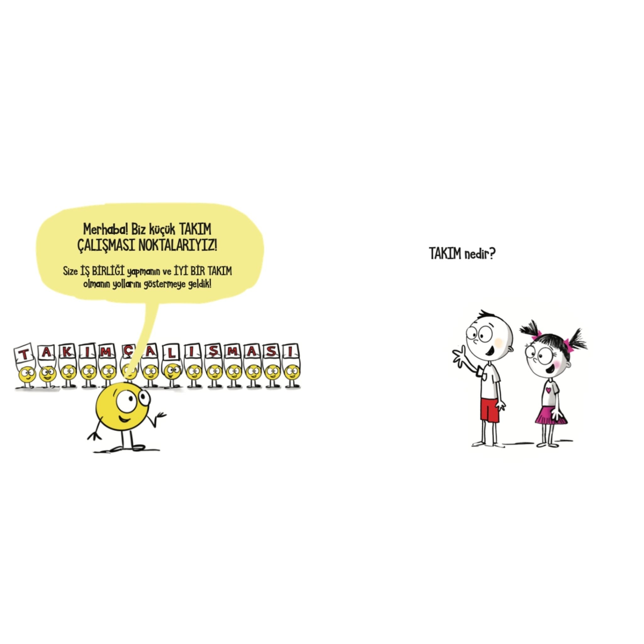 “Merhaba! Biz Küçük Takım Çalışması Noktalarıyız!” İş birliği, anlayış ve birlikte başarmanın gücünü öğrenmeye hazır mısınız? Çocuklara takım olmanın, yardımlaşmanın ve ortak hedeflere ulaşmanın ne kadar değerli olduğunu anlatan bu sımsıcak hikâyeye katılın! Beta Kids’in “Daha İyi Bir SEN İçin!” serisinin bu ilham verici kitabı, çocuklara sosyal beceriler kazandırmayı ve etkili bir ekip üyesi olmanın yollarını eğlenceli bir dille öğretmeyi amaçlıyor. İş Birliğiyle Gelen Güç! Küçük Takım Çalışması Noktaları, çocuklara sadece bireysel değil, birlikte başarmanın da mutluluğunu yaşatıyor. Hikâye boyunca, yardımlaşmanın, dinlemenin, saygı göstermenin ve katkıda bulunmanın önemi anlaşılır örneklerle aktarılıyor.