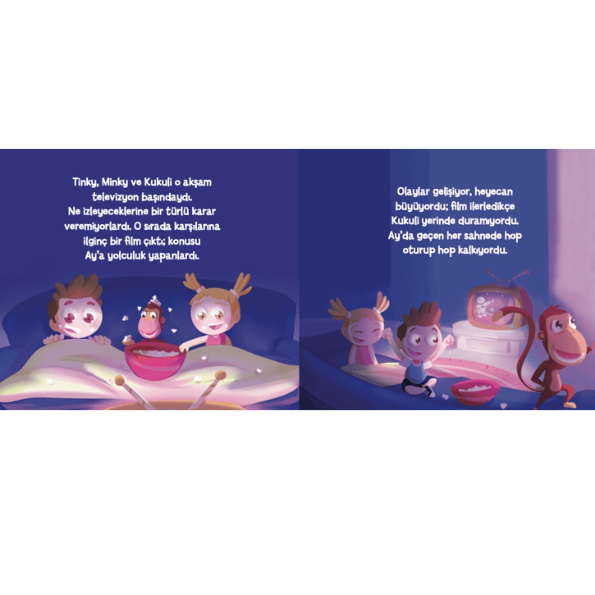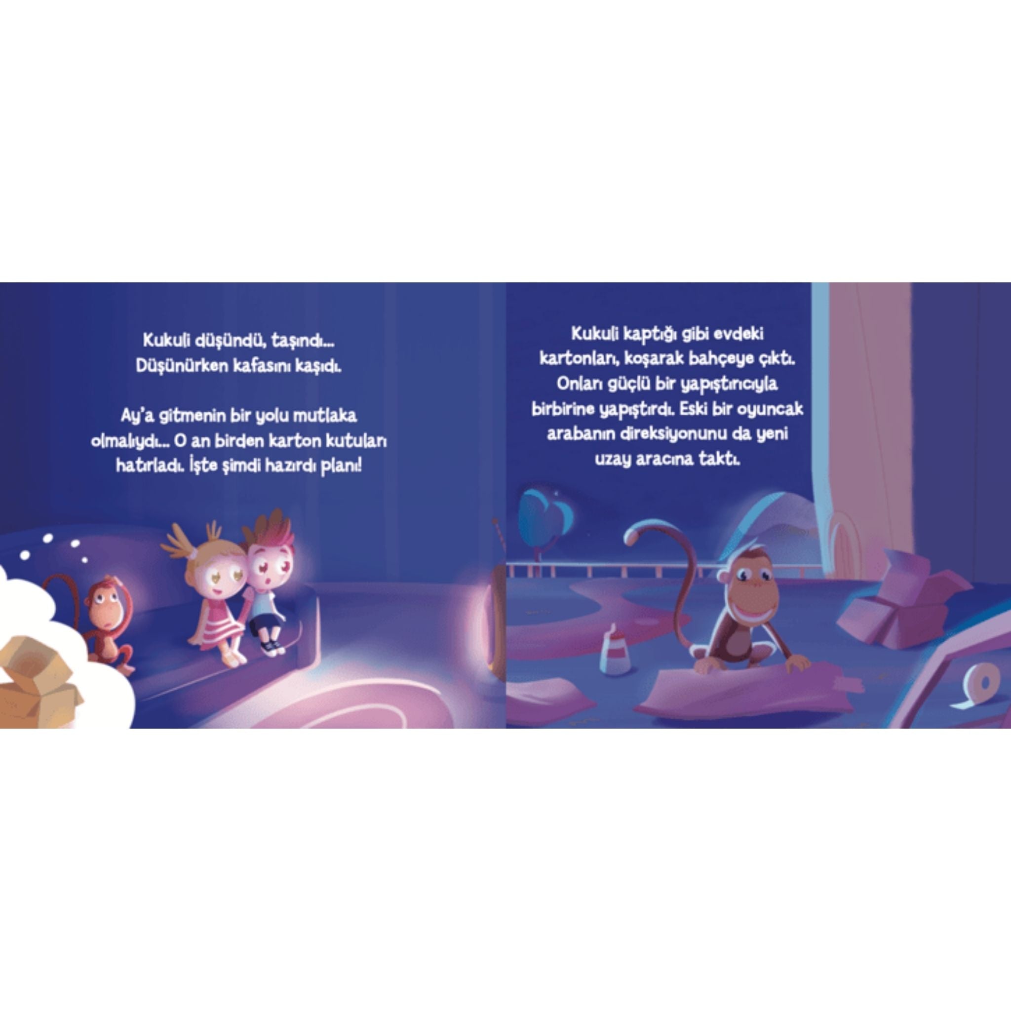 Kukuli, Tinky ve Minky o akşam televizyon başındaydı. Ne izleyeceklerine bir türlü karar veremiyorlardı. Derken, karşılarına ilginç bir film çıktı; konusu Ay’a yolculuk yapanlardı. Kukuli içinden, "Keşke onların yerinde olsaydım," diye düşündü. O an aklına evdeki karton kutular geldi ve işte, planı hazırdı! Kartonları güçlü bir yapıştırıcıyla birbirine yapıştırıp, eski bir oyuncak arabanın direksiyonunu yeni uzay aracına takarak Ay’a yolculuğunu gerçekleştirecek roketini yaptı. Kukuli şimdi çok heyecanlıydı; Ay’la buluşacağı günü bekliyordu! Kukuli Bekle Beni Ay, küçük okurlara hayal gücünü kullanarak yeni dünyalar keşfetmeyi öğreten, eğlenceli ve öğretici bir hikayedir. Kukuli’nin Ay’a yolculuk için yaptığı uzay aracı ve gerçekle hayal arasındaki bağlantıyı keşfedecek olan çocuklar, kitap boyunca yaratıcılık ve problem çözme becerilerini geliştirecek.
