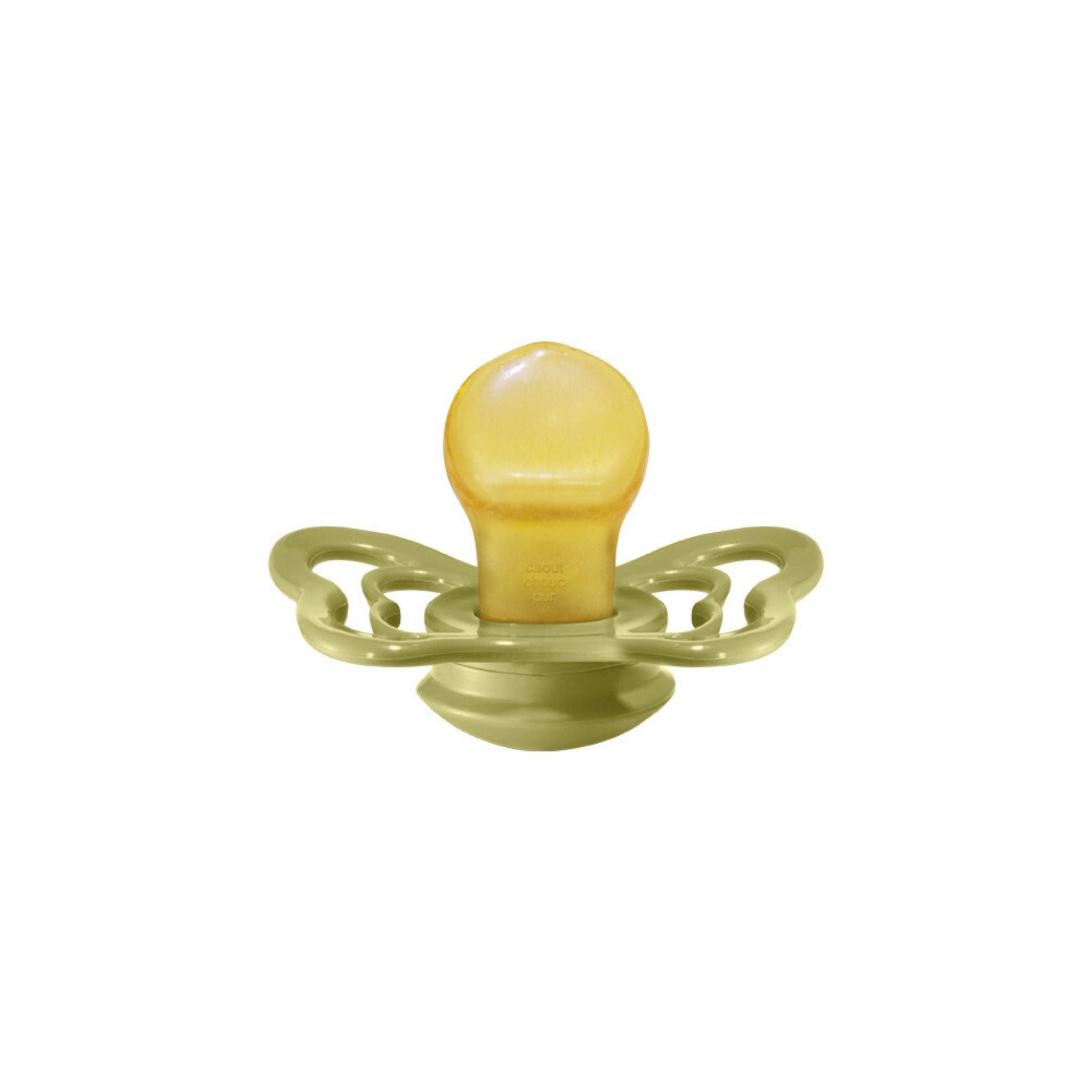 Bibs Couture Doğal Kauçuk Emzik No:2 Meadow, bebeğinizin emiş deneyimini en üst düzeye çıkaran, modern ve estetik bir tasarımla sunuluyor. Bibs Couture ailesinin en yeni üyesi olan bu emzik, anatomik olarak şekillendirilmiş yapısıyla emzirme sırasında annenin göğüs ucunu taklit eder; böylece bebeğinizin ağzına mükemmel uyum sağlar. Hem yumuşak doğal kauçuk lateks hem de silikon seçenekleriyle sunulan model, çene, diş etleri ve dişler üzerinde minimum baskı oluştururken, hafif kalkan tasarımı sayesinde burnun serbest kalmasını ve optimum hava akışını garanti eder. Sevimli kelebek detaylı kalkanı, yuvarlak ve yumuşak kenarlarıyla bebeğinizin yüzüne rahatça oturur, böylece konforlu ve güvenli bir kullanım sunar.