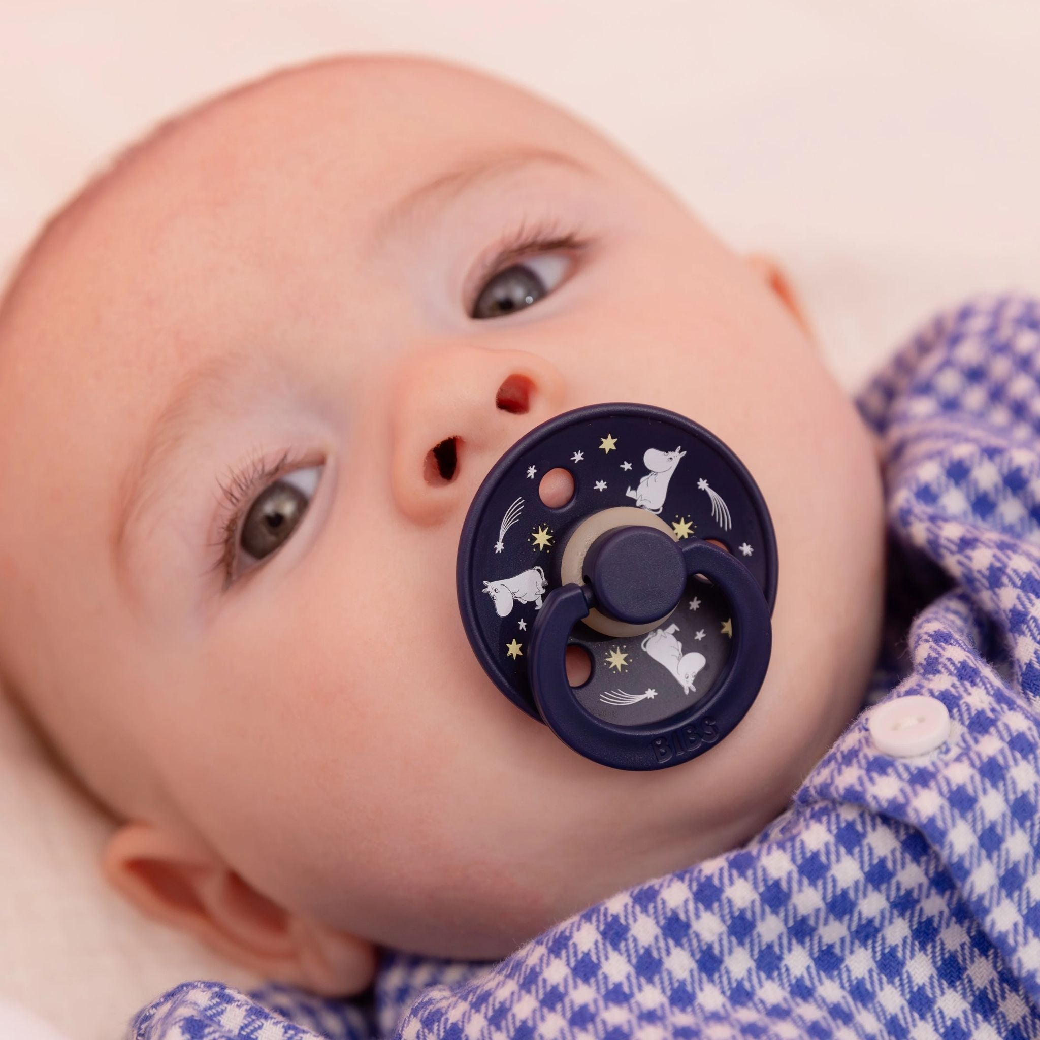 Bibs Moomin Colour Good Night Friends Emzik Deep Space No 1, gece kullanımı için özel olarak tasarlanmış, zarif ve fonksiyonel bir bebek emziğidir. Derin lacivert tonundaki “Deep Space” rengi, gece gökyüzünden ilham alınarak tasarlanmış olup hem şık hem de huzurlu bir görünüm sunar. Moomin karakterlerinden esinlenen bu özel seri, bebeklerin gece boyunca rahat ve güvenli bir şekilde uyumasını destekler.