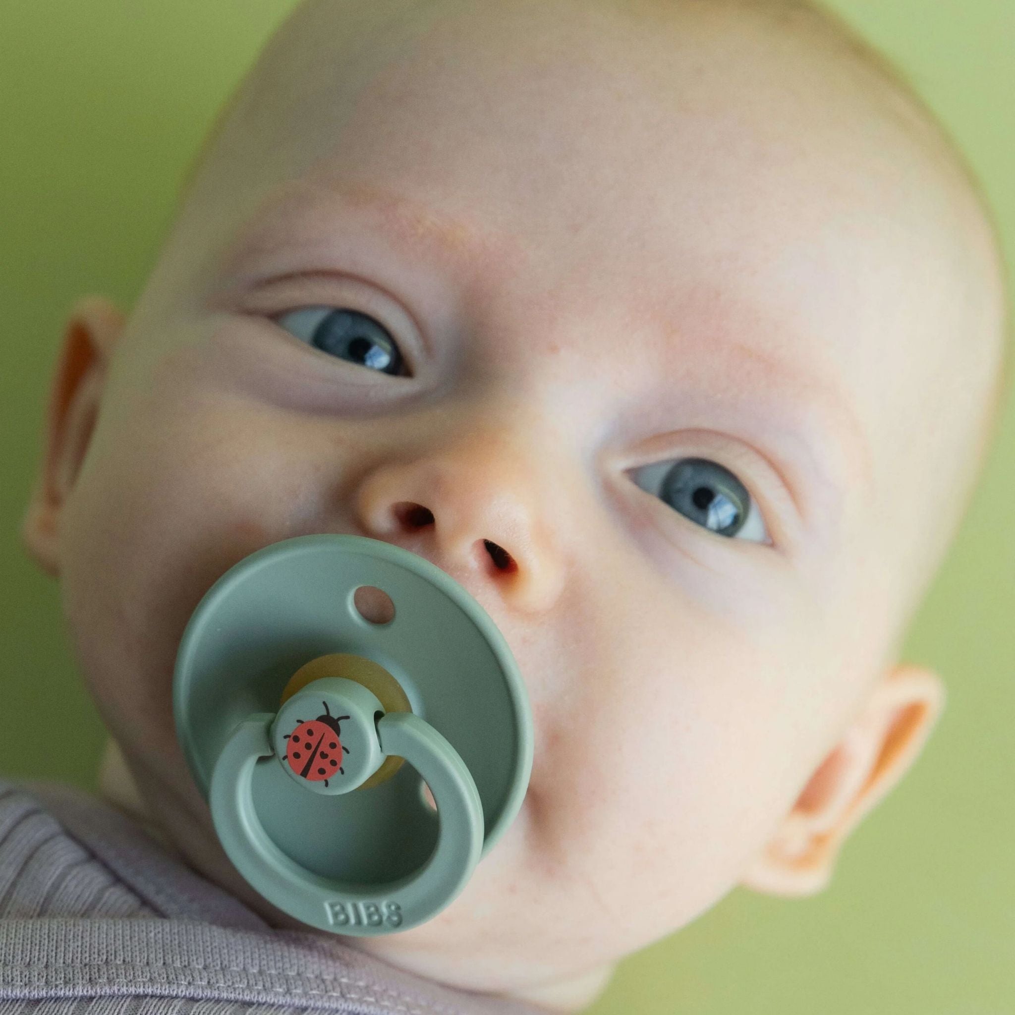 Bibs Studio Colour Ladybug Emzik Sage No 3, 18 ay ve üzeri bebeklerin ağız yapısına göre tasarlanmış, daha büyük boyutlu ve konforlu bir emziktir. Doğadan esinlenen soft yeşil Sage rengi, sade ve zarif görünümüyle hem kız hem erkek bebeklere uyum sağlar. Uğur böceği detaylı Studio Colour tasarımı ise bu modeli sıradan emziklerden ayırır. %100 doğal lateks kauçuk emzik ucu, anne memesine benzer yapısıyla doğal emme hareketini destekler ve alışılmış Bibs konforunu sunar.