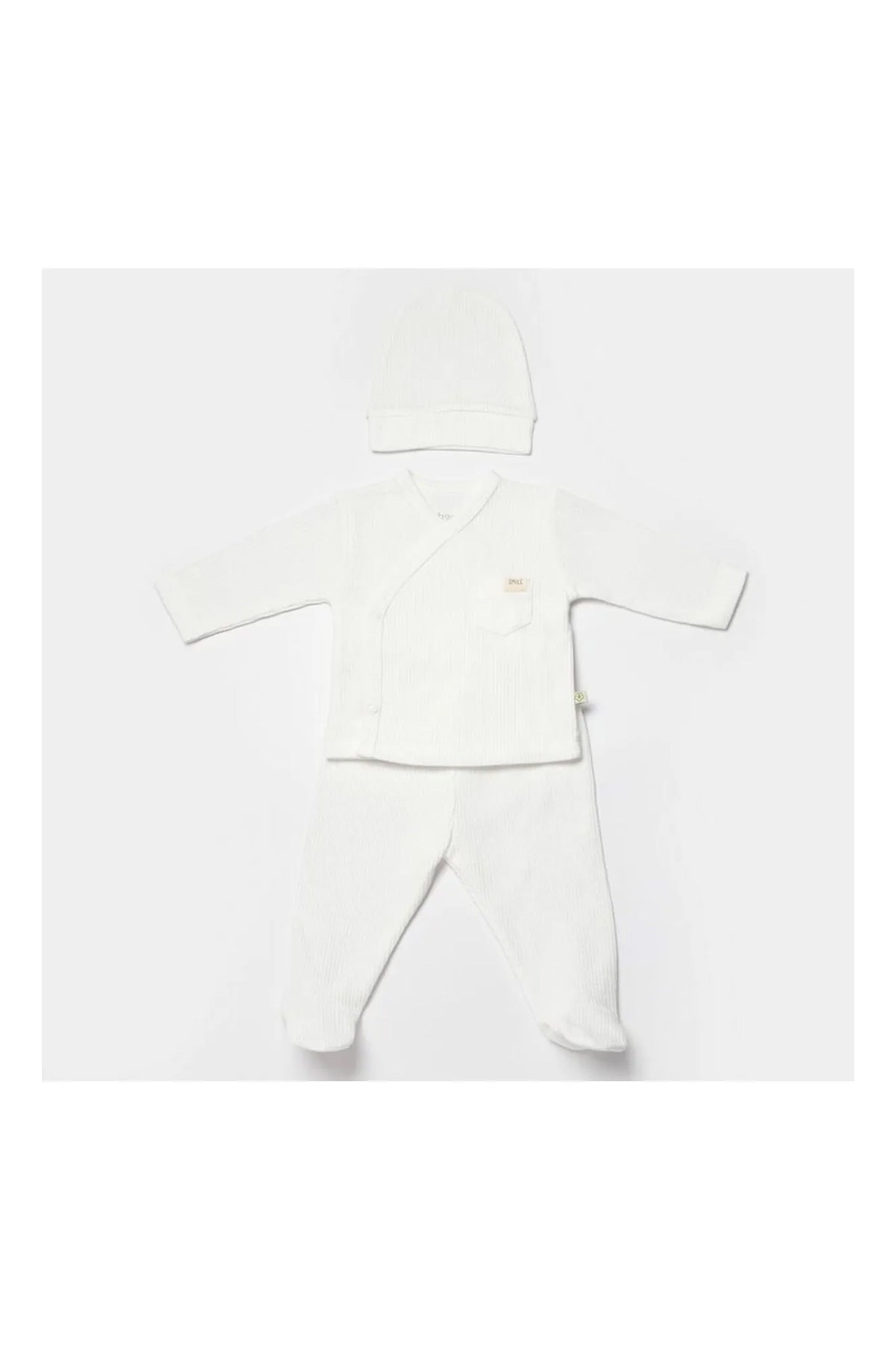 Bu setin içerisinde bir tulum, bir üst ve bir alt parça yer alır. Düğmeli tasarımlar sayesinde kolayca giydirilip çıkarılabilir. Alt parçası elastik bel yapısıyla bebeğinizin hareket kabiliyetini destekler, konforu en üst seviyeye taşır.