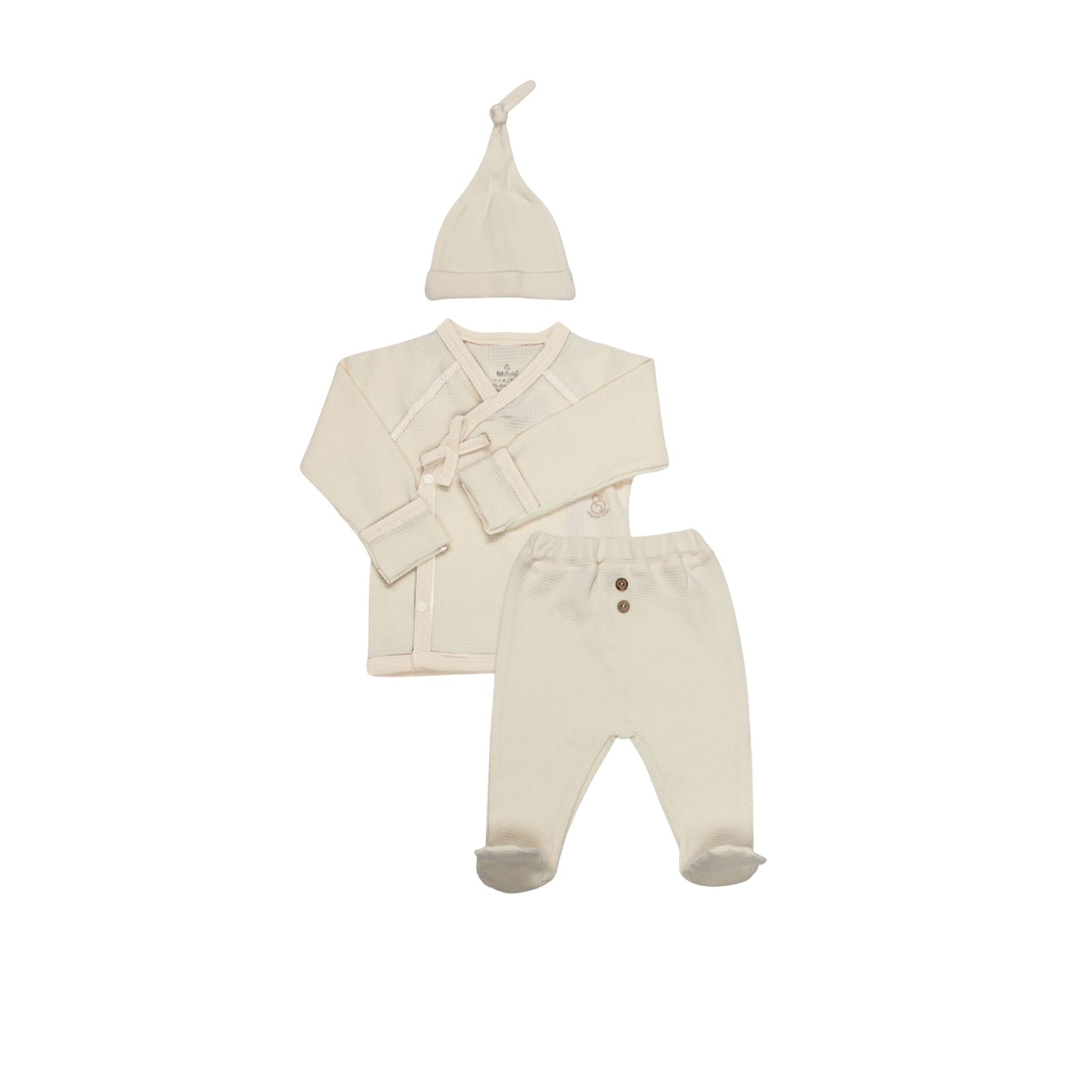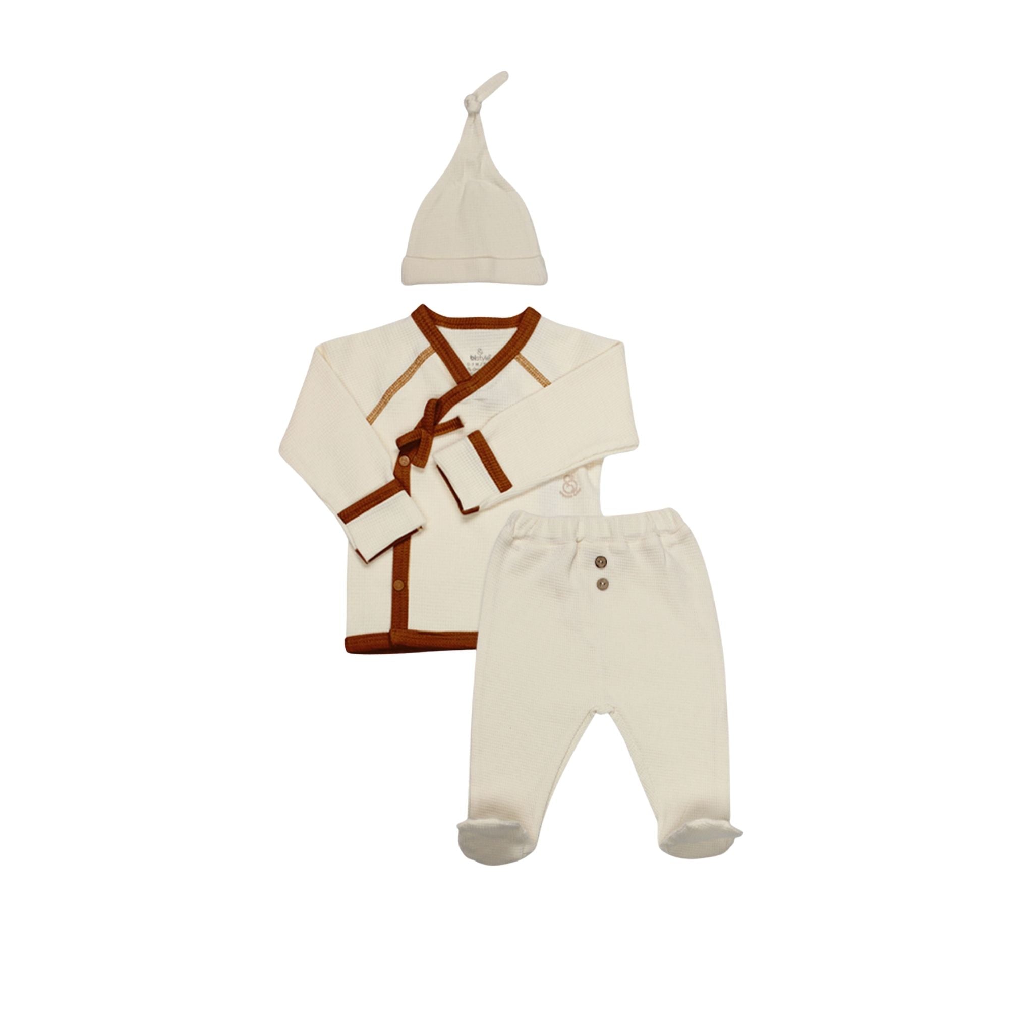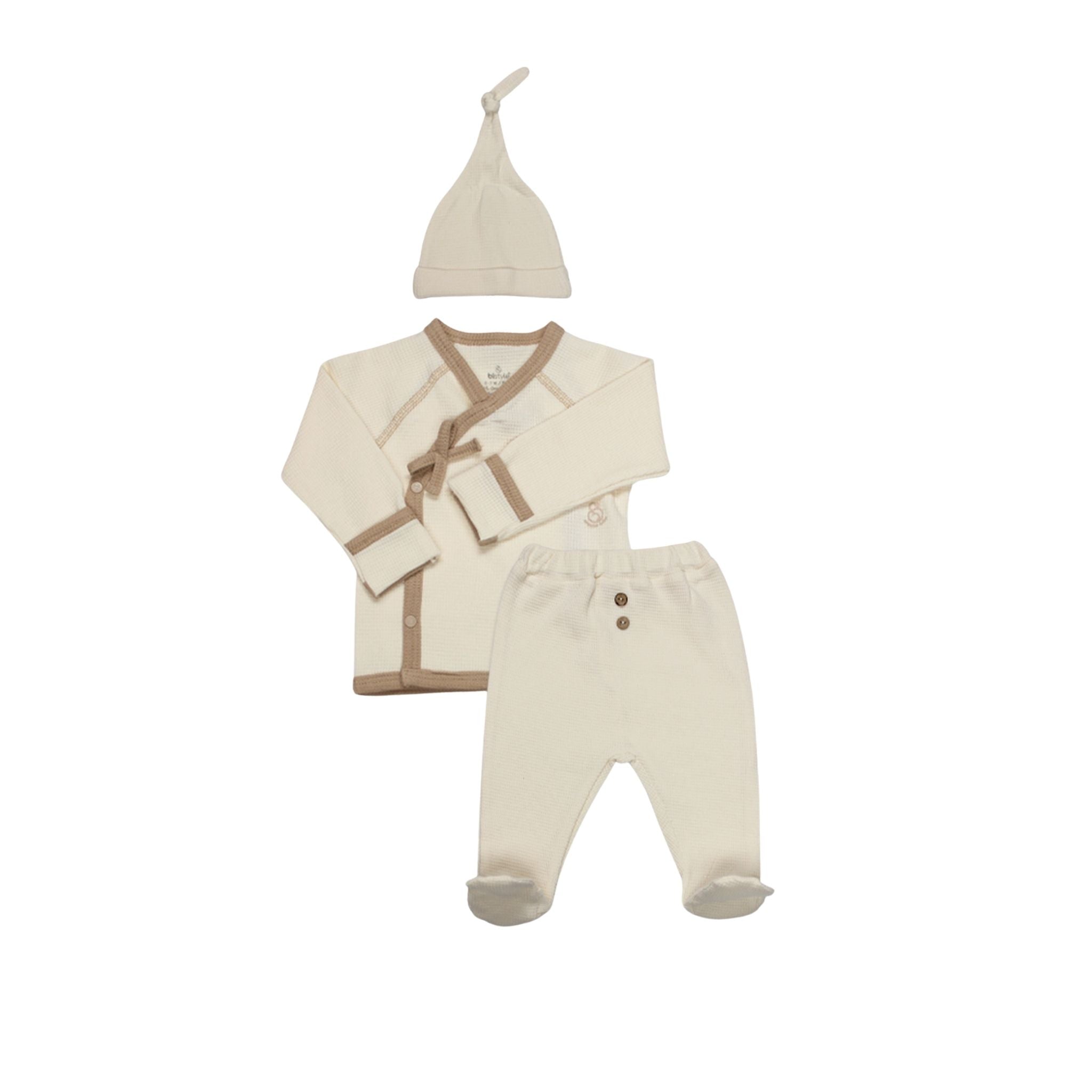 Bistyle Organik Zıbın Takımı, %100 pamuk ipliği ile üretilmiş olup, bebeğinizin hassas cildine uyum sağlayan yumuşak ve nefes alabilen bir yapıya sahiptir. Waffle dokulu doğal kumaşı, konforlu ve esnek yapısıyla hareket özgürlüğü sunar. Şık ve minimalist tasarımıyla, bebeğinizin günlük kullanımına hem rahatlık hem de zarif bir stil katar.