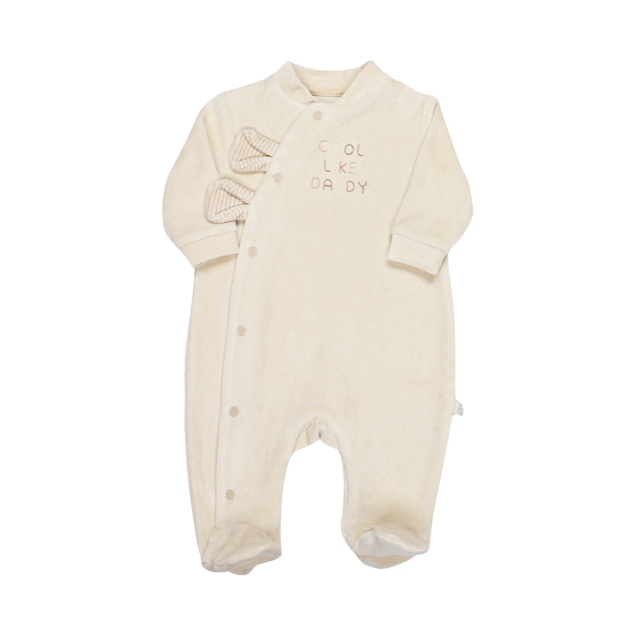 Minikler için hem konfor hem şıklığı bir araya getiren Bistyle I Love Daddy Kadife Tulum, soğuk havalarda sıcak tutan yumuşacık dokusuyla öne çıkıyor. Uzun kollu ve bisiklet yaka tasarımı, bebeğinizin rahat hareket etmesini sağlarken, patikli paça detayı minik ayakları güvenle sarar. Çıtçıtlı kapanış sistemi, tulumu hızlı ve pratik bir şekilde giydirmenize olanak tanır. %80 pamuk ve %20 polyester karışımı kadife kumaş, hassas bebek cildine uyumlu ve nazik dokunuş sunar. Günlük kullanım için uygun olan normal kalıp tasarımı, miniklerin konforunu kısıtlamadan rahat hareket etmelerini sağlar.