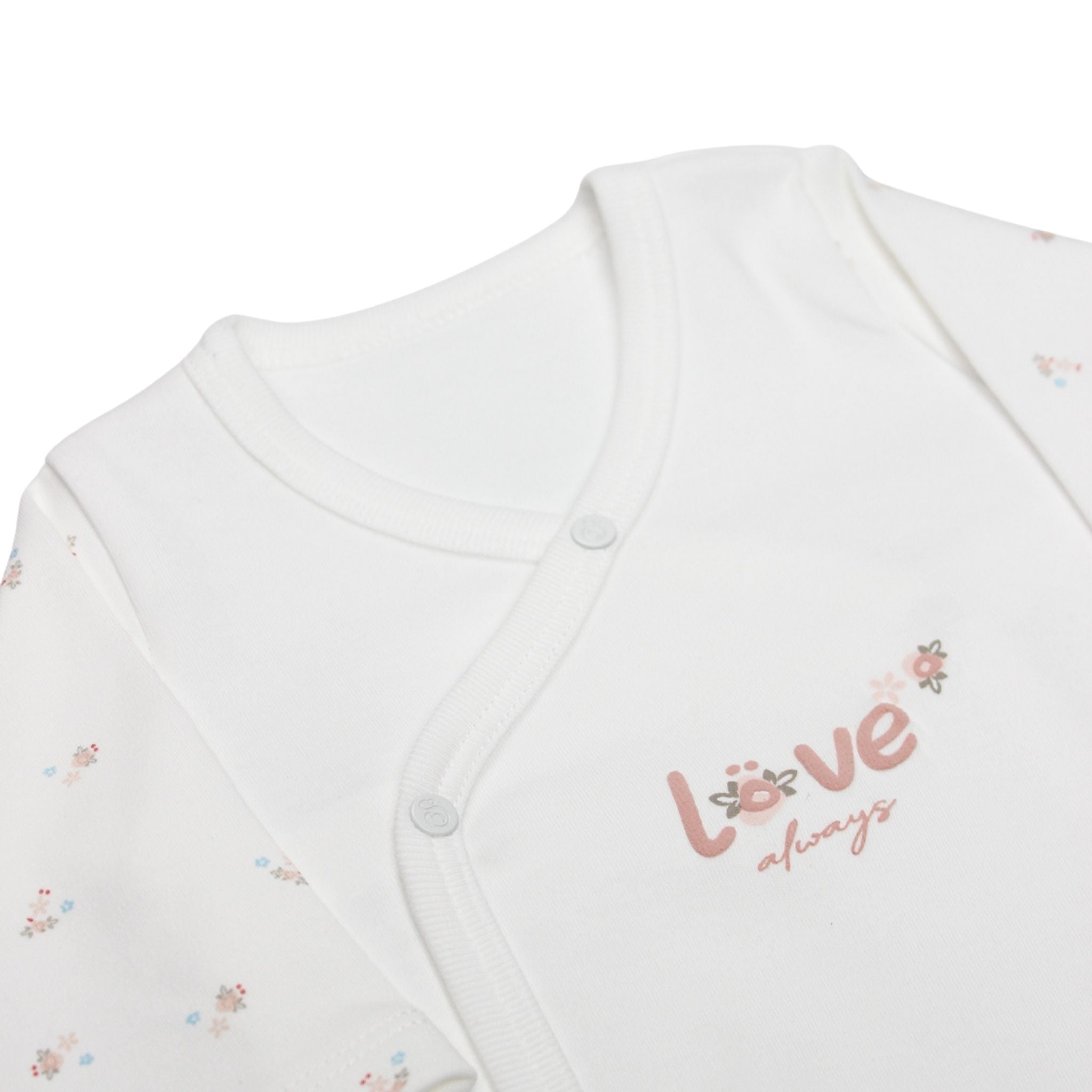 Bebeklerin hassas cildine dost, %100 pamuklu kumaştan üretilen Bistyle Uzun Kollu Body "Grow in Love", zarif tasarımı ve konforlu yapısıyla öne çıkıyor. İnce çiçek desenleriyle süslenen kolları ve "Love Always" yazılı baskısıyla sadeliği estetikle buluşturan bu body, bebeğinizin hem rahatlığını hem de şıklığını ön planda tutar. Yandan çıtçıtlı yapısı sayesinde kolay giydirilir ve bez değişiminde kullanım kolaylığı sağlar. 30 derecede yıkanabilir, uzun süreli kullanımda formunu korur. GOTS sertifikalı organik üretim süreciyle doğaya ve bebeğinizin sağlığına saygılı bir tercihtir.