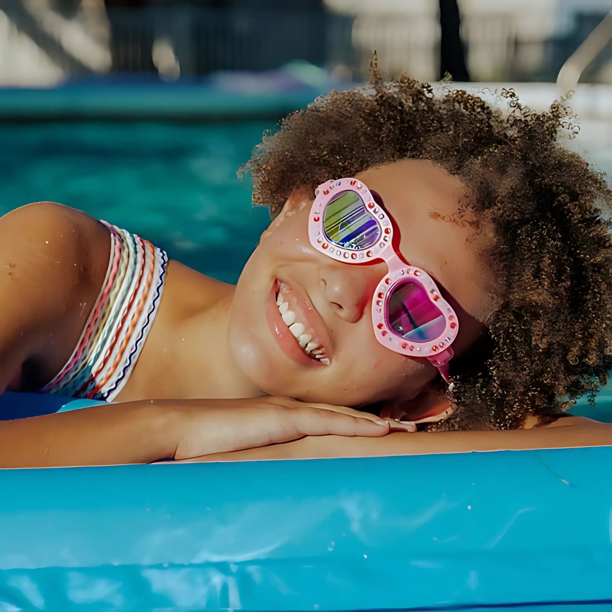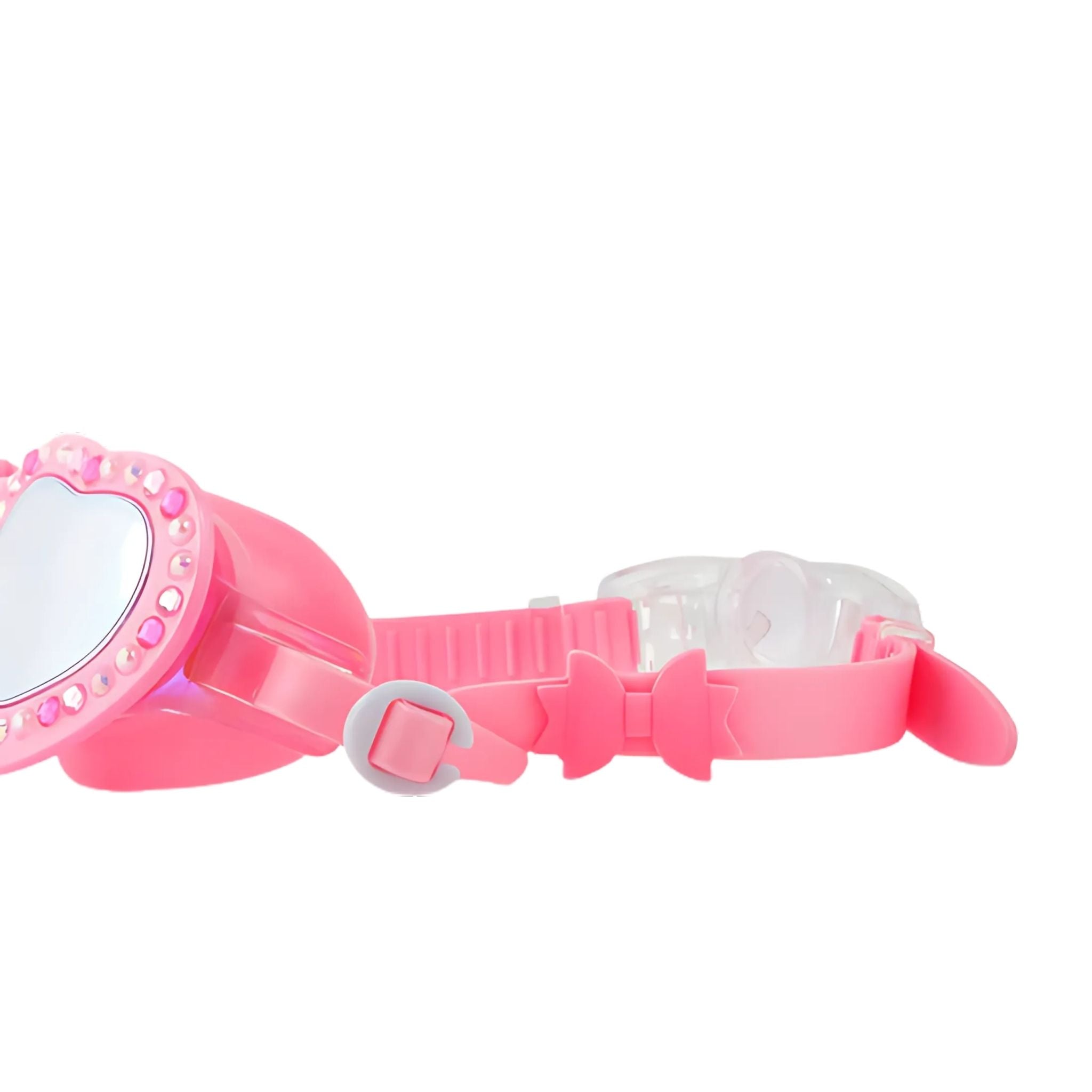 Pembe Dantel Güzel Fiyonklar Yüzücü Gözlüğü, zarif detaylara önem veren stil sahibi minik yüzücüler için özel olarak tasarlandı. Kalp şeklindeki ışıltılı çerçevesi, yapay elmas süslemeleri ve inci boncuk detaylarıyla adeta bir prenses dokunuşu sunuyor. Arka kayışta yer alan sevimli pembe fiyonk ise görünümü tamamlayan tatlı bir ayrıntı! 3 yaş ve üzeri kız çocuklarına uygun bu yüzme gözlüğü, sadece şıklığıyla değil; teknik özellikleriyle de dikkat çeker. UV korumalı ve buğu önleyici lensleri, güneşli günlerde maksimum görüş konforu sağlarken; %100 silikon, lateks içermeyen yapısı ciltle dosttur. Arka klipsi sayesinde kolayca takılıp çıkarılır ve yüzme sırasında güvenli bir şekilde sabit kalır.