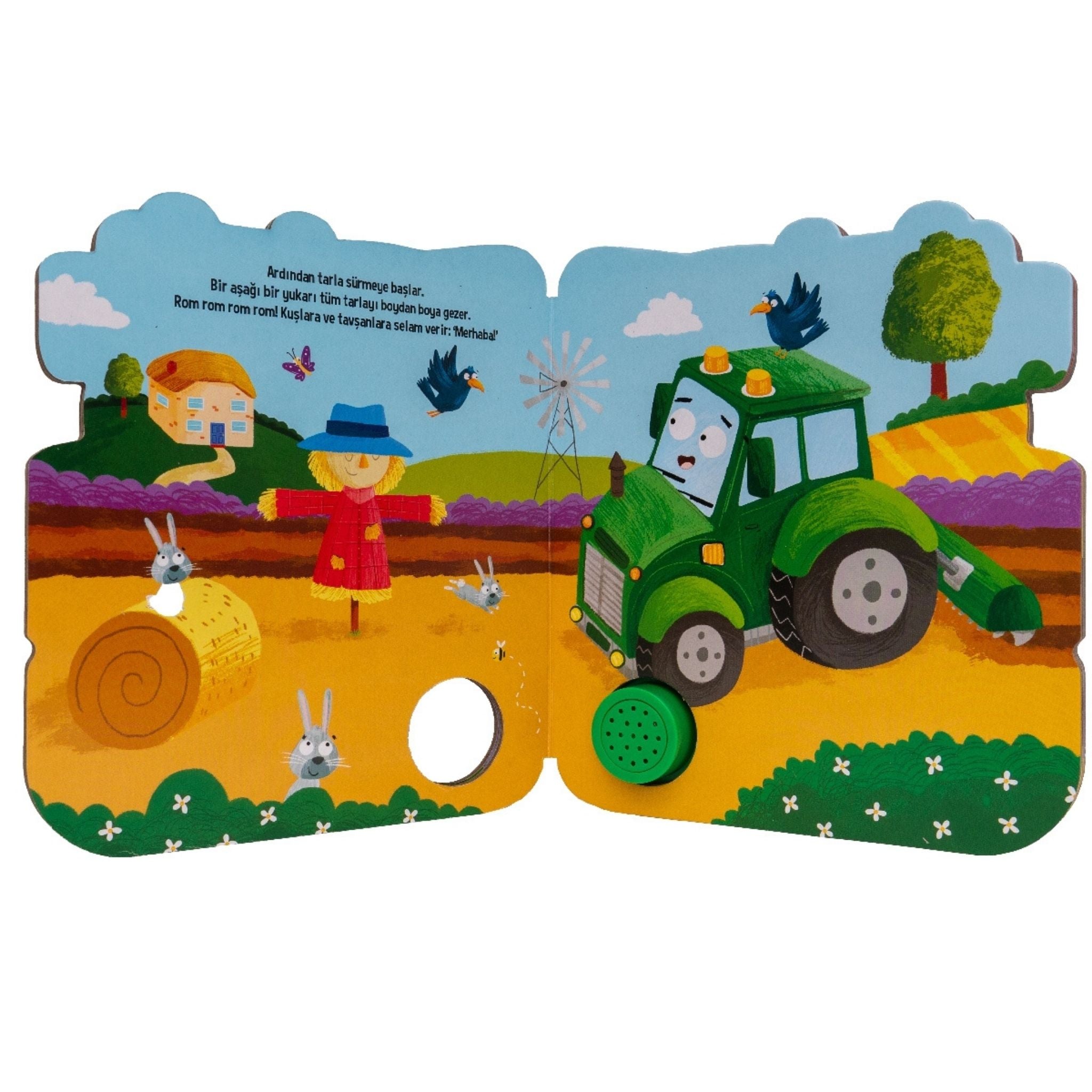 Sesli Kitaplar Çalışkan Traktör, çocukların duydukları sesleri tanıma ve nesnelerle ilişkilendirme becerilerini geliştiren interaktif bir sesli kitap deneyimi sunar. Mukavva sıvamalı kalın sayfalar ve özel şekilli kesimi sayesinde miniklerin ilgisini çeken bu eğitici çocuk kitabı, aynı zamanda dikkatlerini odaklamalarına ve ses taklitlerini öğrenmelerine yardımcı olur. Her sayfada yer alan pilli ses butonu sayesinde çocuklar, traktörün sesini duyarak hem eğlenir hem de keşfederek öğrenir.